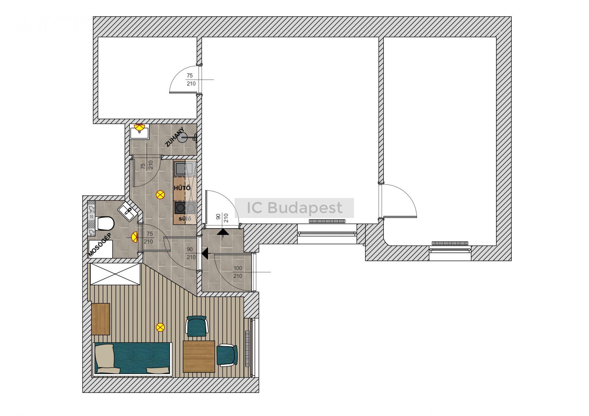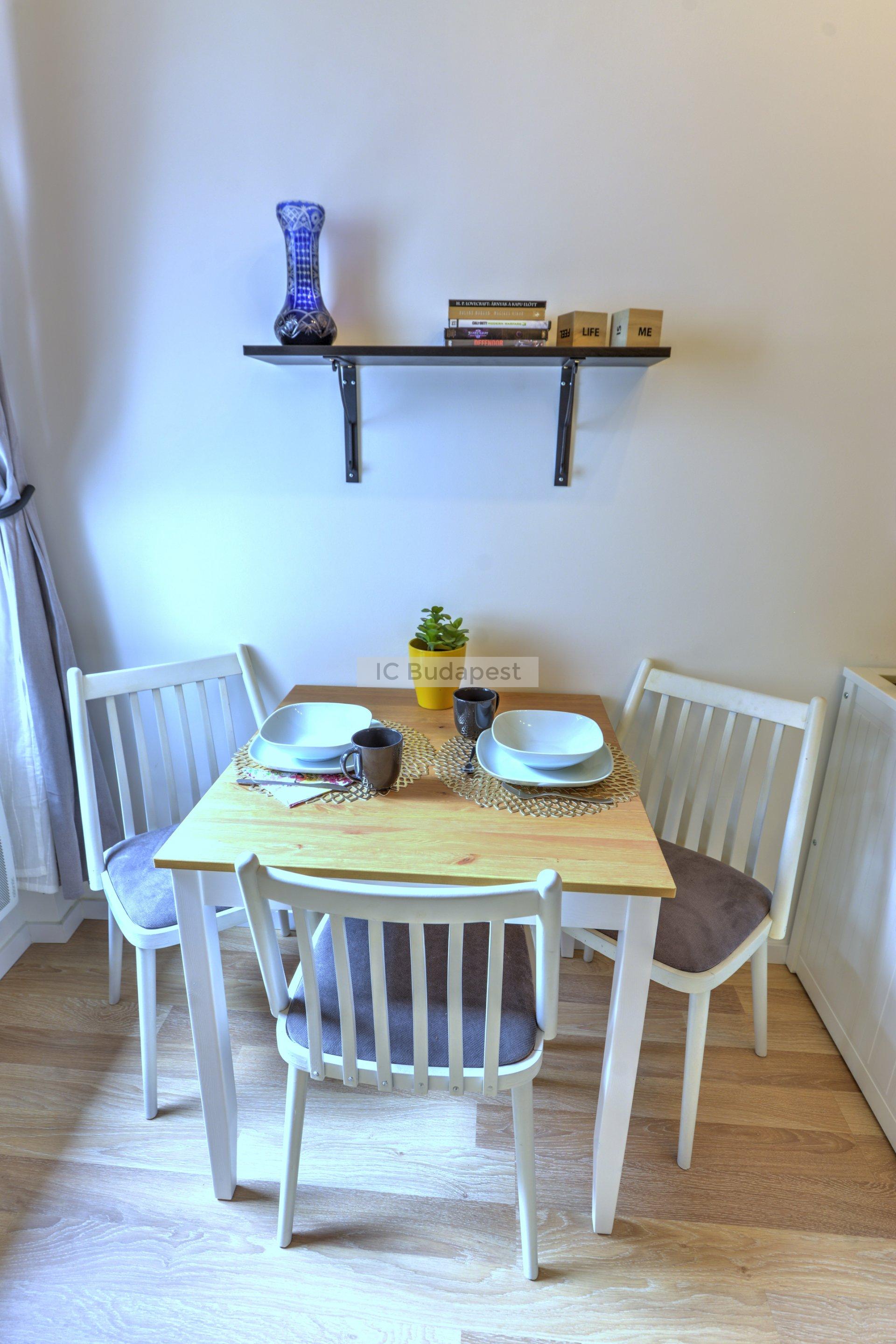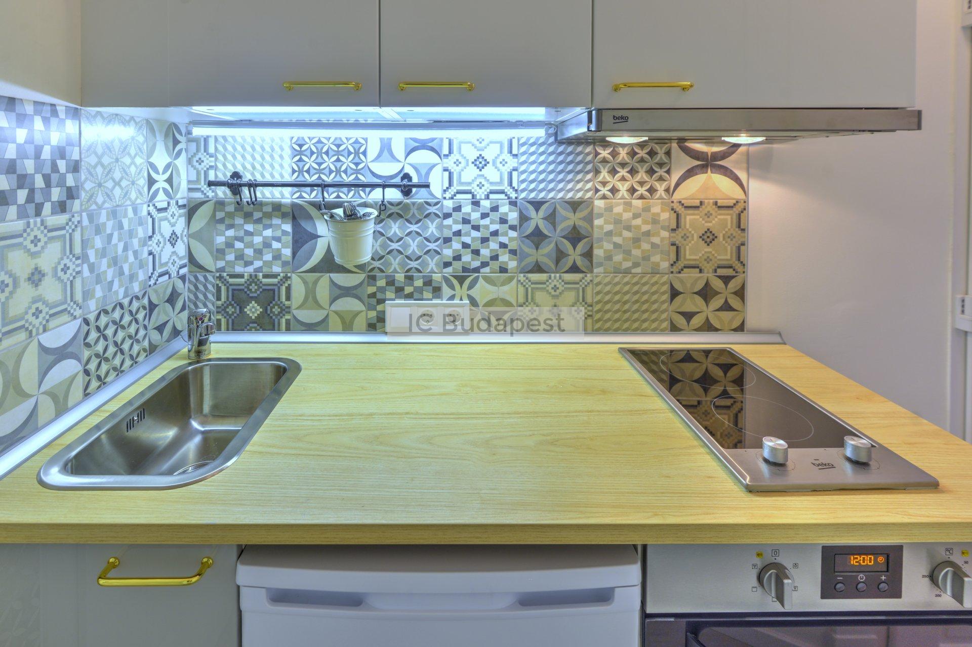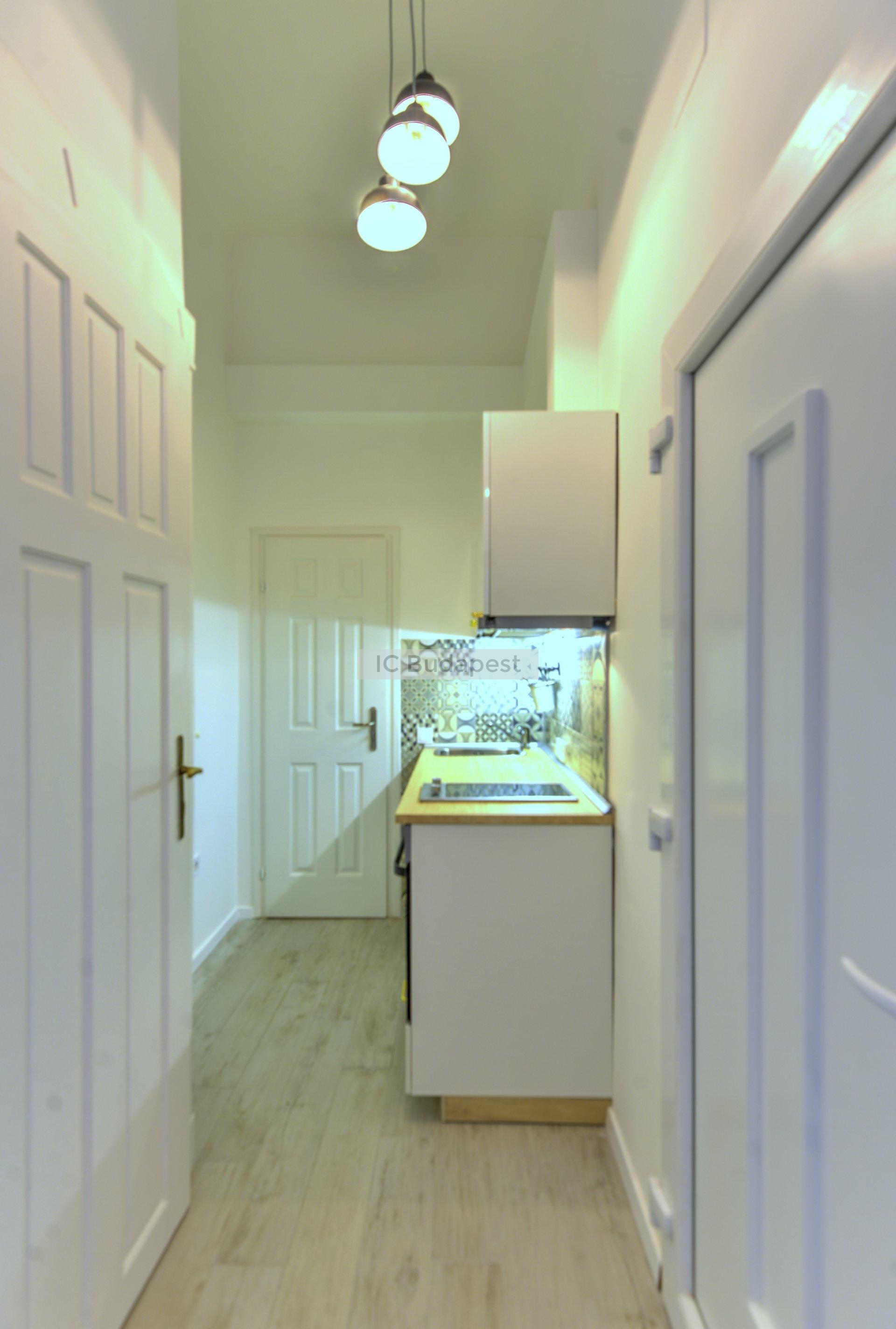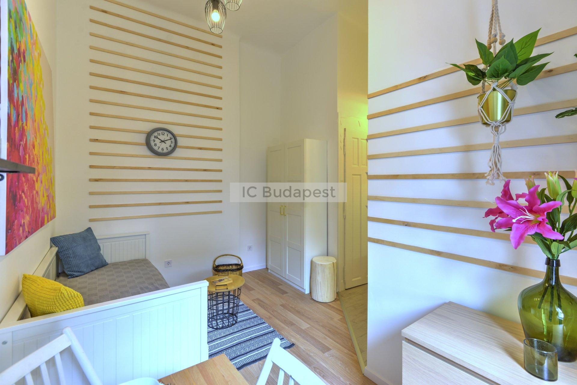 Budapest VI. kerületében, a Vörösmarty utcában, rendezett, jó állapotú társasház 3. emeleti, 22 m2-es garzonlakása kiadó. A társasház jó lakóközösségű, csendes. A lakás egy lakószobából, optikailag szeparált konyhából, tusolós fürdőszobából és szeparált WC helyiségekből áll. Nyílászárói újak, műanyagok, az ablakon redőnnyel. A konyha felszerelt, gépesített. A pici fürdőszoba tusolós kialakítású. A WC szeparált, itt kapott helyet a mosógép is. A lakás összes bútorzata új, igényes, fiatalos, még senki által nem lakott. Praktikus kialakításának köszönhetően kis alapterülete ellenére igazán élhető otthona lehet egy egyedülállónak vagy akár egy párnak is. A bérleti díj 350EURO/hó.