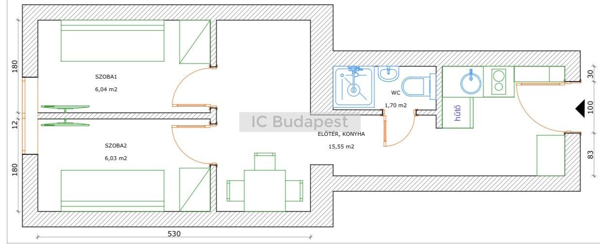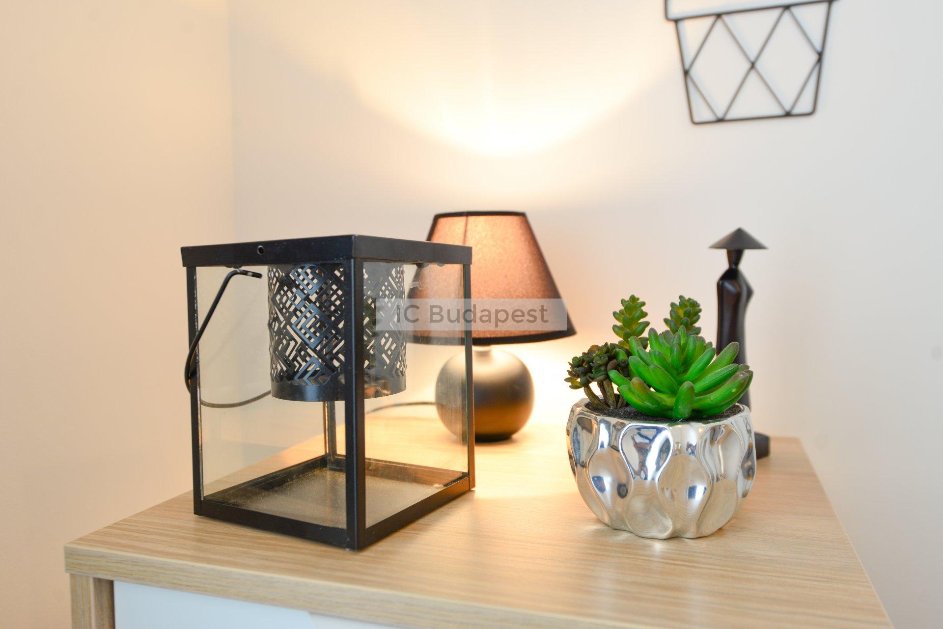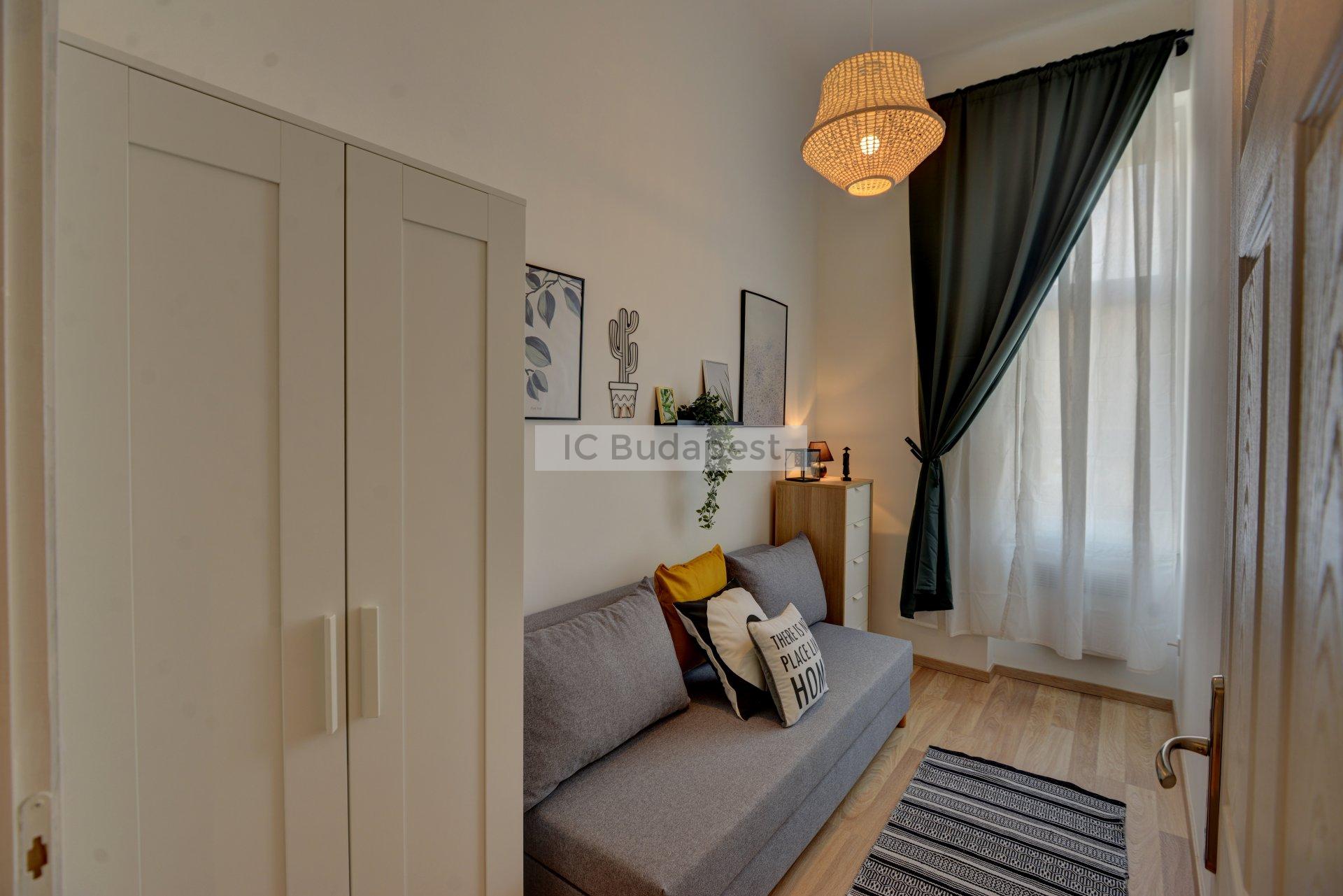 A bútorok igényesek, újak, mindkét szobában tárolási lehetőség is biztosított. A lakás kiválóan alkalmas 2 diák kényelmes összeköltözésére remek elhelyezkedése, kialakítása, kedvező rezsiköltsége miatt.