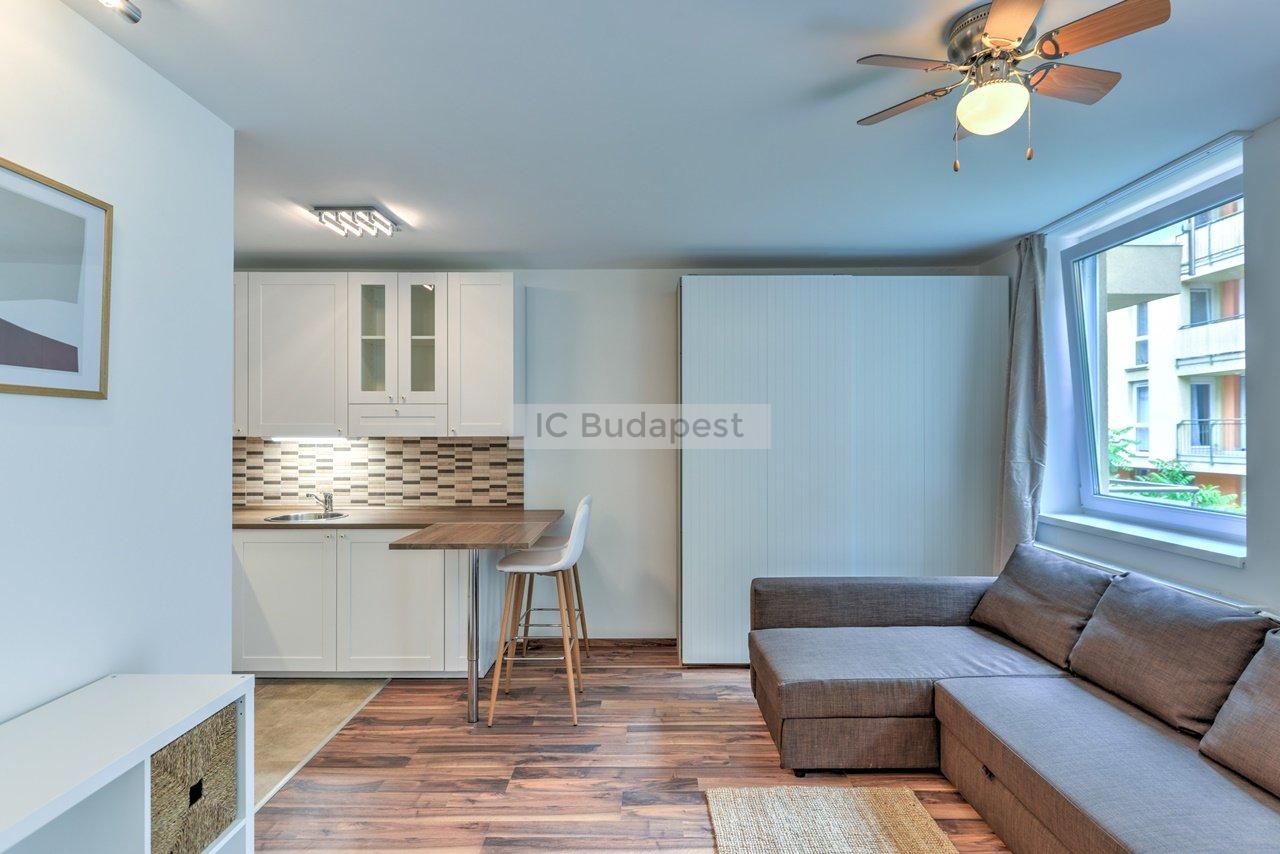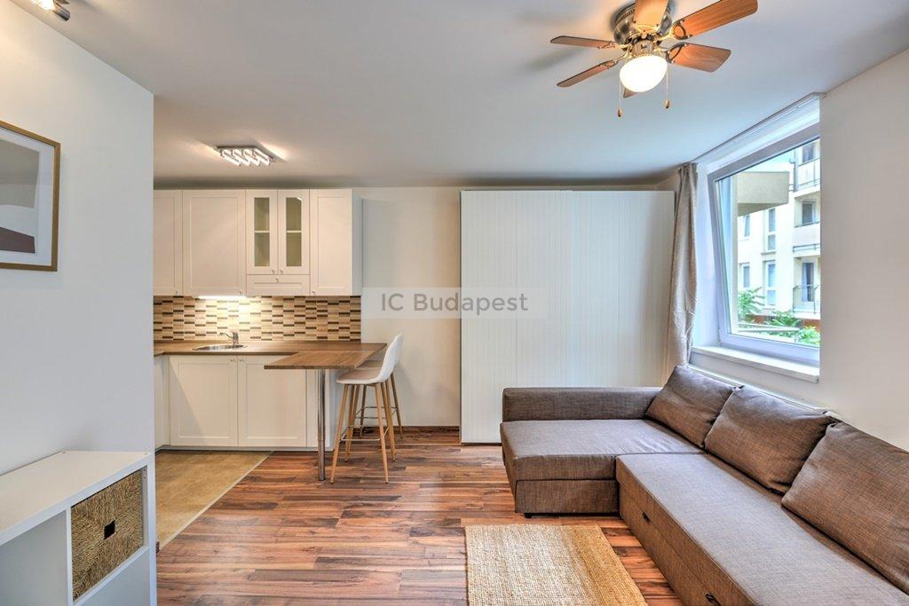 Kiadó a IX. kerületben a Márton utcában egy új építésű,világos studió lakás. Az erkélyre kilépve a belső udvarra nyerhetünk kilátást. A fürdőszobában kád található. Az apartman bútorozott,gépesített. A ház rendezett, lifttel rendelkezik. A közös költség 11.612Ft/hó. A környék könnyen megközelíthető tömegközlekedéssel is, a Nagyvárad téri metrómegálló pár perc séta. A lakás maximum 2 főre kiadó.