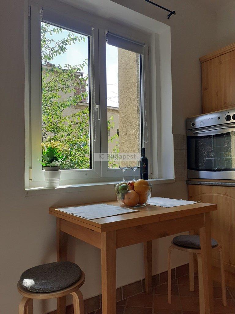 Budapest XI. kerületében, a Villányi út szomszédságában, csendes, mégis frekventált helyen, a Ménesi úton kiadó egy 55 m2-es, nappali plusz egy hálószobás, erkélyes, nyugati tájolású, napfényes lakás. A lakás egy kicsi, rendezett, csendes lakóközösségű, kis kerttel körbevett társasház első emeltén található és ablakai, illetve erkélyes is mindkét irányból a kertre néznek. A lakásba belépvén az előszobába érkezünk, amelyből a lakás összes helyisége nyílik. Rögtön jobbra nyílik az új konyhabútorokkal és beépített konyhagépekkel felszerelt konyha. A konyhából nyílik egy kis kamra is, amely kellően hűvös tárolást biztosít. A következő helyiség a gyönyörű, pasztell színekben felújított, kádas fürdőszoba, majd a nagy méretű hálószoba. A lakás központi helyisége a nappali, és a hozzá kapcsolódó erkély. A lakás előszobája beépített szekrénysorral biztosít rengeteg tároló helyet, illetve a hálószobában is található egy hatalmas, faltól-falig beépített gardrób szekrény valamint egy nagy méretű francia ágy is. A nappali szintén szekrényekkel, komódokkal, könyvespolcokkal és IKEA kanapéval bútorozott. A lakás fűtését és melegvíz ellátását gáz cirkó kazán biztosítja. Elsősorban pároknak ajánlom ezt a csodás, barátságos lakást, amely igazán otthonos lakókörnyezetet biztosít majd leendő lakójának.