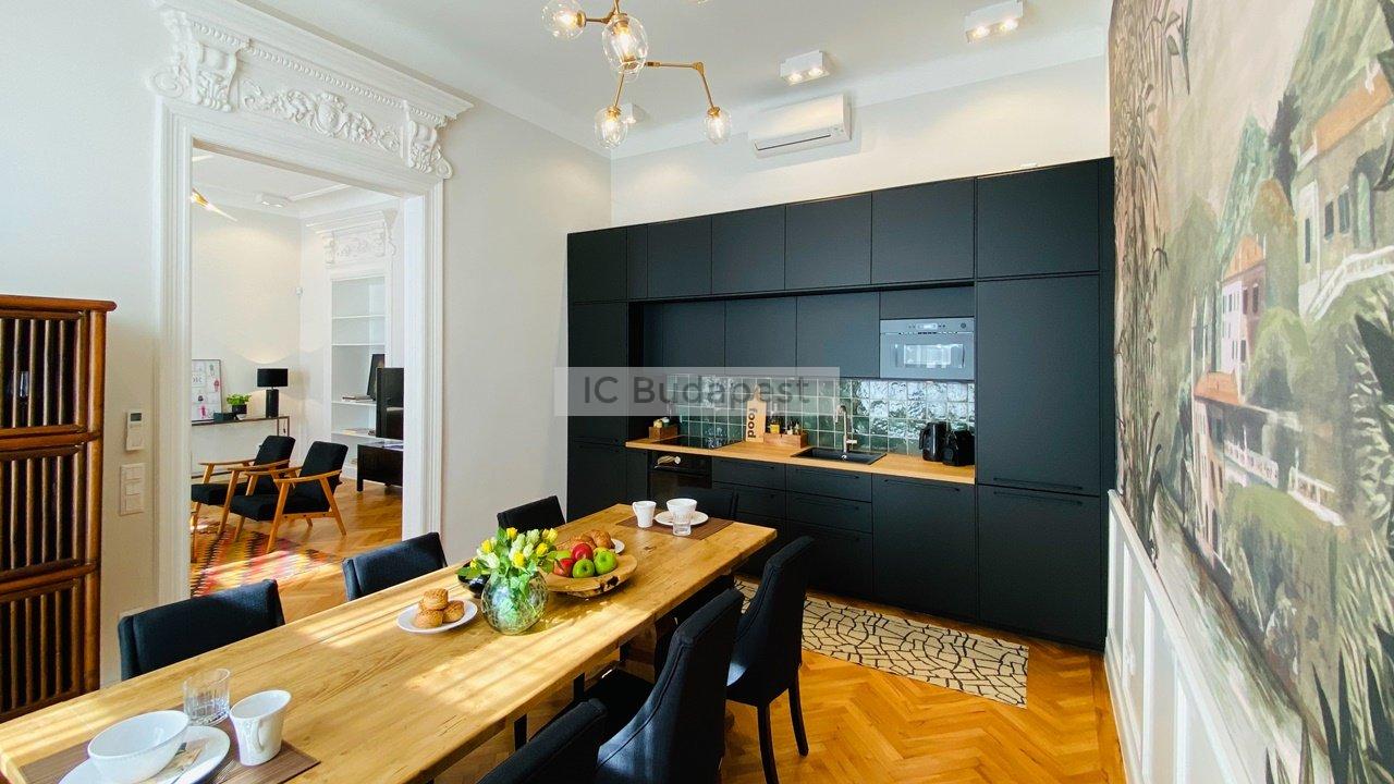 Budapest VI. Kerületében , a Diplomatanegyedben, a város zajától elszeparált csendes utcában , mégis pár percnyire a belvárostól, bérbeadásra  kínálunk egy nettó 111 m2  alapterülettel rendelkező, luxus módon kialakított, nappali plusz kettő hálószobás lakást kiadásra. Az ingatlanhoz kettő fürdőszoba,  gourmet konyha és egy erkély is tartozik. Berendezése és kialakítása egy neves belsőépítész munkája, kivitelezése aprólékos és maximalista. Az élettér modern, berendezésében megjelennek a kortárs és eklektikus elemek is. Az ingatlan elsősorban hosszútávú bérleti szerződéssel kiadó.