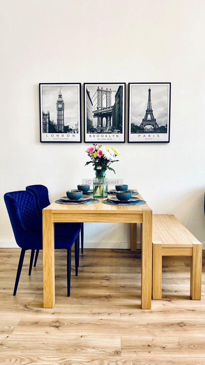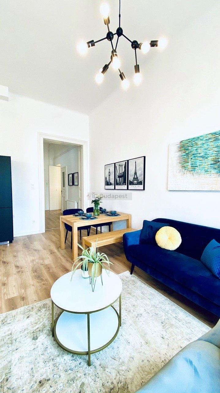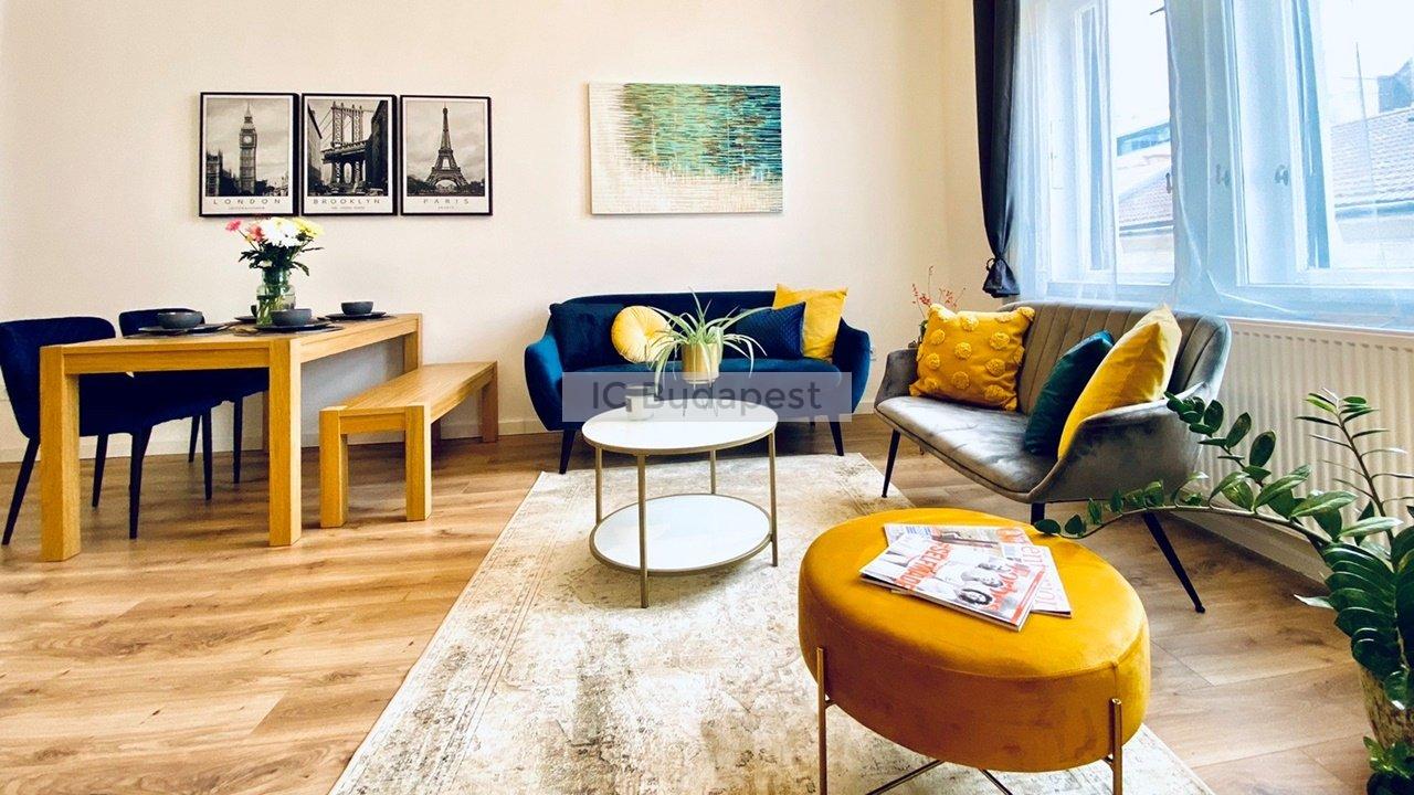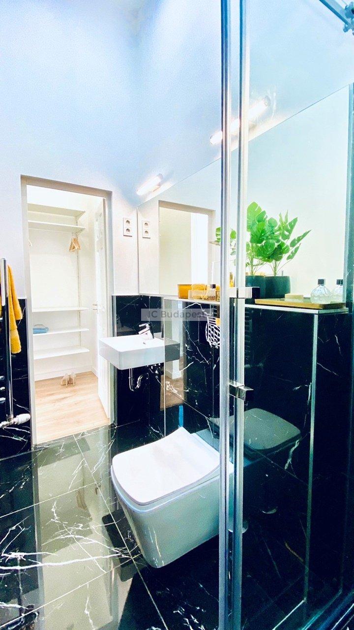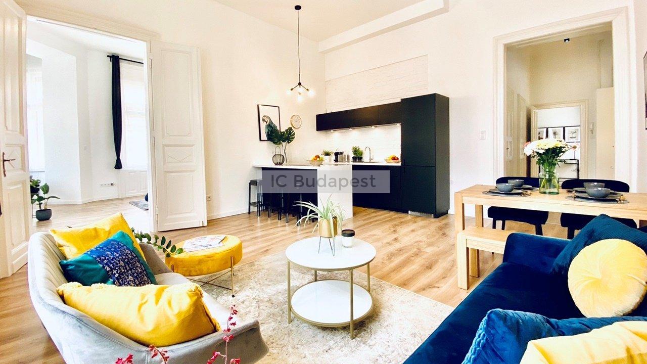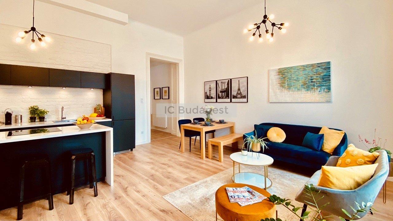 Budapest VI. Kerületében, közel az Andrássy úthoz találjuk ezt a 81 m2 alapterülettel rendelkező, luxus módon kialakított, nappali plusz kettő hálószobás lakást. A társasház rendezett, jó lakóközösségű, kiváló állapotú. A rendkívül tágas lakás mindkét hálószobájához tartozik fürdőszoba, melyek burkolata egyedi, nagyvonalú. Berendezése modern, teljesen felszerelt. A konyha a tágas, világos nappaliban került kialakításra, étkezőpulttal, teljesen felszerelten. A szobák melletti gardróbok a könnyű és praktikus tárolást segítik.