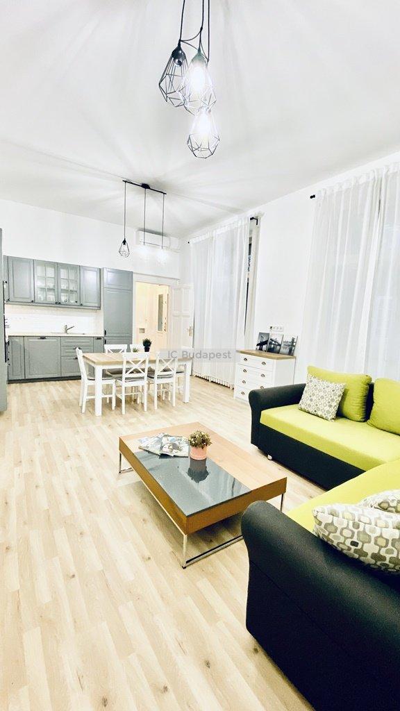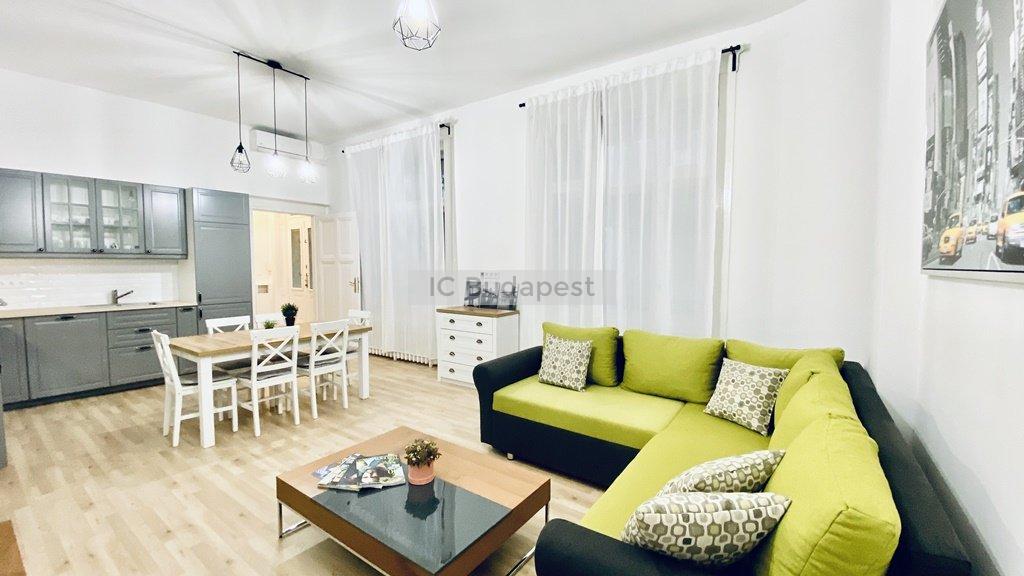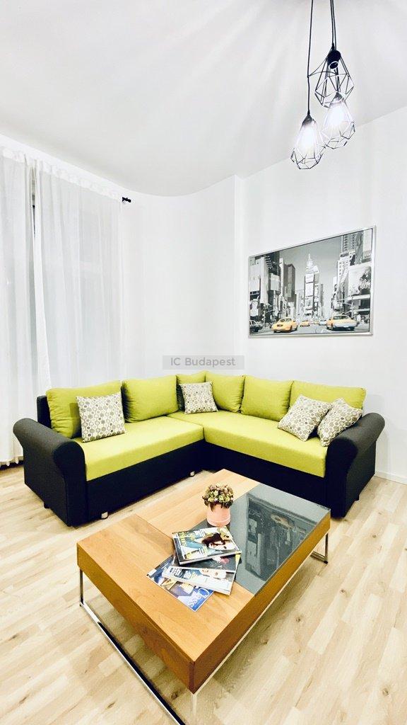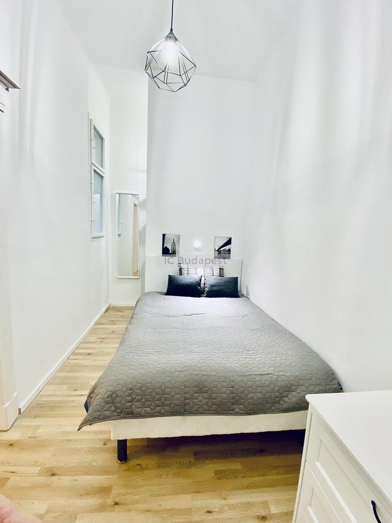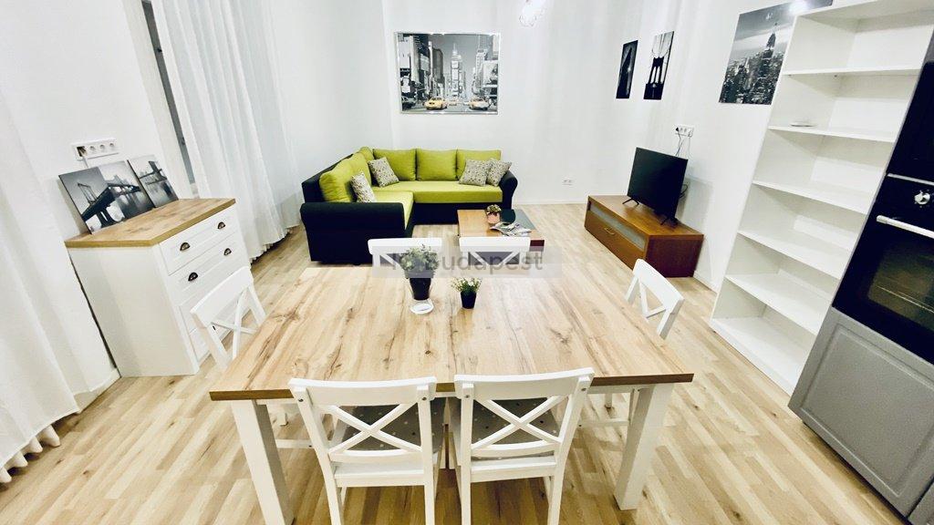 Budapest XIII. kerületében kiadó egy 50 m2-es, tágas, nappali plusz 1 hálószobás, klimatizált lakás, amely egy liftes, rendezett, polgári jellegű társasház 2. emeletén található. A nemrégiben felújított ingatlanban az összes nyílászáró ki lett cserélve, új burkolatokkal, igényesen kialakított lakás. Fűtése egyedi mérős házközponti. Az amerikai konyhás nappaliban egy ágyazható kanapé, komódok, TV szolgálja a kényelmet. A konyhabútor új, gépesített, felszerelt. A hálószoba franciaággyal berendezett, gardróbhelyiséggel rendelkező. A fürdőszoba tusolós kialakítású, itt találjuk a mosógépet is. A közös költség 23.000 Ft/hó, a közművek külön mérőórásak, a fogyasztás egyedi mérés után fizetendő. Ideális otthona lehet pároknak, illetve diákoknak.