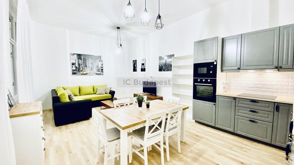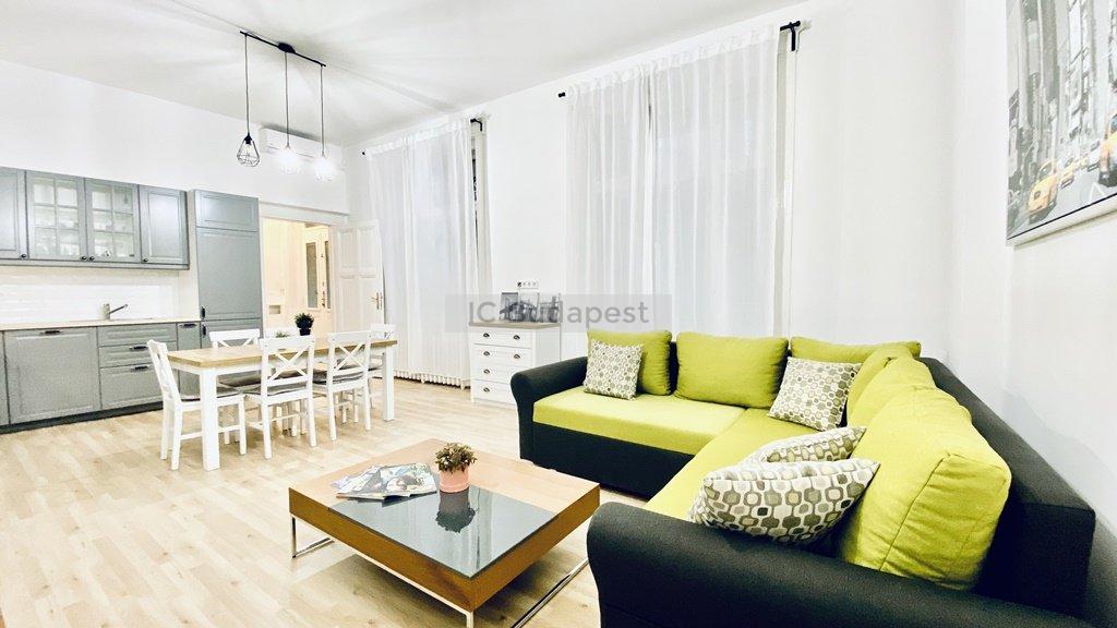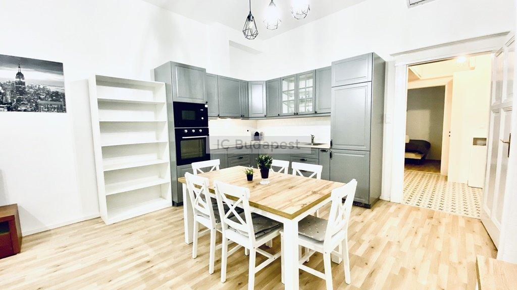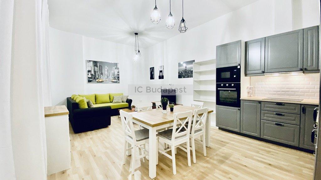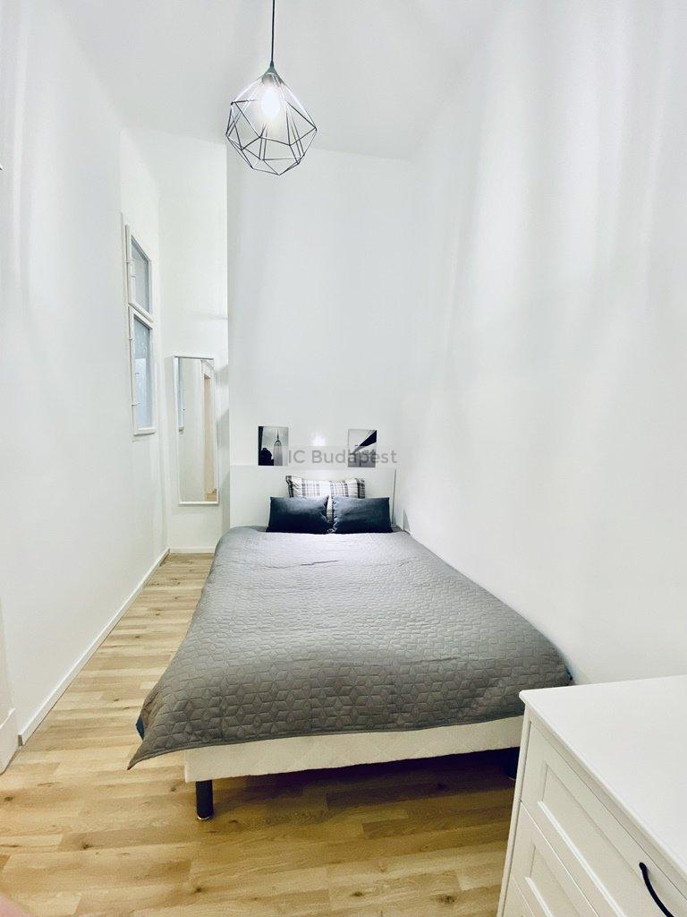 Budapest XIII. kerületében kiadó egy 50 m2-es, tágas, nappali plusz 1 hálószobás, klimatizált lakás, amely egy liftes, rendezett, polgári jellegű társasház 2. emeletén található. A nemrégiben felújított ingatlanban az összes nyílászáró ki lett cserélve, új burkolatokkal, igényesen kialakított lakás. Fűtése egyedi mérős házközponti. Az amerikai konyhás nappaliban egy ágyazható kanapé, komódok, TV szolgálja a kényelmet. A konyhabútor új, gépesített, felszerelt. A hálószoba franciaággyal berendezett, gardróbhelyiséggel rendelkező. A fürdőszoba tusolós kialakítású, itt találjuk a mosógépet is. A közös költség 23.000 Ft/hó, a közművek külön mérőórásak, a fogyasztás egyedi mérés után fizetendő. Ideális otthona lehet pároknak, illetve diákoknak.