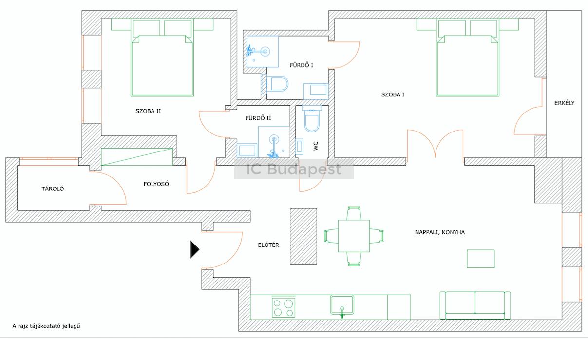 Kiváló elhelyezkedése, kialakítása, berendezése miatt igazán kényelmes otthona lehet két összeköltözőnek, vagy egy párnak.