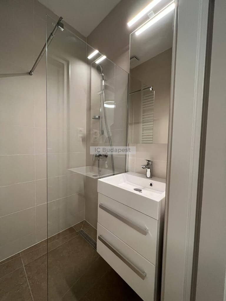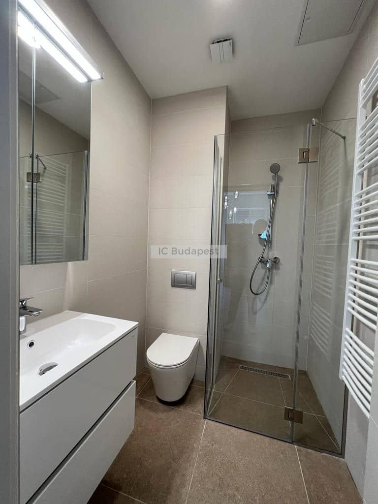 Mindkét hálószobához saját, tusolós fürdőszoba tartozik, ezenkívül még egy külön WC is növeli a komfortot. Az egyik hálószobából erkély nyílik, melyről láthatjuk a Budai hegyeket is.