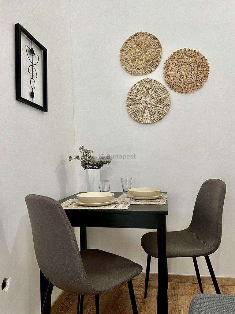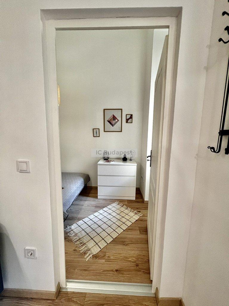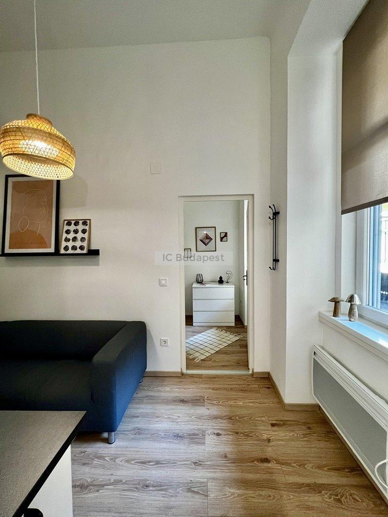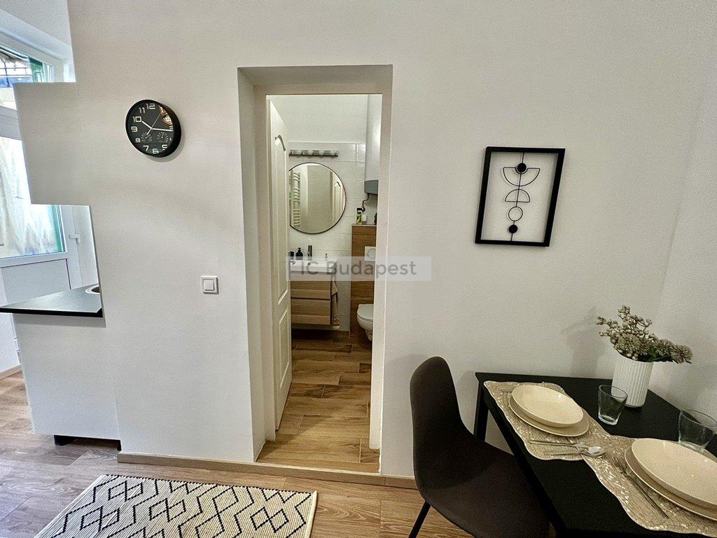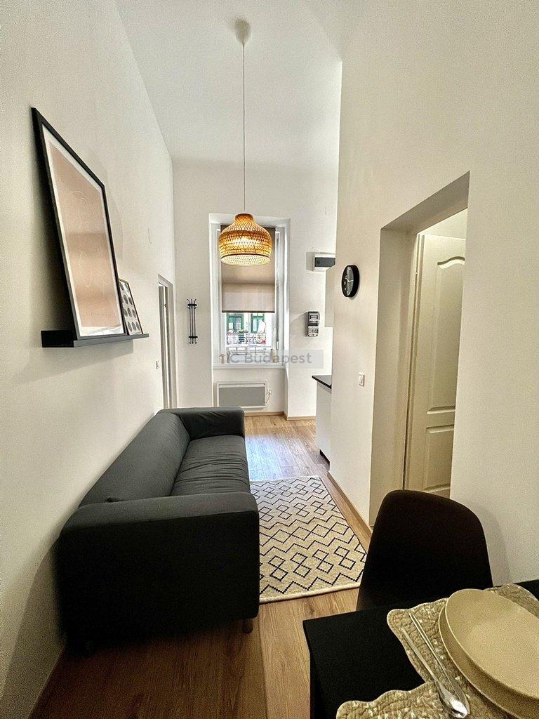 Budapest VI. kerületében, az Andrássy útra merőleges Vörösmarty utcában, rendezett társasház 1. emeleti lakása kiadó. A 30 m2-es lakás függőfolyósóról nyílik, nappali +1 szobás kialakítású. Belépve a konyha-nappali rész fogad bennünket, mely igazán hangulatos, otthonos kialakítású. A hálószoba és a fürdőszoba is a nappaliból nyílik. A konyha új bútorral és gépekkel felszerelt, a fürdőszoba tusolós kialakítású, mosógéppel felszerelt. A lakásban megtalálható burkolatok igényesek, fiatalosak, ugyanúgy, mint a berendezés is, mely teljesen új. A hálószoba franciaággyal berendezett, mellette kialakításra került egy gardróbhelyiség is, mely a tárolást könnyíti meg. A lakás fűtése elektromos. Kiválóan alkalmas egy pár lakhatására.