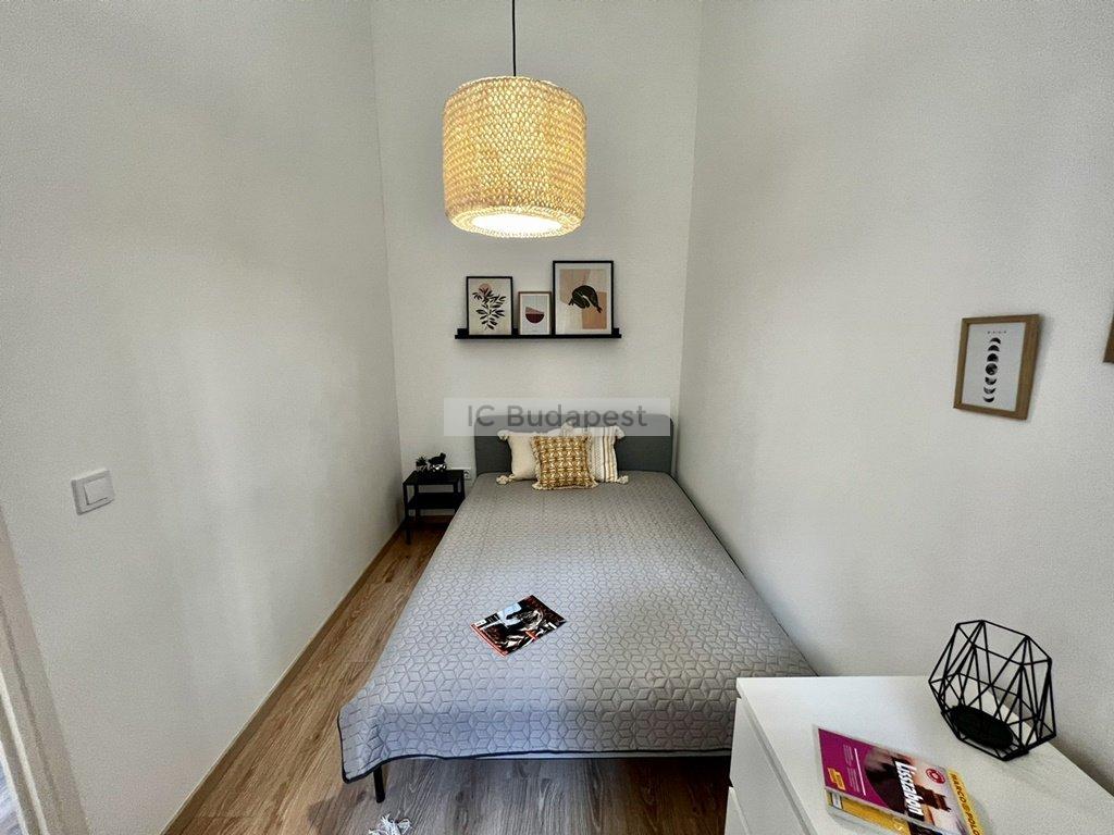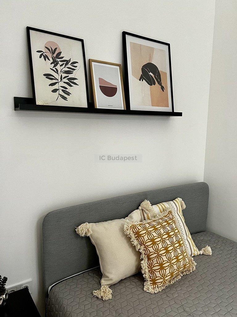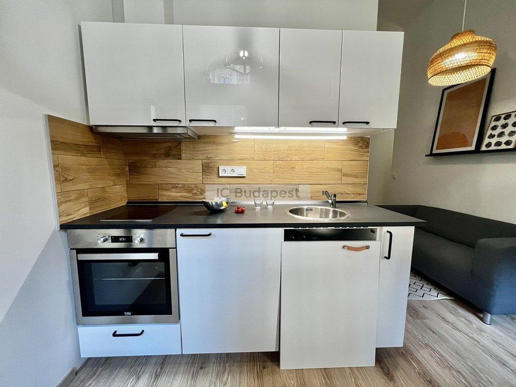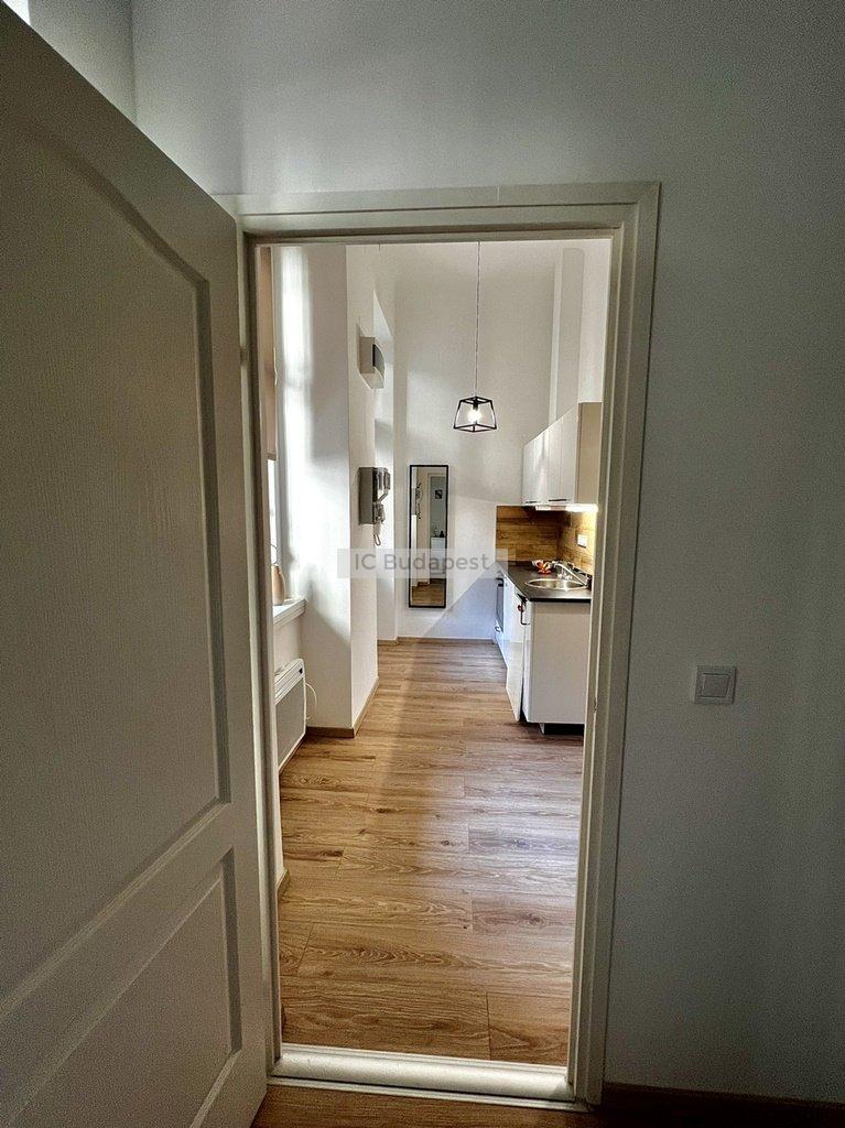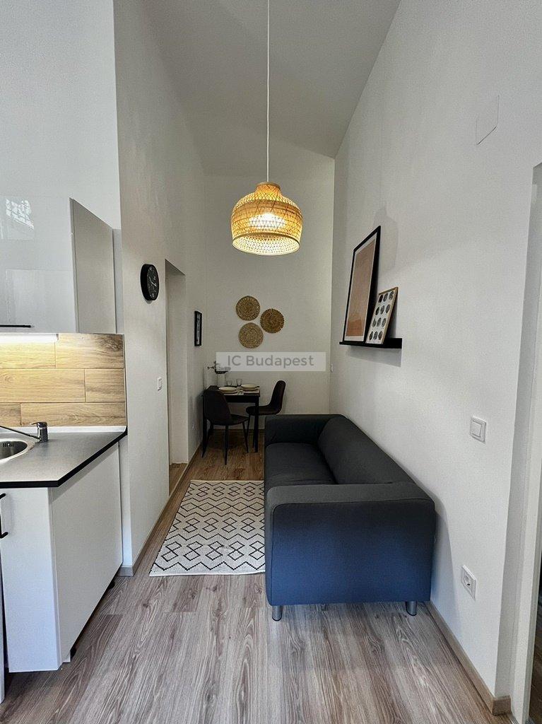 Budapest VI. kerületében, az Andrássy útra merőleges Vörösmarty utcában, rendezett társasház 1. emeleti lakása kiadó. A 30 m2-es lakás függőfolyósóról nyílik, nappali +1 szobás kialakítású. Belépve a konyha-nappali rész fogad bennünket, mely igazán hangulatos, otthonos kialakítású. A hálószoba és a fürdőszoba is a nappaliból nyílik. A konyha új bútorral és gépekkel felszerelt, a fürdőszoba tusolós kialakítású, mosógéppel felszerelt. A lakásban megtalálható burkolatok igényesek, fiatalosak, ugyanúgy, mint a berendezés is, mely teljesen új. A hálószoba franciaággyal berendezett, mellette kialakításra került egy gardróbhelyiség is, mely a tárolást könnyíti meg. A lakás fűtése elektromos. Kiválóan alkalmas egy pár lakhatására.