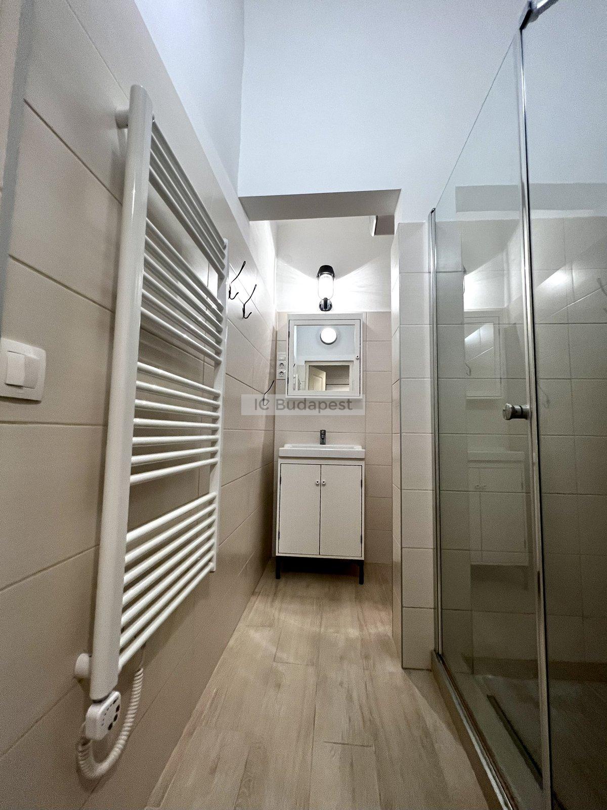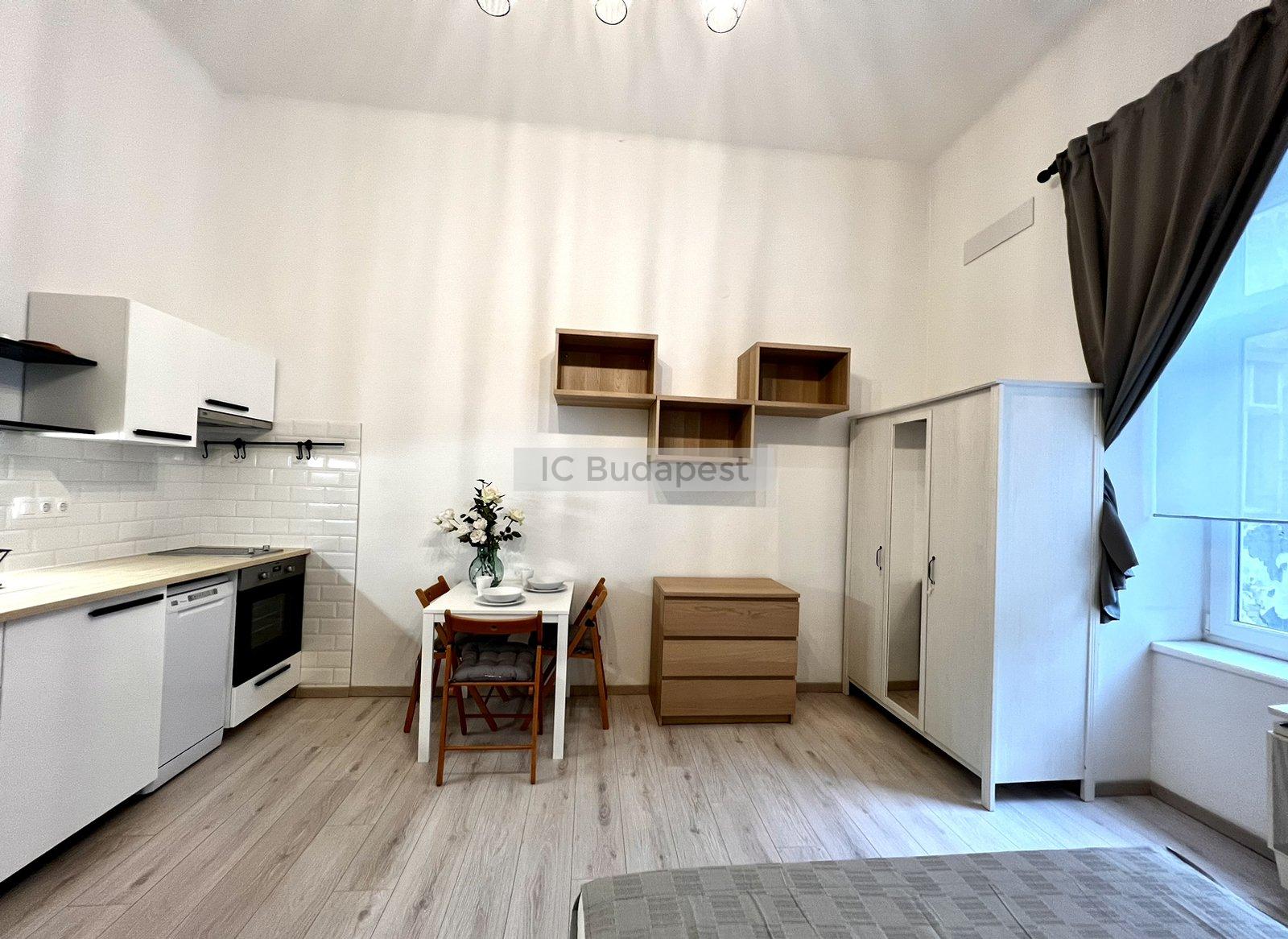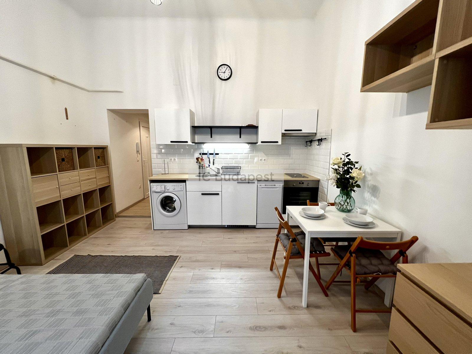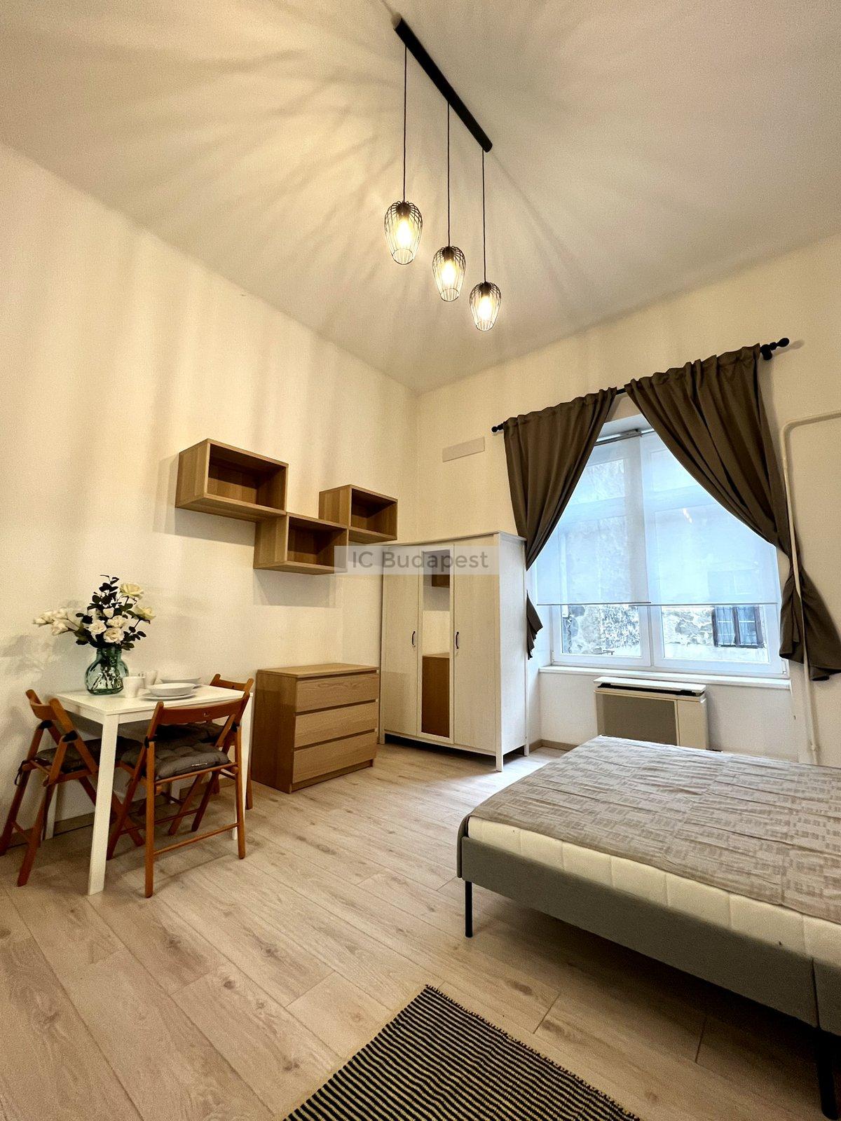 Budapest VI. kerületében, a kedvelt Hunyadi téren, gyönyörű polgári épület 1. emeleti garzonlakása kiadó. A lakás teljesen felújított, egy szobás, tágas fürdőszobával rendelkezik. A konyha gépesített, felszerelt. A fürdőszobában mosógép is van, tusolós kialakítású.
