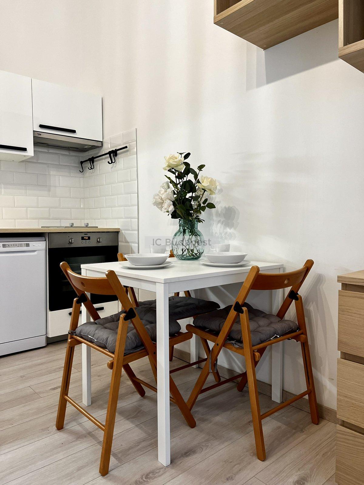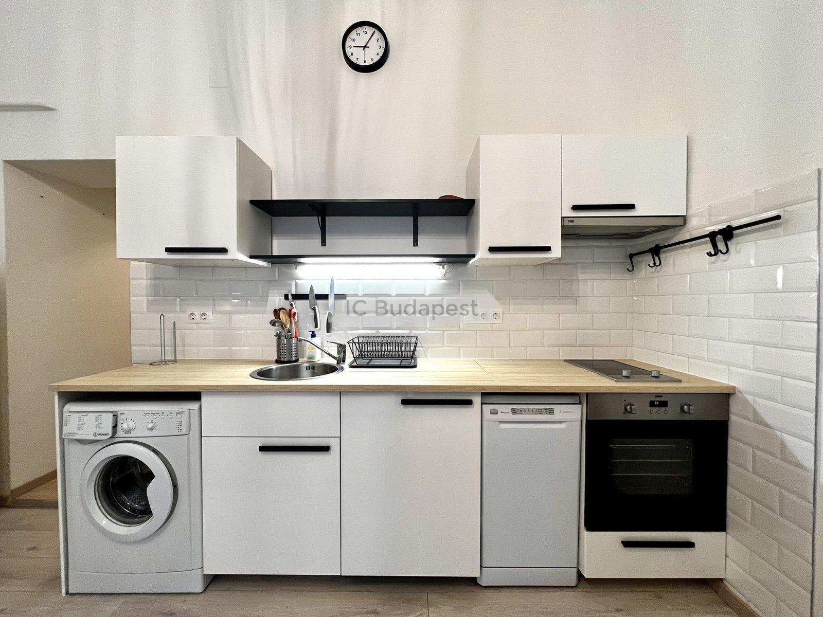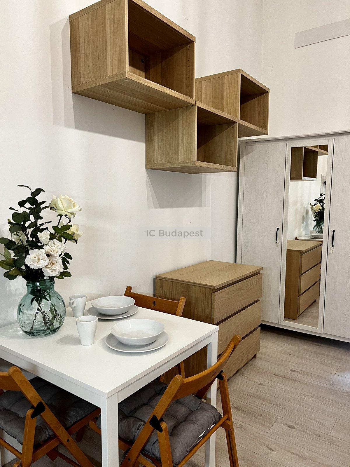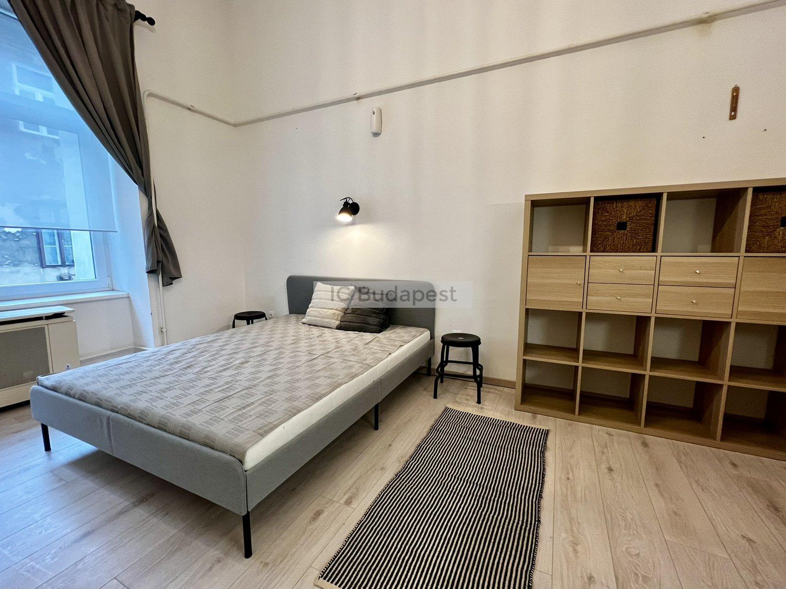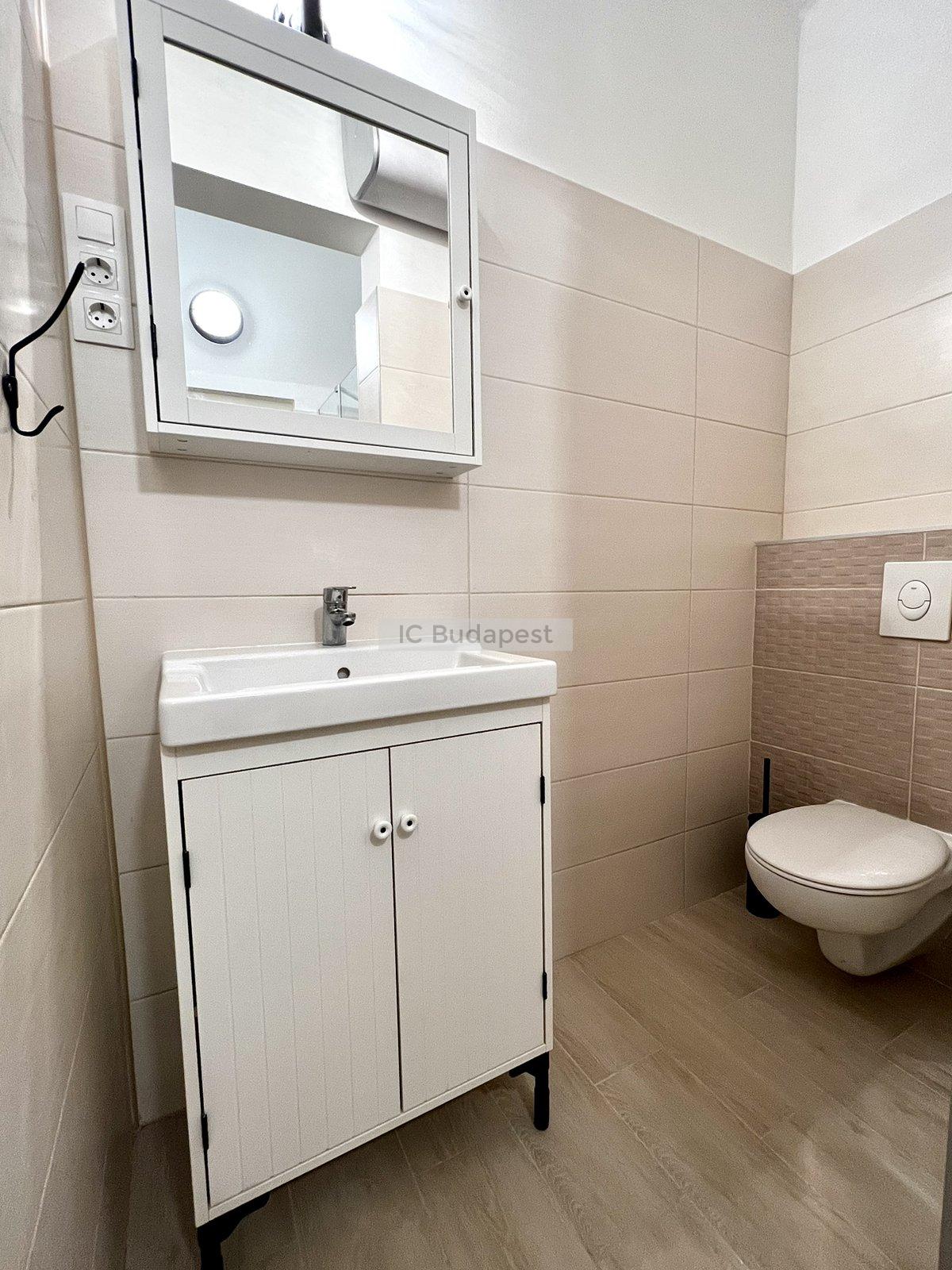Budapest VI. kerületében, a kedvelt Hunyadi téren, gyönyörű polgári épület 1. emeleti garzonlakása kiadó. A lakás teljesen felújított, egy szobás, tágas fürdőszobával rendelkezik. A konyha gépesített, felszerelt. A fürdőszobában mosógép is van, tusolós kialakítású.