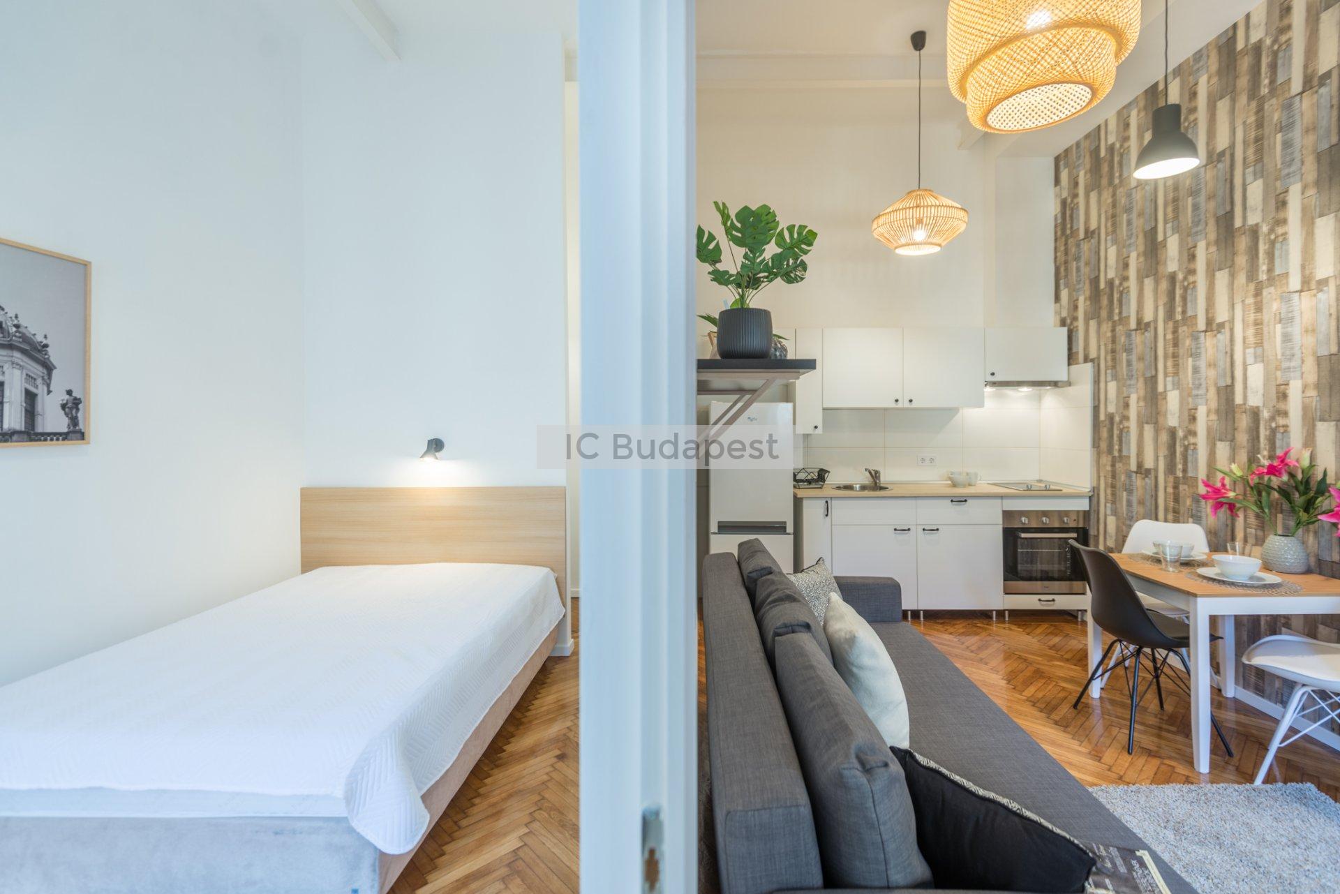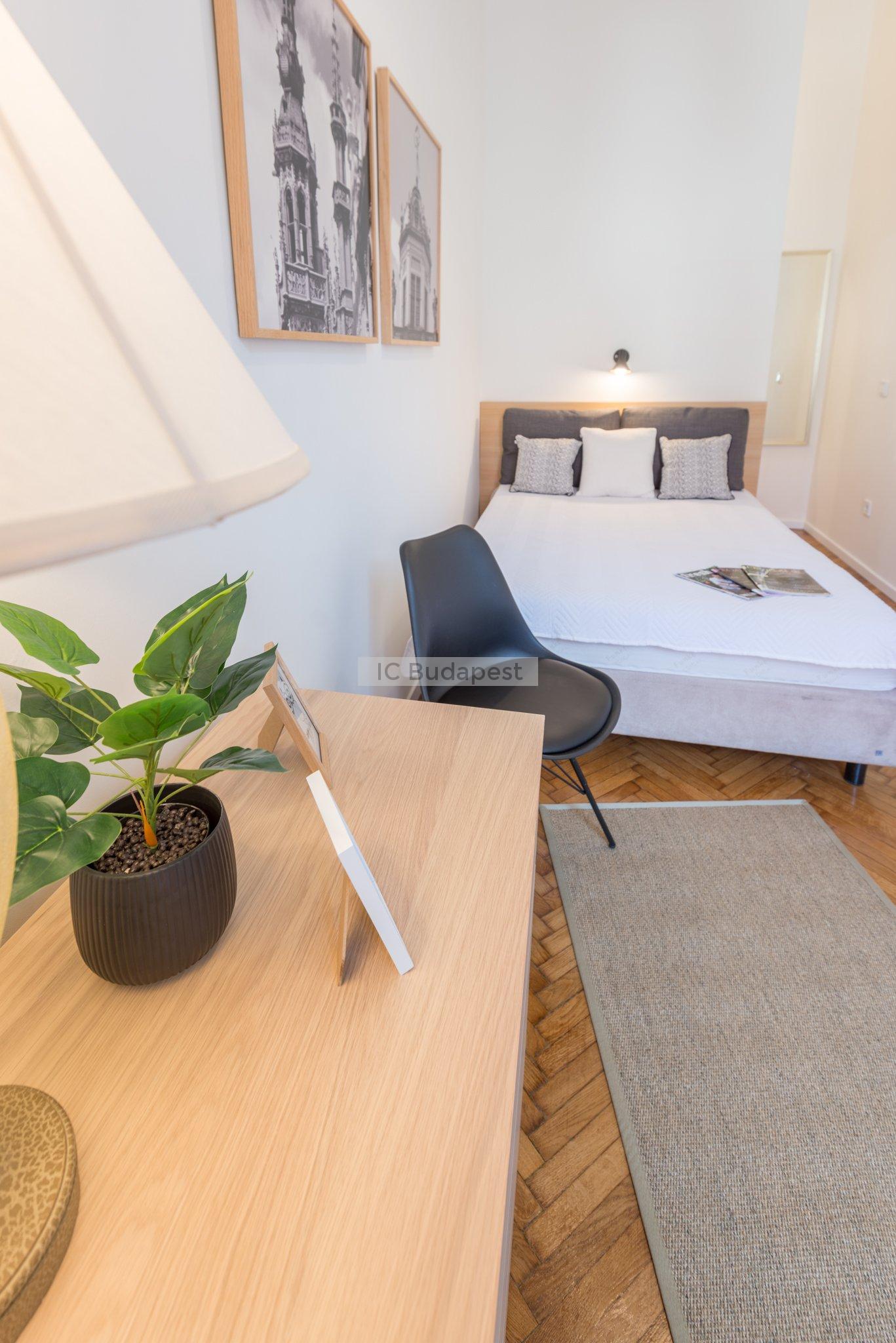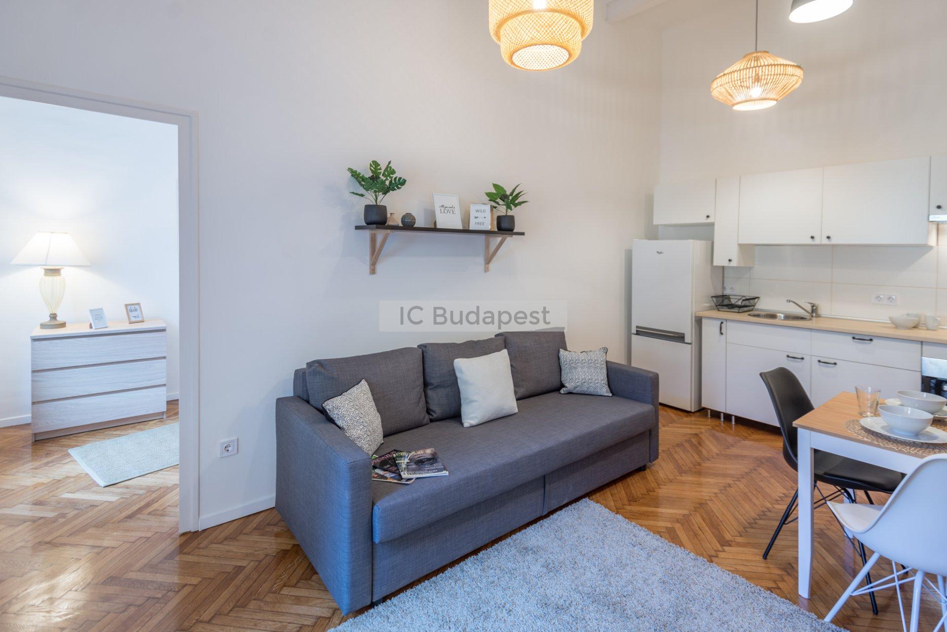 Budapest VII. kerületében, frekventált helyen, az Alsóerdősor utcában, rendezett lakóközösségű társasház 3. emeletén, 55 m2-es, teljesen felújított, nappali + 2 különbejáratú szobás lakás kiadó. Az új, műanyag nyílászárók redőnyözöttek, a lakásban cirkó radiátoros fűtés van. A fürdőszoba walk in zuhanyzós, ablakos, a burkolatok igényesek. A konyha gépesített, felszerelt, egy légtérben van a nappalival. A lakás nagyon világos, kellemes hangulatú, ideális 2 fő, vagy egy pár együttlakására.