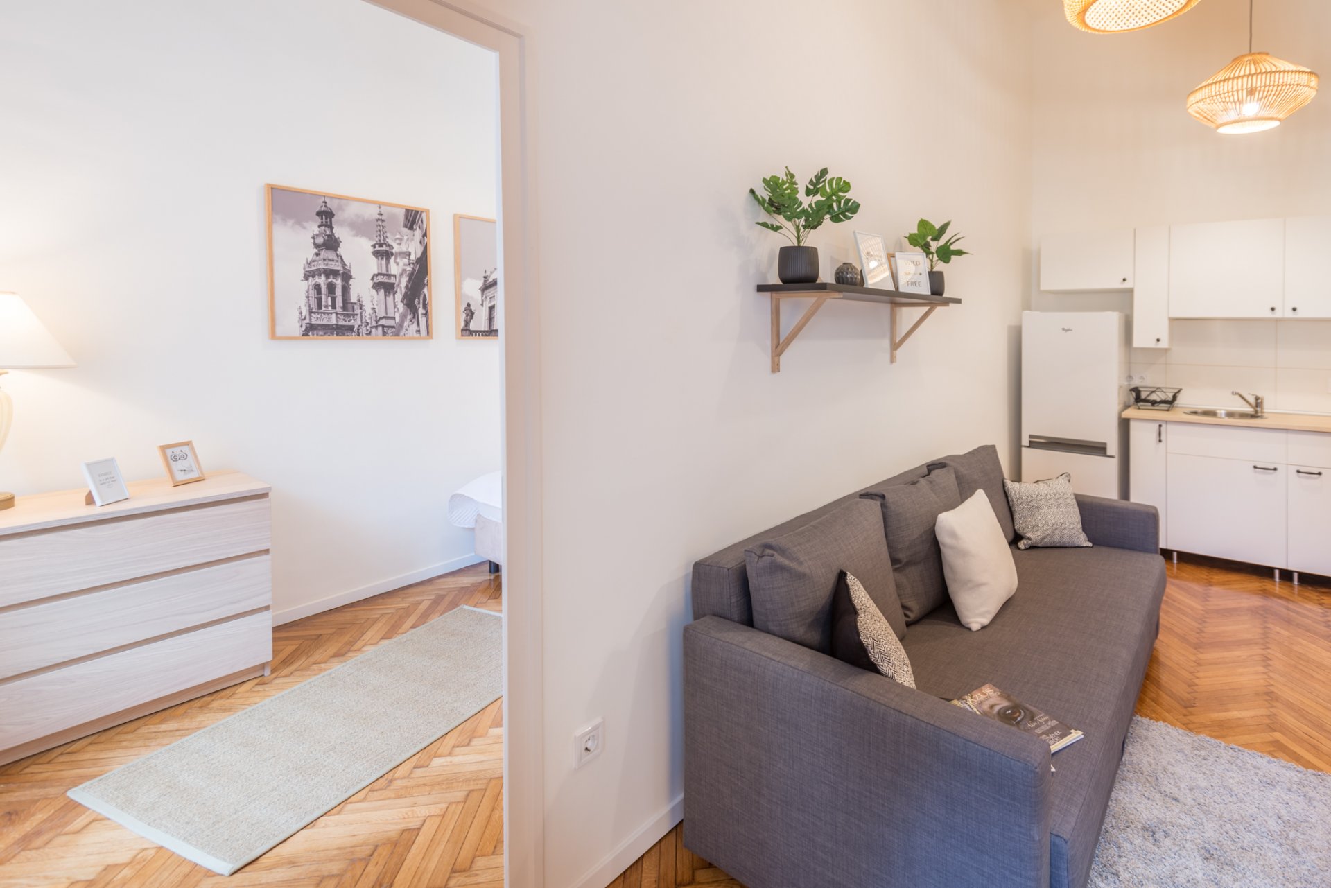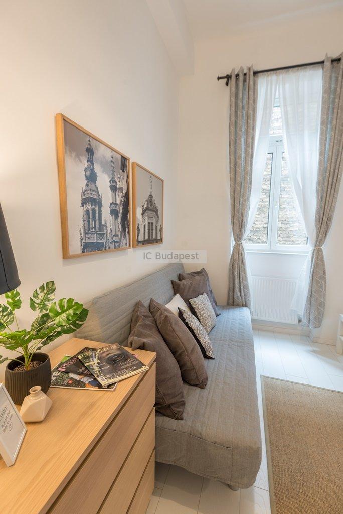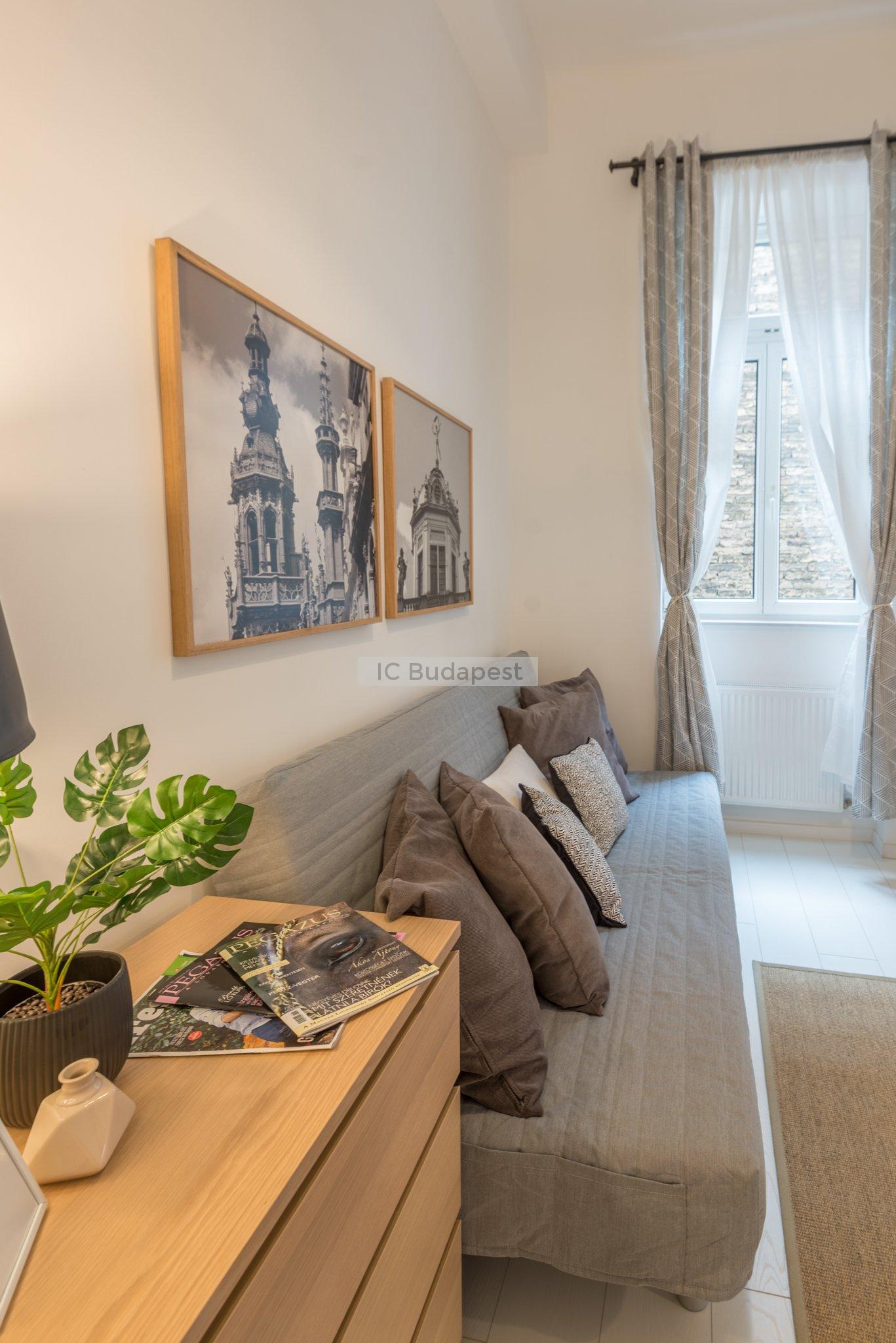 Budapest VII. kerületében, frekventált helyen, az Alsóerdősor utcában, rendezett lakóközösségű társasház 3. emeletén, 55 m2-es, teljesen felújított, nappali + 2 különbejáratú szobás lakás kiadó. Az új, műanyag nyílászárók redőnyözöttek, a lakásban cirkó radiátoros fűtés van. A fürdőszoba walk in zuhanyzós, ablakos, a burkolatok igényesek. A konyha gépesített, felszerelt, egy légtérben van a nappalival. A lakás nagyon világos, kellemes hangulatú, ideális 2 fő, vagy egy pár együttlakására.