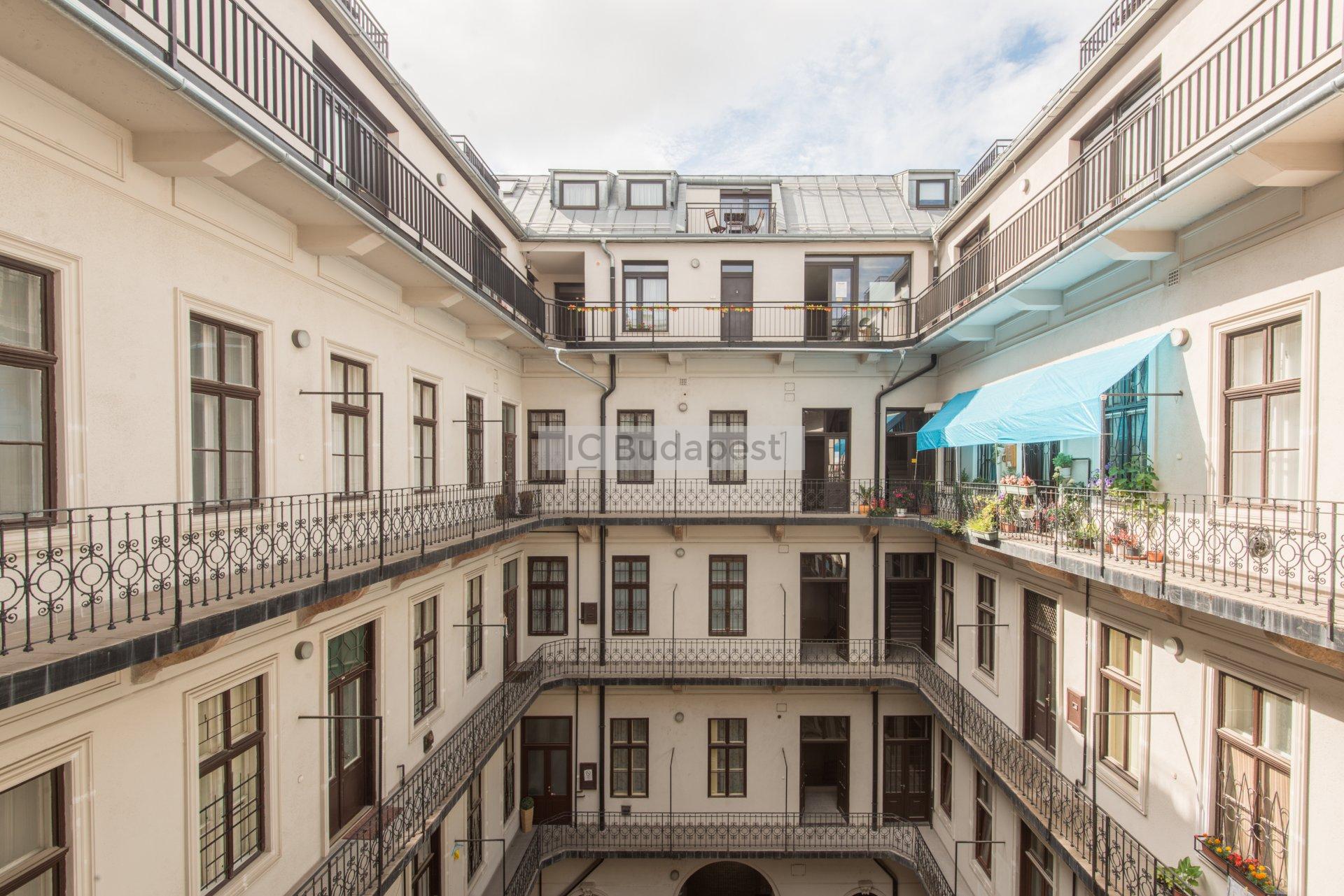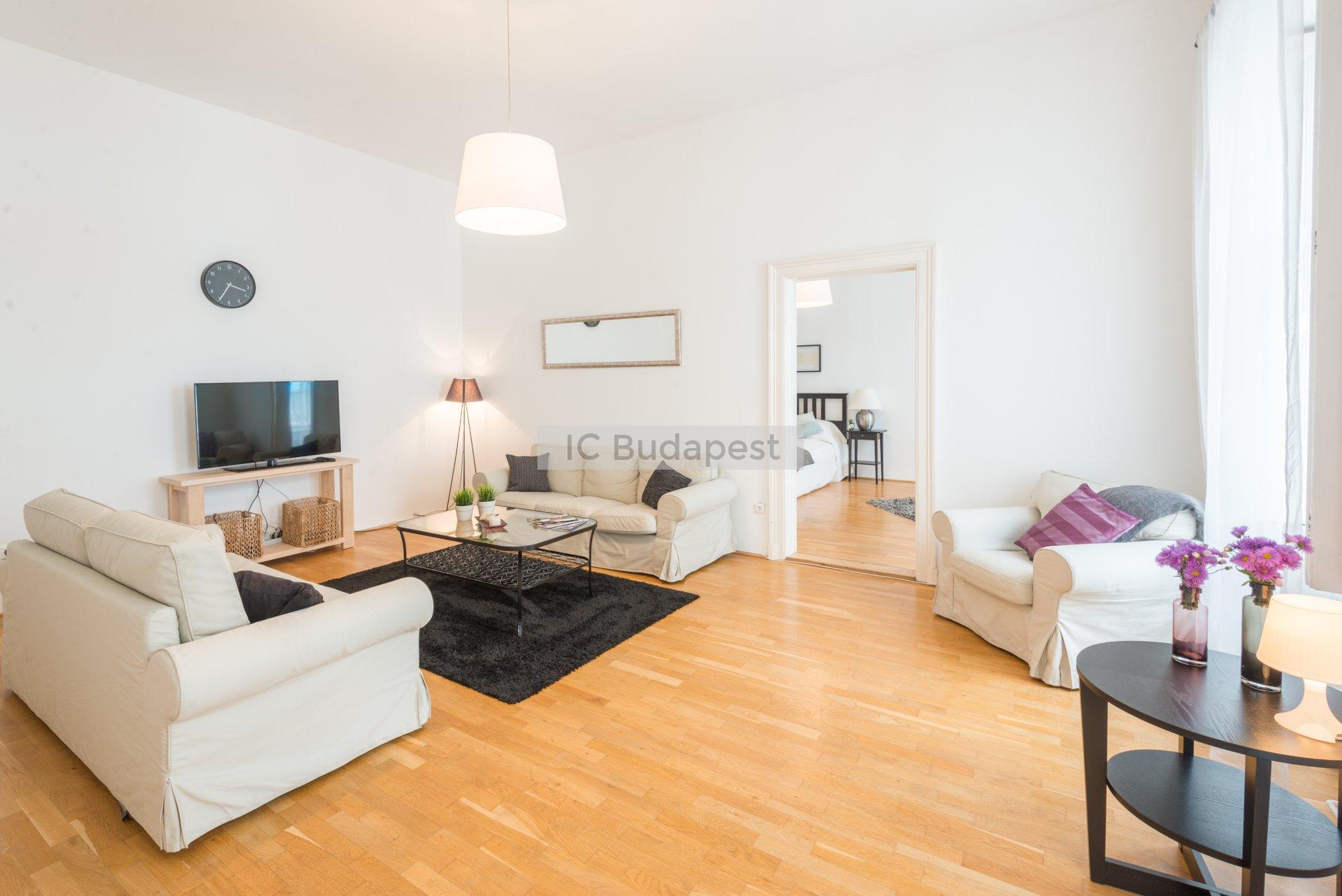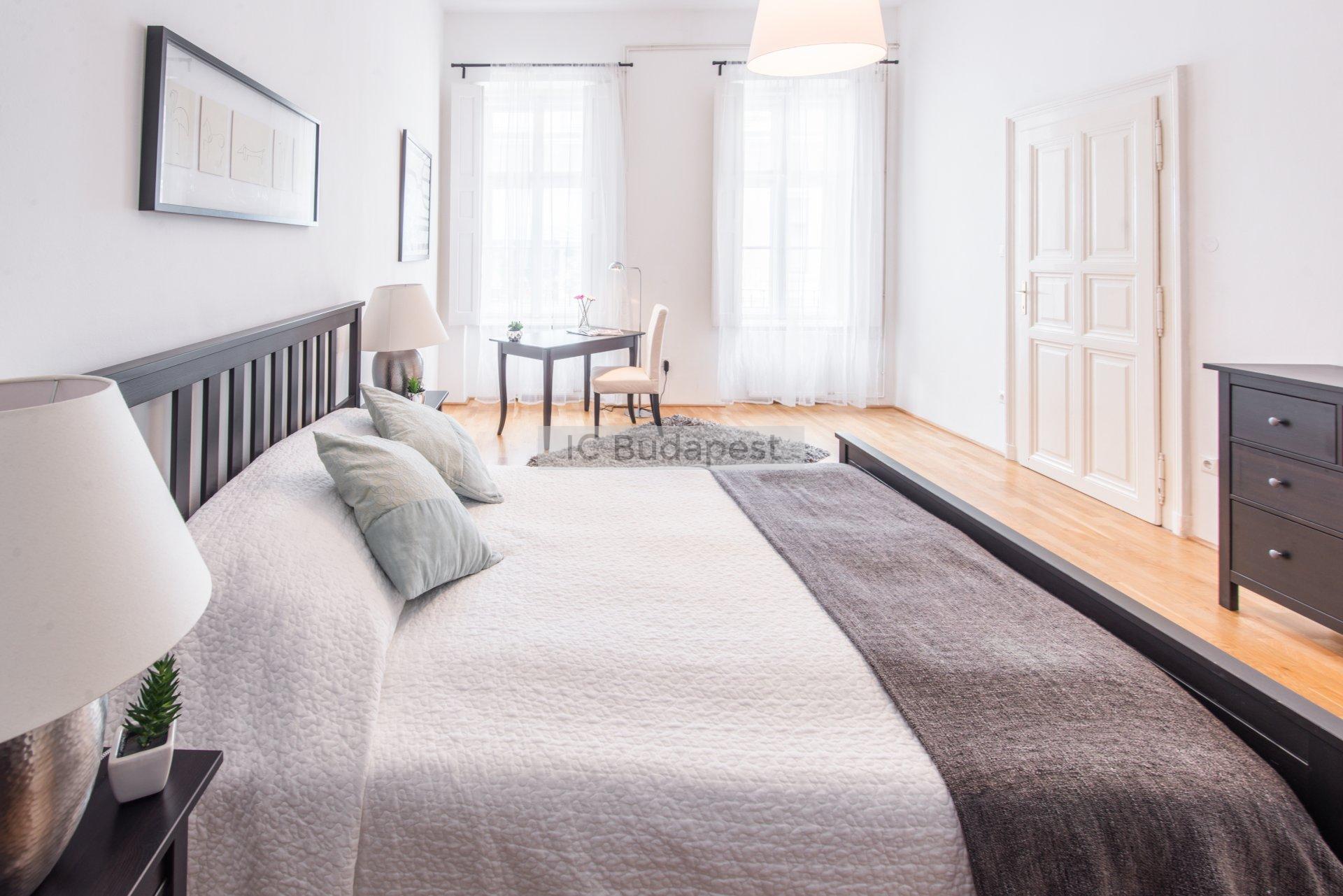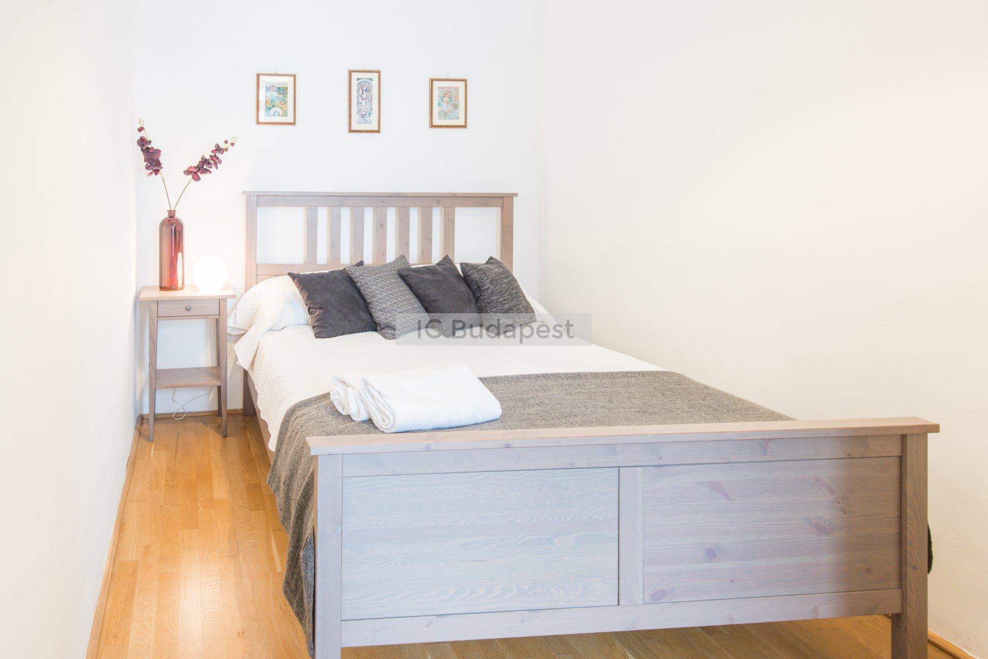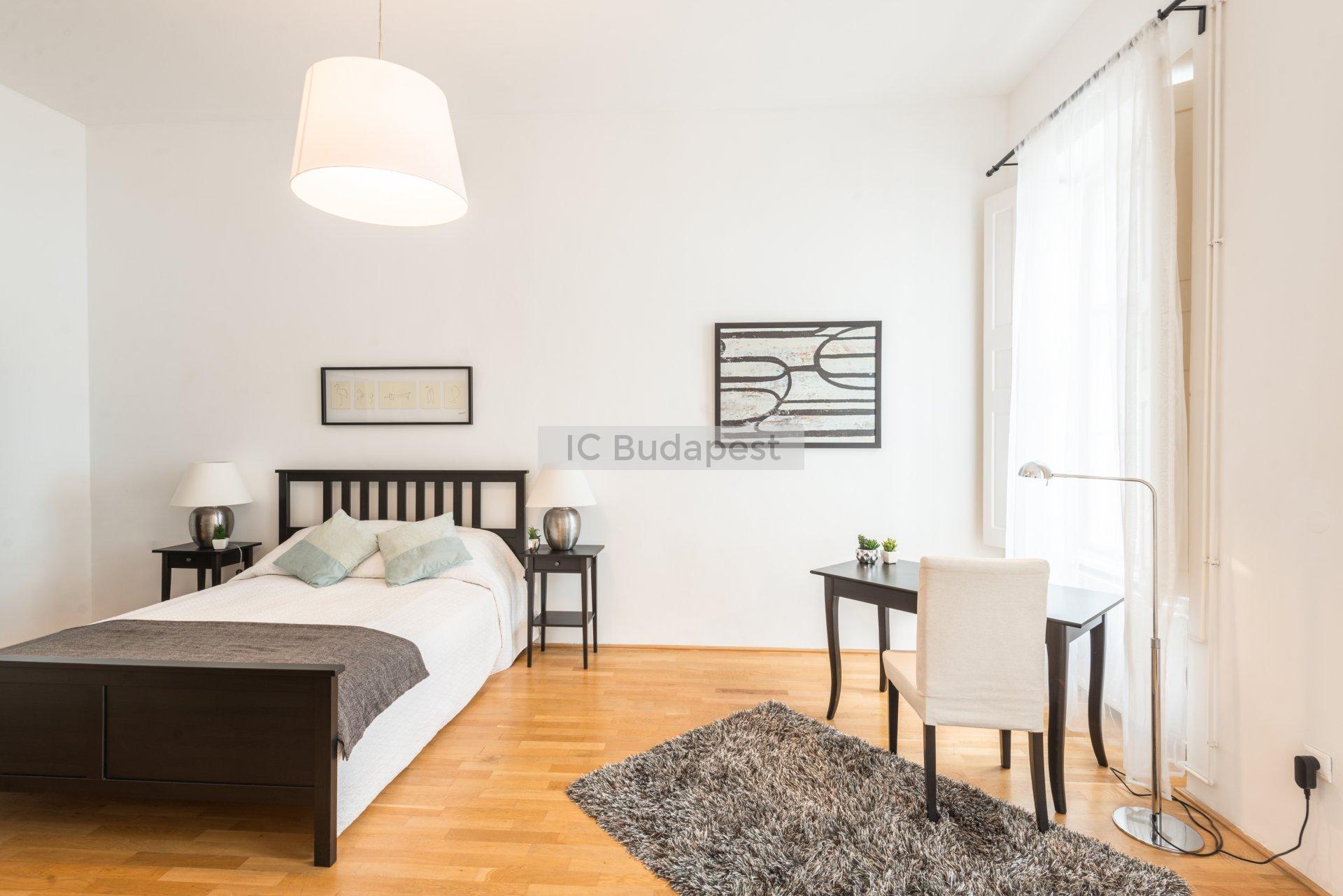 Budapest belvárosában, a népszerű Gozsdu udvar szomszédságában kiadó egy felújított, bútorozott, nappali plusz kettő szobás, 84 m2-es polgári lakás liftes házban. A lakás teljesen felújított, cirkó fűtéses. A lakás hatalmas ablakai az udvarra néznek, ám 3. emeleti elhelyezkedésének köszönhetően igazán világos. Berendezése modern, tágas konyhájában egy étkezőasztal székekkel is helyet kapott. A nappali tágas, világos, kényelmes ülőgarnitúrával, fotelekkel berendezett. Szobái franciaággyal felszereltek. A bérleti díj 700EURO/hó.