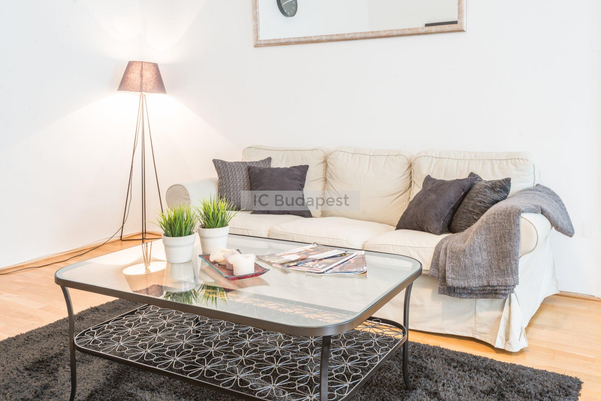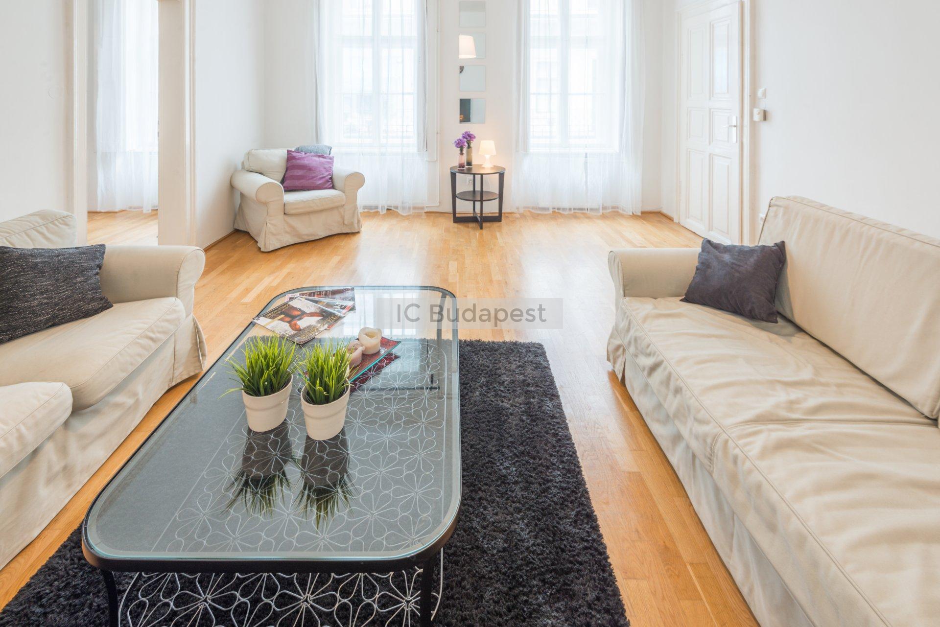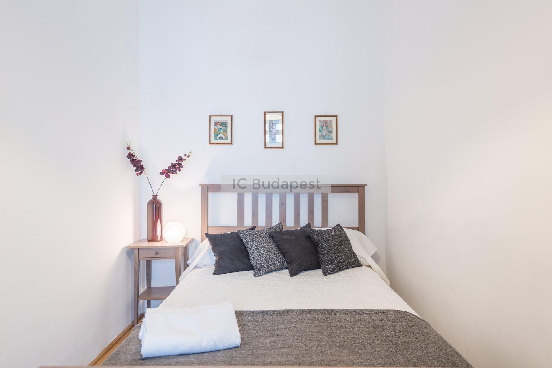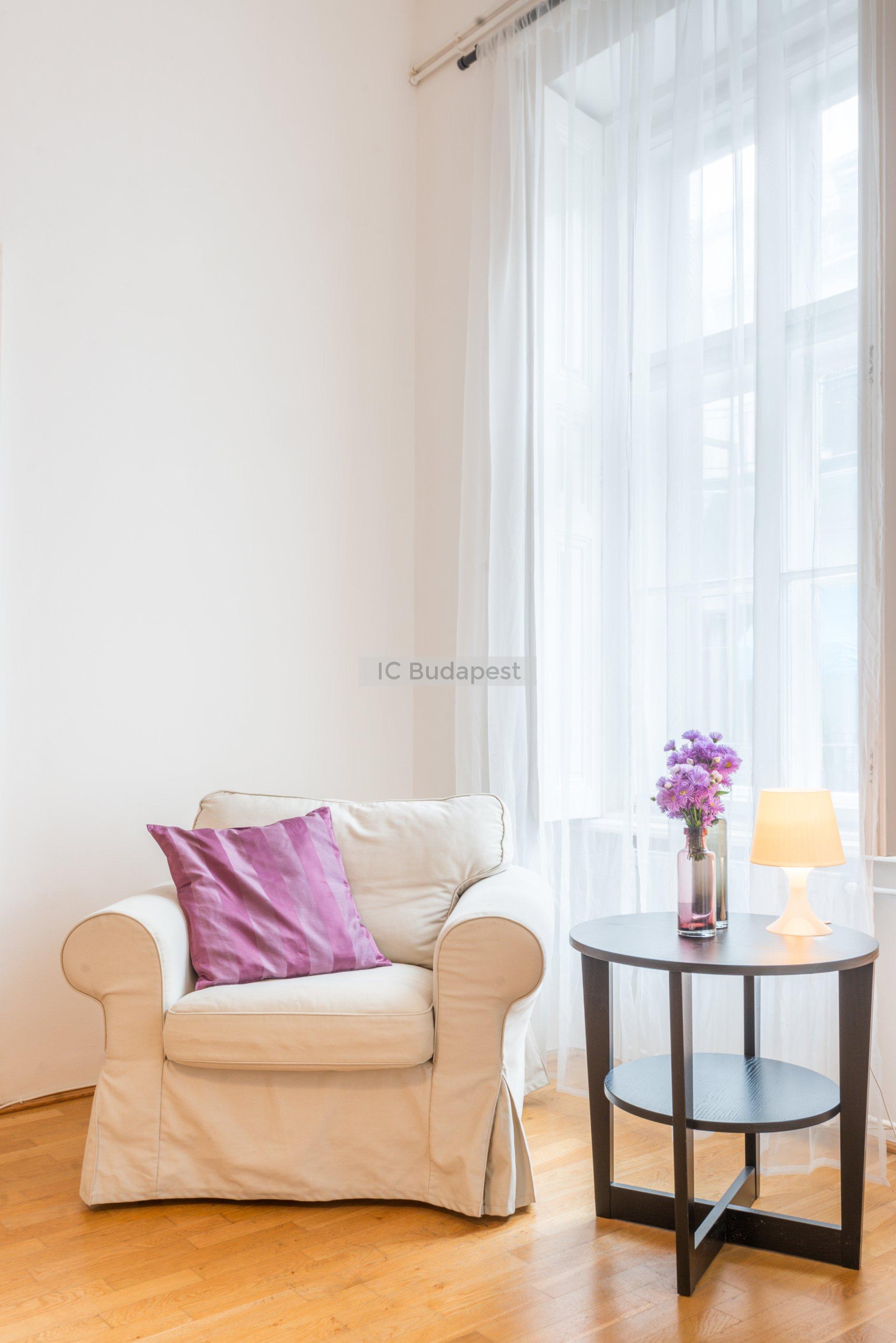 Budapest belvárosában, a népszerű Gozsdu udvar szomszédságában kiadó egy felújított, bútorozott, nappali plusz kettő szobás, 84 m2-es polgári lakás liftes házban. A lakás teljesen felújított, cirkó fűtéses. A lakás hatalmas ablakai az udvarra néznek, ám 3. emeleti elhelyezkedésének köszönhetően igazán világos. Berendezése modern, tágas konyhájában egy étkezőasztal székekkel is helyet kapott. A nappali tágas, világos, kényelmes ülőgarnitúrával, fotelekkel berendezett. Szobái franciaággyal felszereltek. A bérleti díj 700EURO/hó.