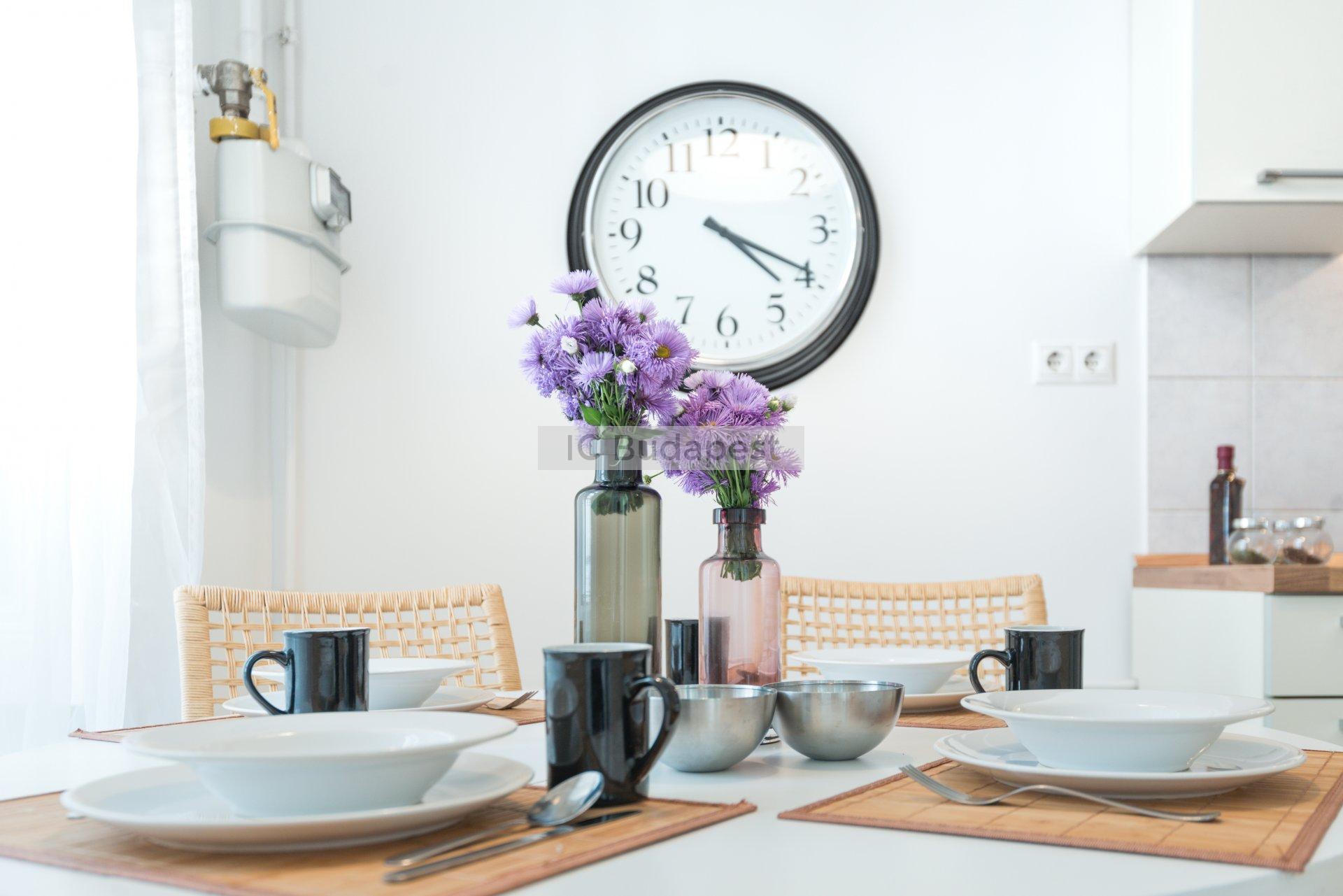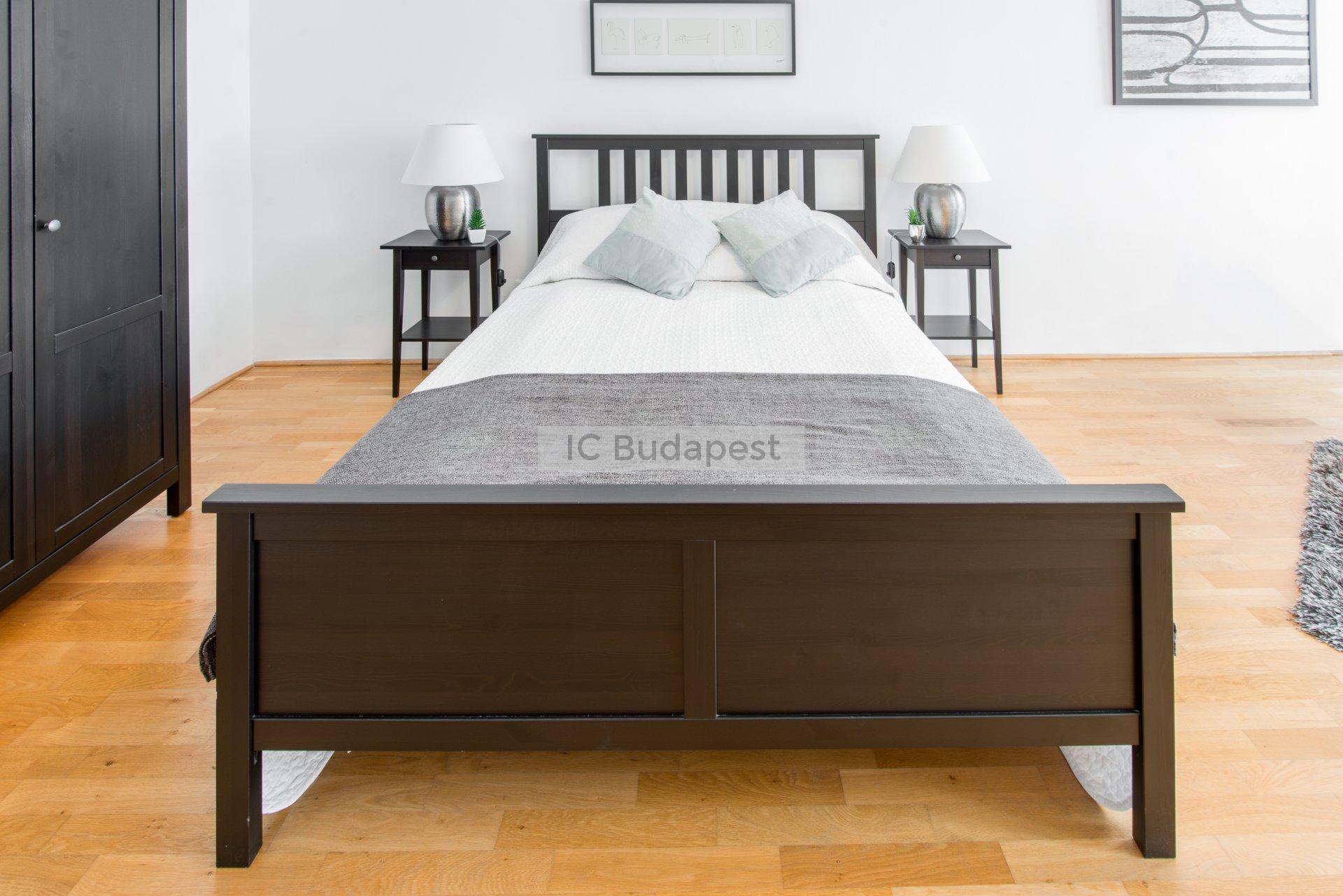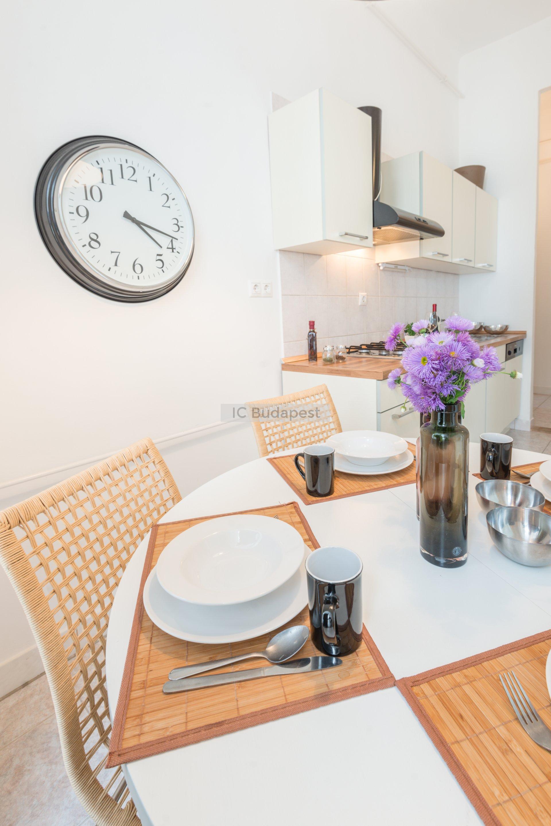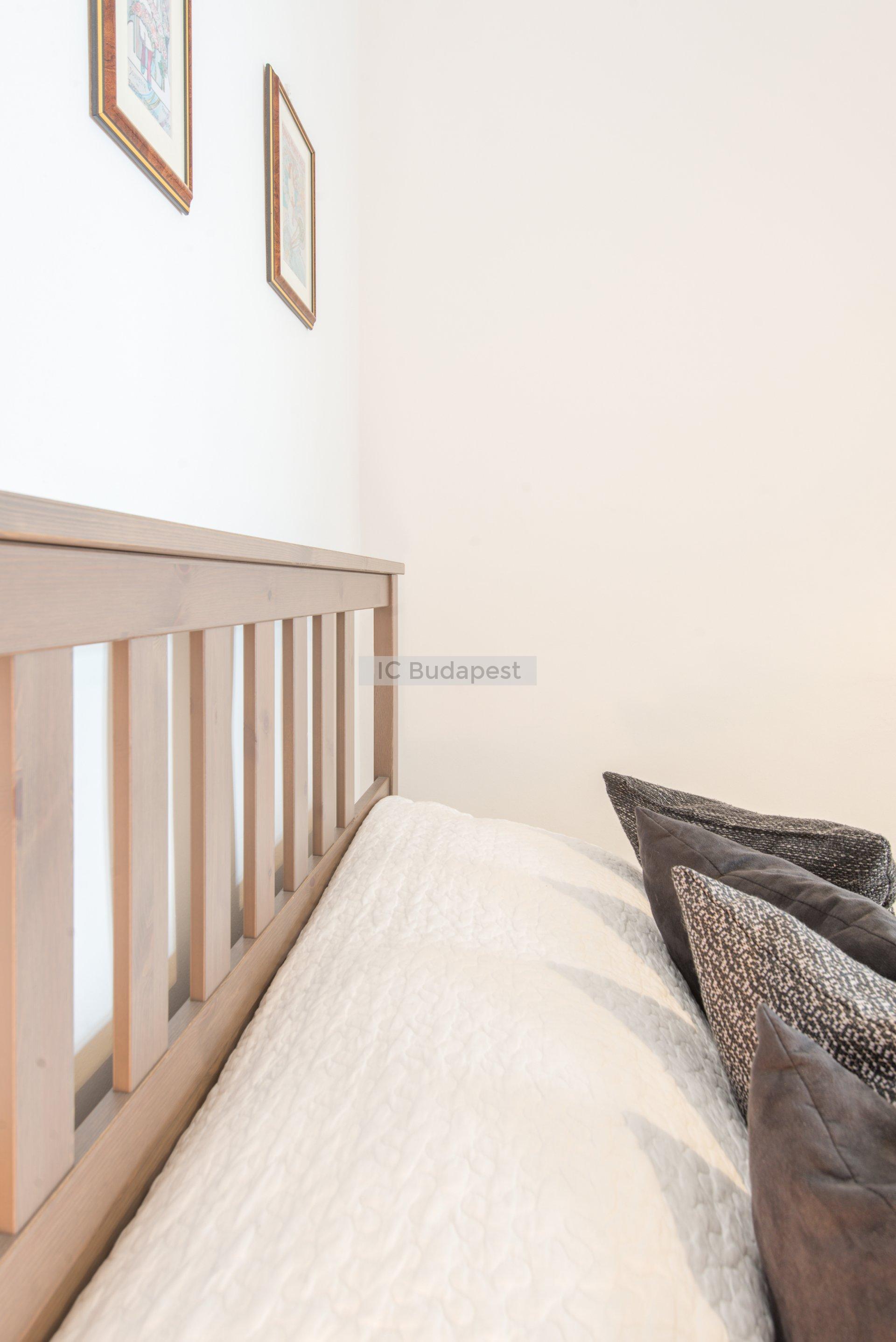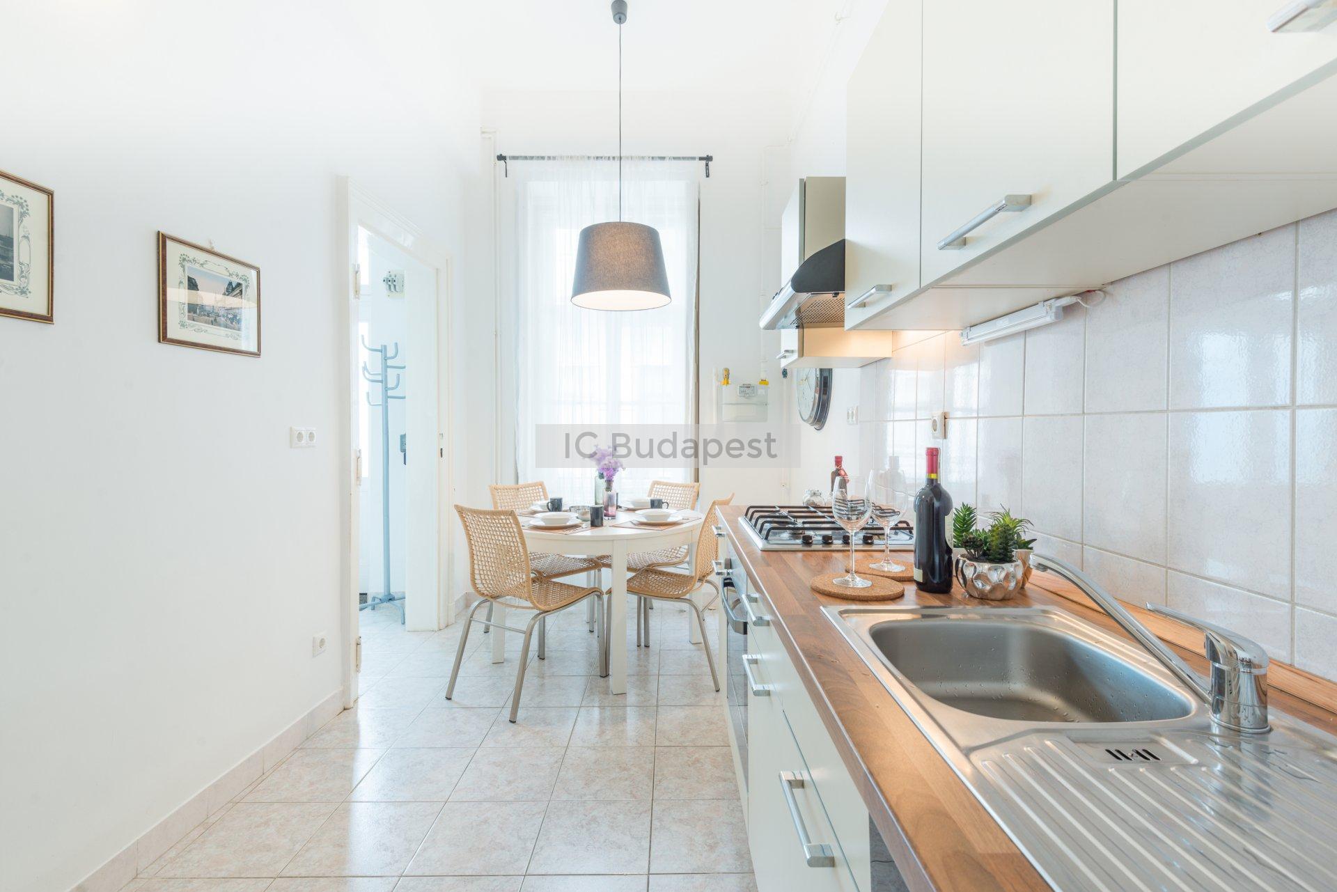 Budapest belvárosában, a népszerű Gozsdu udvar szomszédságában kiadó egy felújított, bútorozott, nappali plusz kettő szobás, 84 m2-es polgári lakás liftes házban. A lakás teljesen felújított, cirkó fűtéses. A lakás hatalmas ablakai az udvarra néznek, ám 3. emeleti elhelyezkedésének köszönhetően igazán világos. Berendezése modern, tágas konyhájában egy étkezőasztal székekkel is helyet kapott. A nappali tágas, világos, kényelmes ülőgarnitúrával, fotelekkel berendezett. Szobái franciaággyal felszereltek. A bérleti díj 700EURO/hó.
