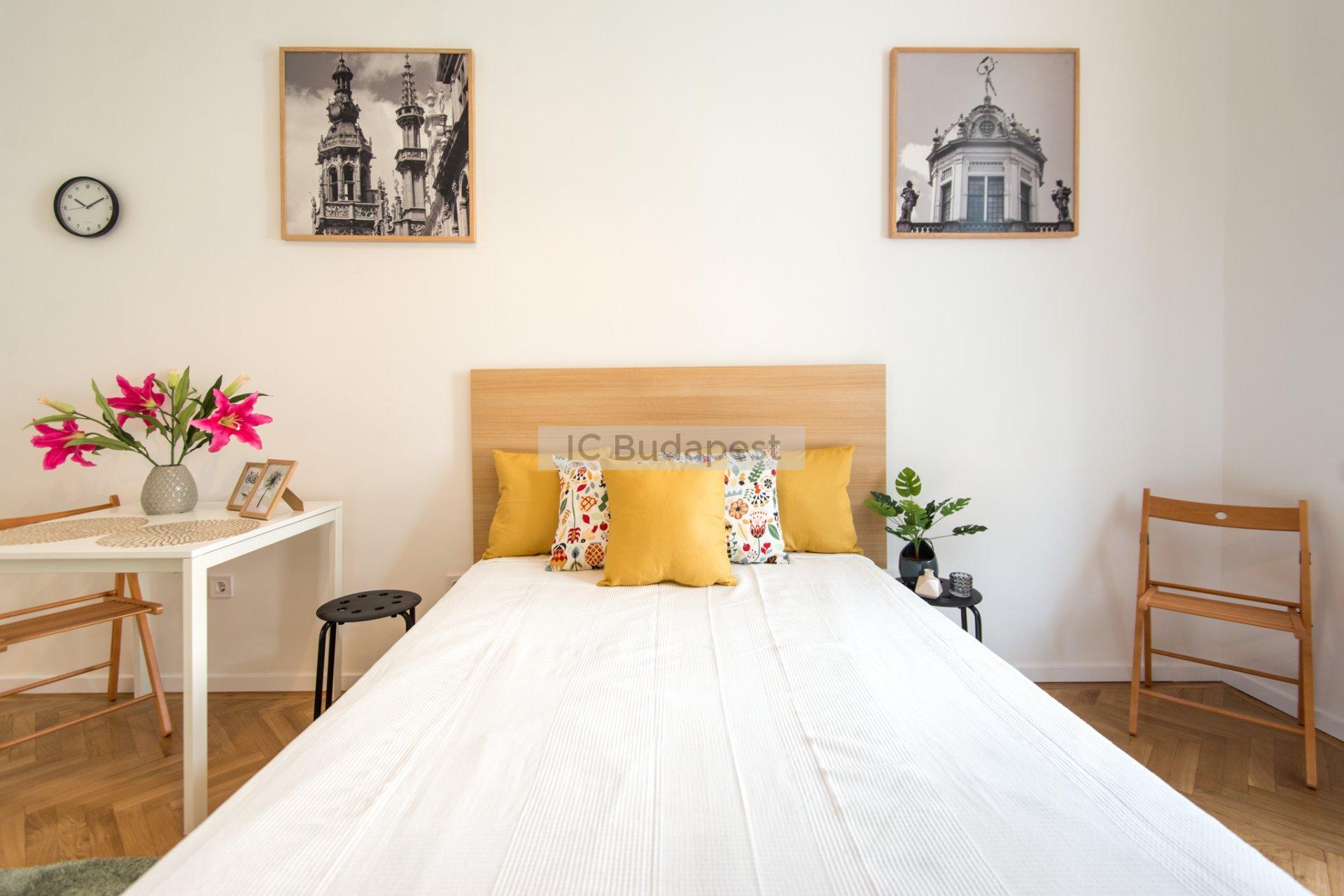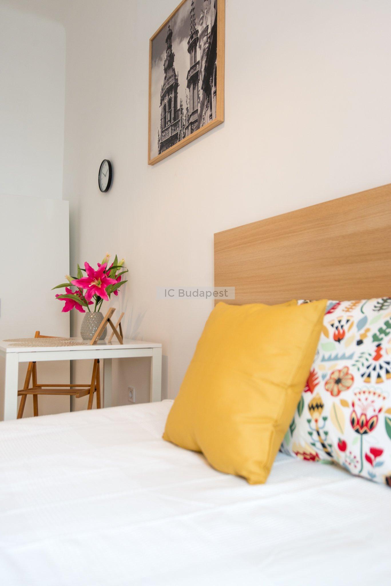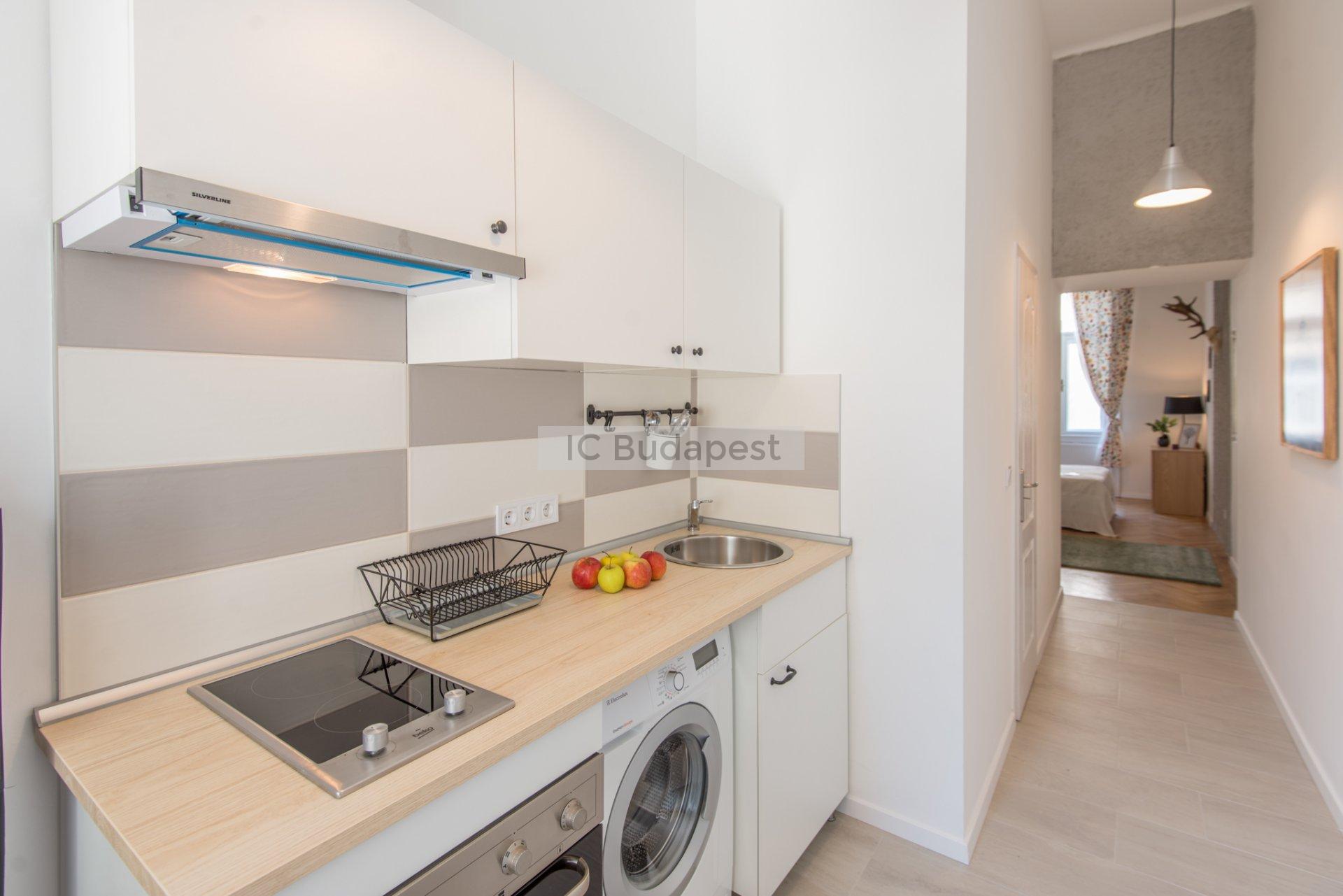 Budapest VII. kerületében, a Nefelejcs utcában, 3. emeleti, konyha-szoba-fürdőszoba helyiségekből álló, teljesen felújított, cirkó radiátoros fűtésű lakás kiadó. Az új, műanyag bejárati ajtón belépve a berendezett, gépesített konyhát találjuk. A fürdőszoba tusolós kialakítású. A szoba igazán tágas, világos, franciaággyal berendezett. A tárolást gardróbszekrény és fiókos szekrény segíti. A fiatalos lakás ideális egyedülállóknak, illetve egy pár kényelmes lakhatására. A bérleti díj 420 EUR + rezsi.