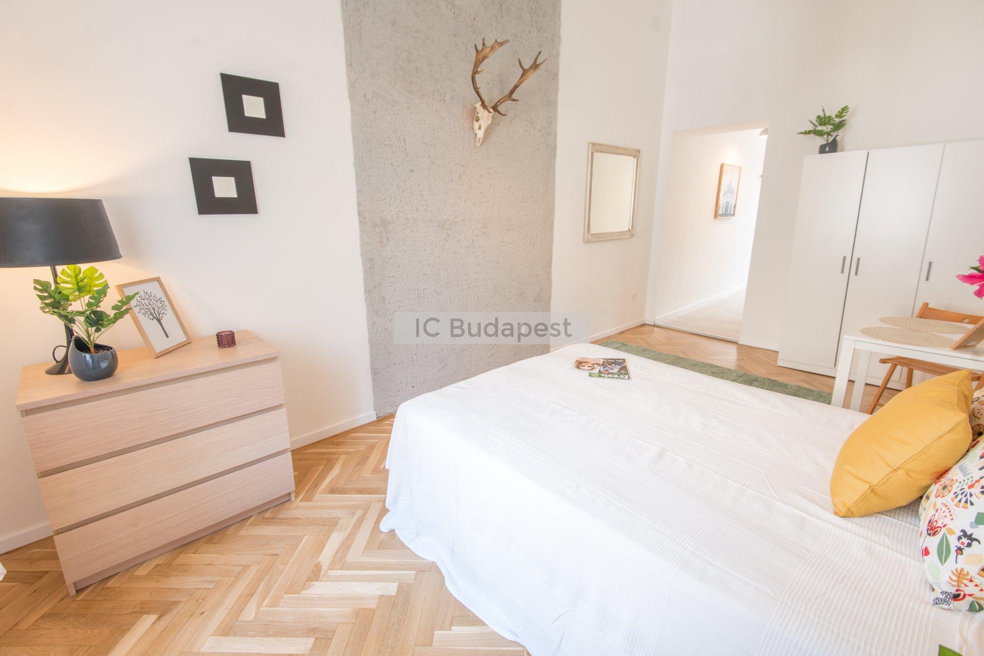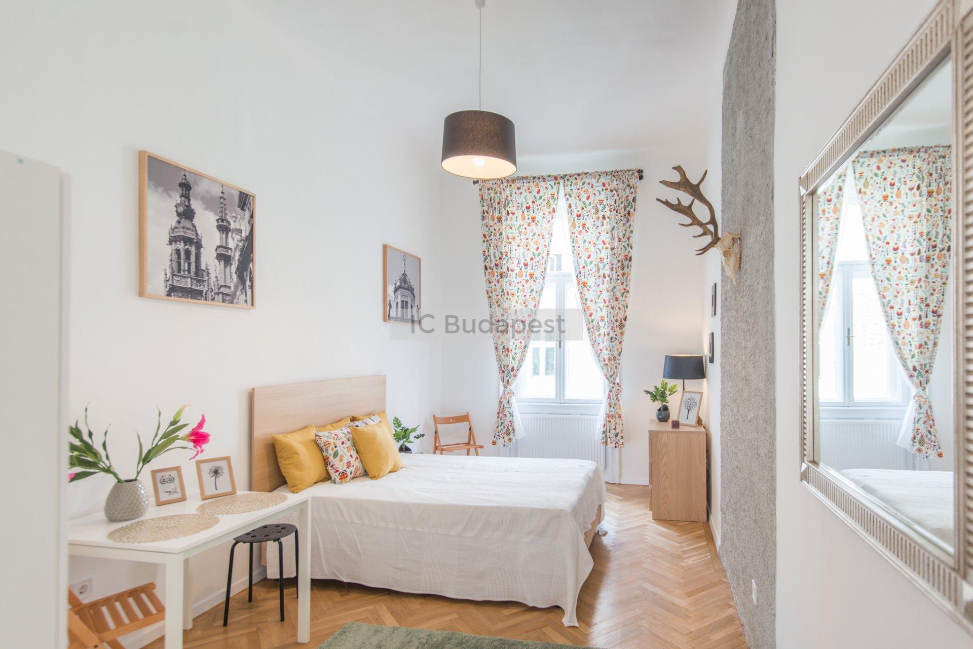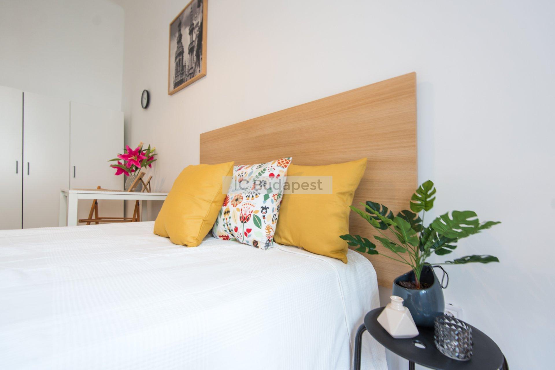 Budapest VII. kerületében, a Nefelejcs utcában, 3. emeleti, konyha-szoba-fürdőszoba helyiségekből álló, teljesen felújított, cirkó radiátoros fűtésű lakás kiadó. Az új, műanyag bejárati ajtón belépve a berendezett, gépesített konyhát találjuk. A fürdőszoba tusolós kialakítású. A szoba igazán tágas, világos, franciaággyal berendezett. A tárolást gardróbszekrény és fiókos szekrény segíti. A fiatalos lakás ideális egyedülállóknak, illetve egy pár kényelmes lakhatására. A bérleti díj 420 EUR + rezsi.