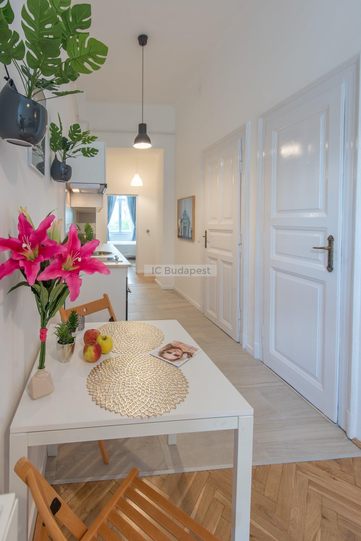 Budapest VII. kerületében, a Nefelejcs utcában, 3. emeleti, nappali + 2 különbejáratú szobás, teljesen felújított, cirkó radiátoros fűtésű lakás kiadó.  Az új, műanyag bejárati ajtón belépve a tágas nappaliba lépünk. A konyha teljesen gépesített, felszerelt. A szobák igazán tágasak, franciaággyal berendezettek. A tárolást gardróbszekrények, fiókos szekrények segítik. A fürdőszoba és a WC külön helyiségben vannak, a fürdőszoba nagyon tágas, walk in zuhanyzós kialakítású. A fiatalos lakás ideális egyetemistáknak.