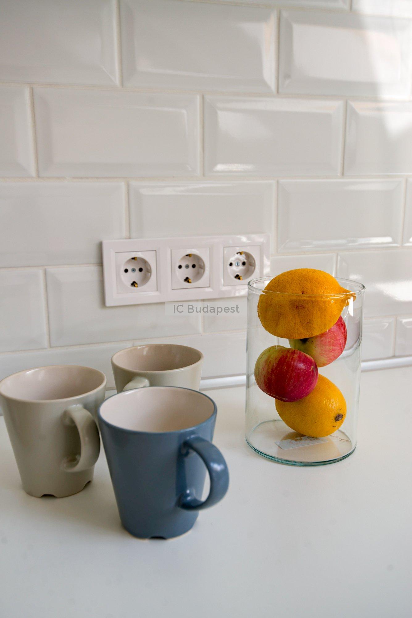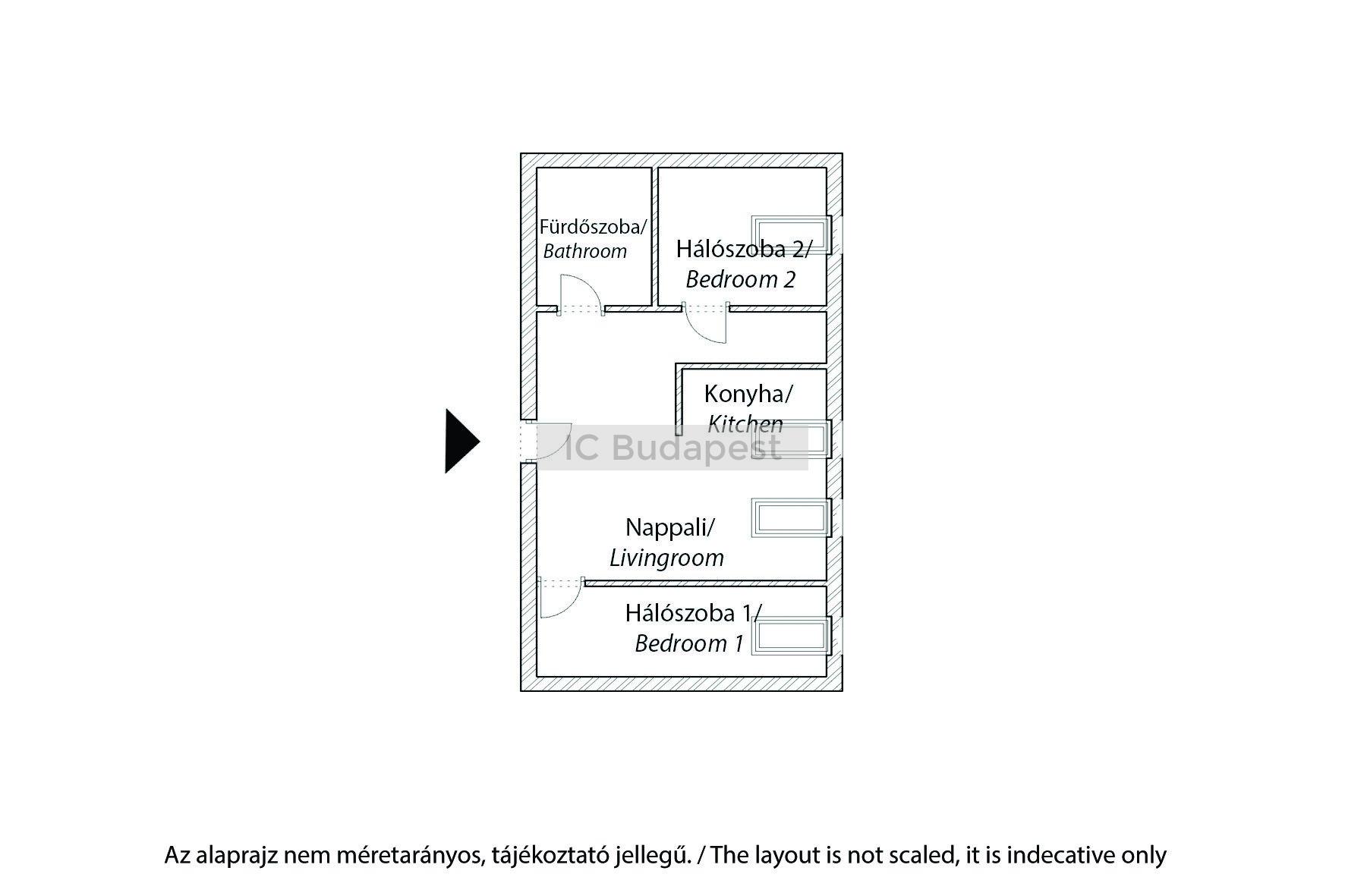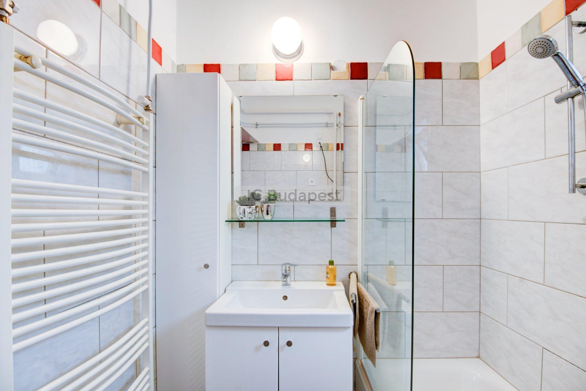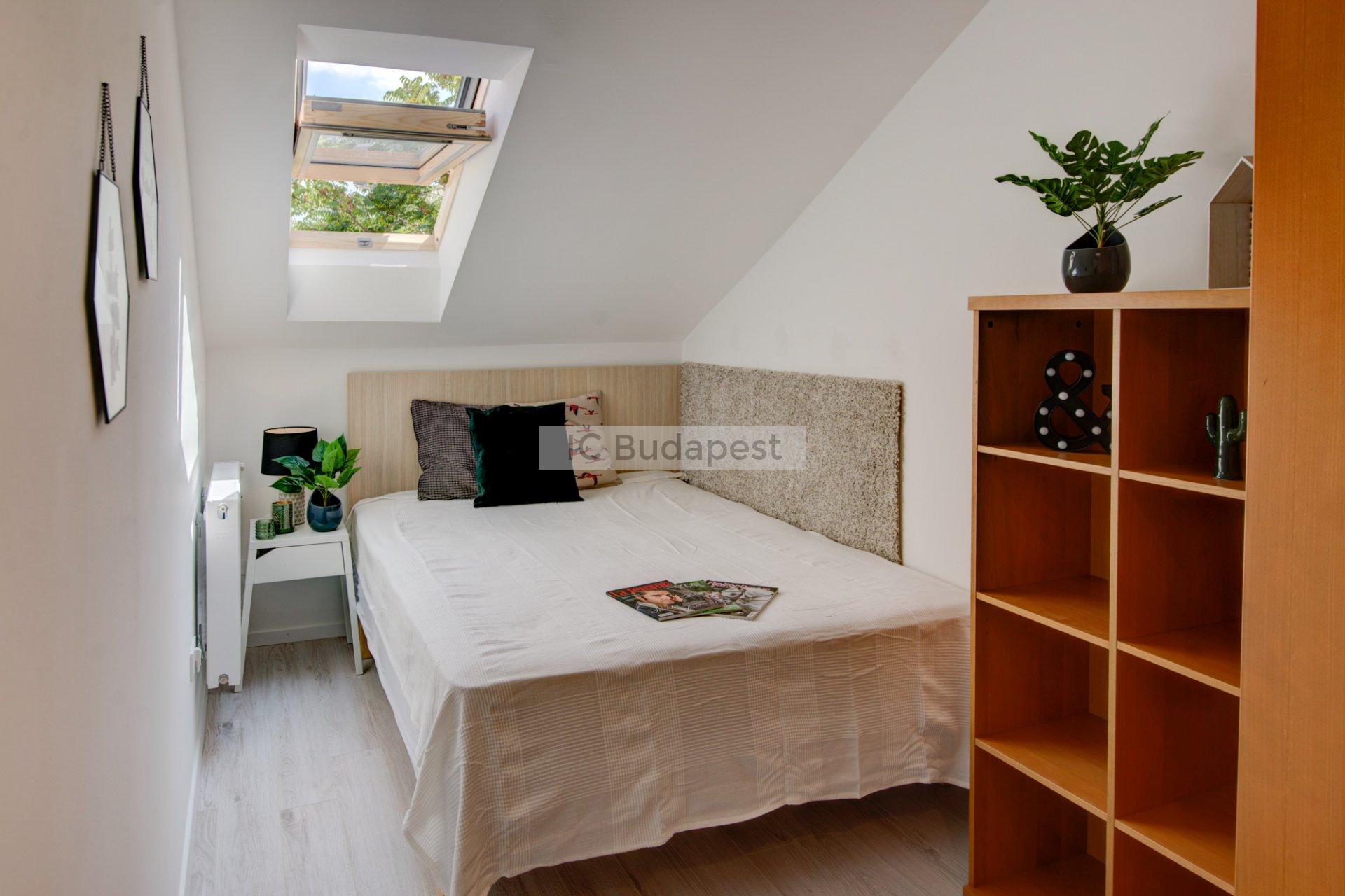 Budapest belvárosában, a Paulay Ede utca Deák tér felőli végén kiadó egy bruttó 52 m2-es, nappali plusz két külön bejáratú hálószobával rendelkező, frissen felújított lakás. A ház rendezett, az ötödik emelet lifttel is elérhető.  A lakás tetőtéri és déli fekvésű, melyeknek köszönhetően nagyon világos. A nyílászárók is ki lettek cserélve a felújítás során, a tetőtéri ablakok fénystoppos árnyékolóval ellátottak. A lakásba belépve az amerikai konyhás nappaliba jutunk, a hálószobák jobbra és balra találhatóak. A nappali jó hangulatú, tágas, világos, kanapéval, étkező asztallal berendezett. A fürdőszoba kádas kialakítású, a mosógép is itt található.