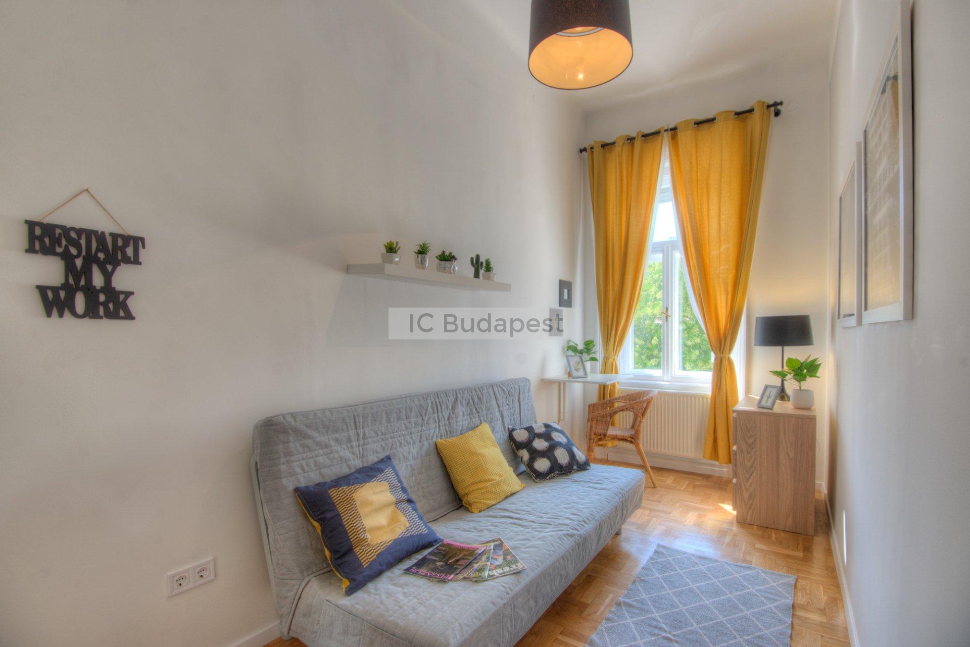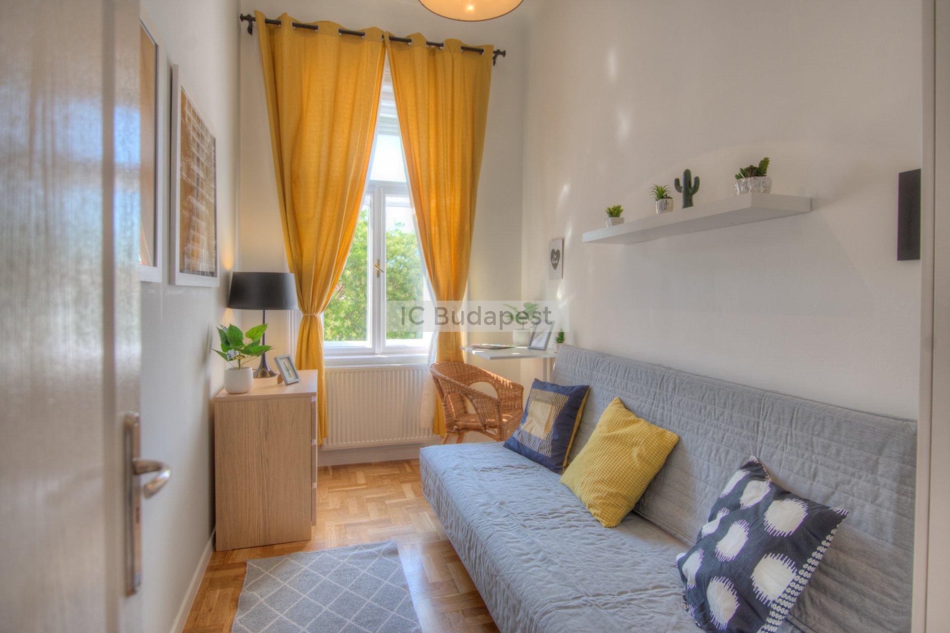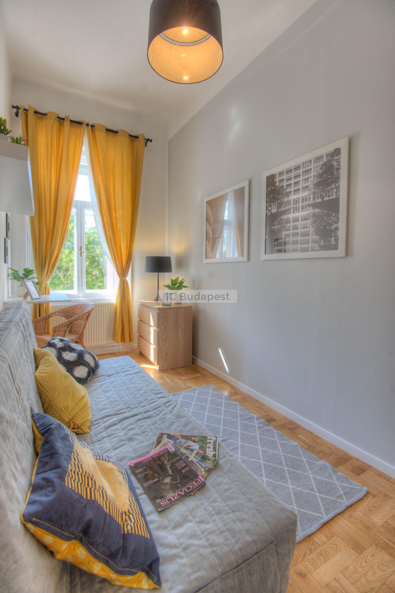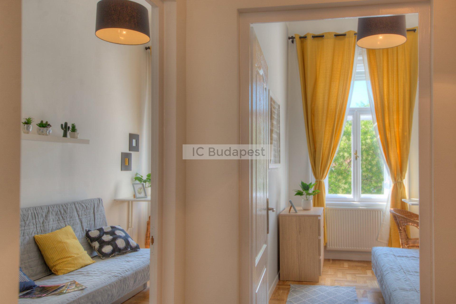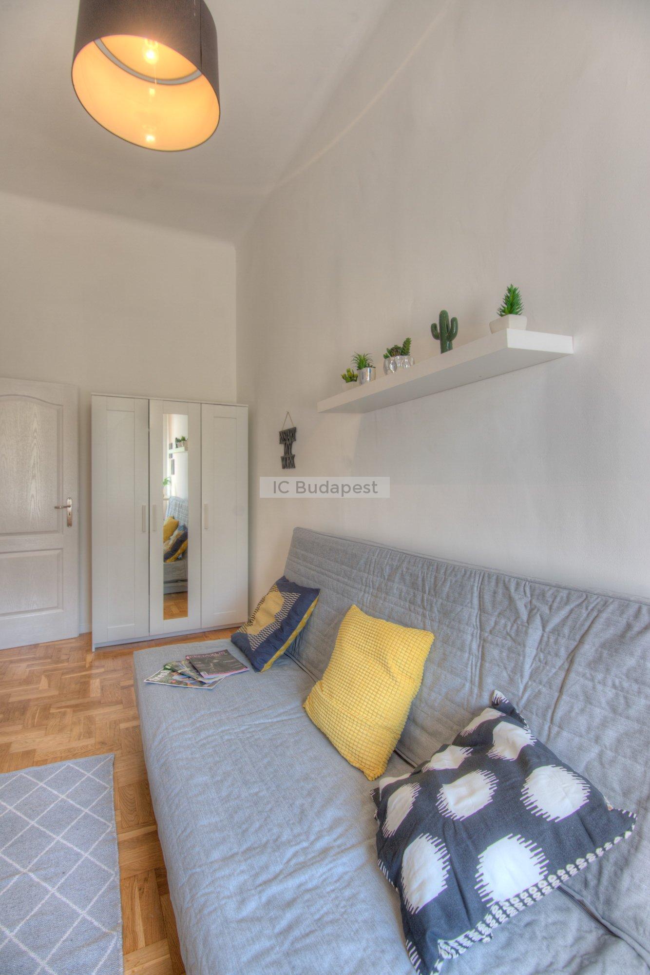 Budapest VII. kerületében, a Rottenbiller utcában, 3. emeleti, nappali + 3 különbejáratú szobás, teljesen felújított, cirkó radiátoros fűtésű lakás kiadó. Az új, műanyag bejárati ajtón belépve a teljesen gépesített konyhába lépünk. A fürdőszoba tusolós kialakítású, a WC külön helyiségben van. A szobák igazán világosak, kanapéággyal berendezettek. A tárolást gardróbszekrények, fiókos szekrények segítik. A fiatalos lakás ideális egyetemistáknak vagy akár pároknak.