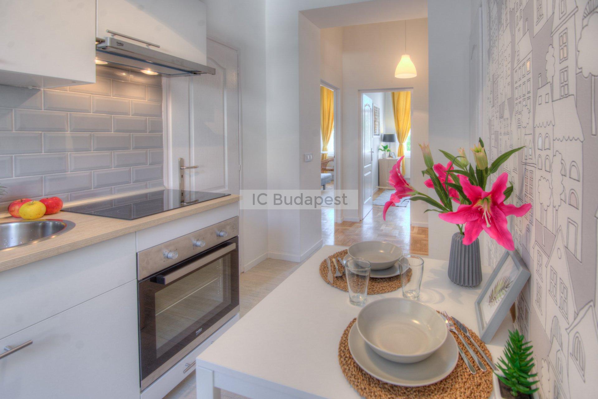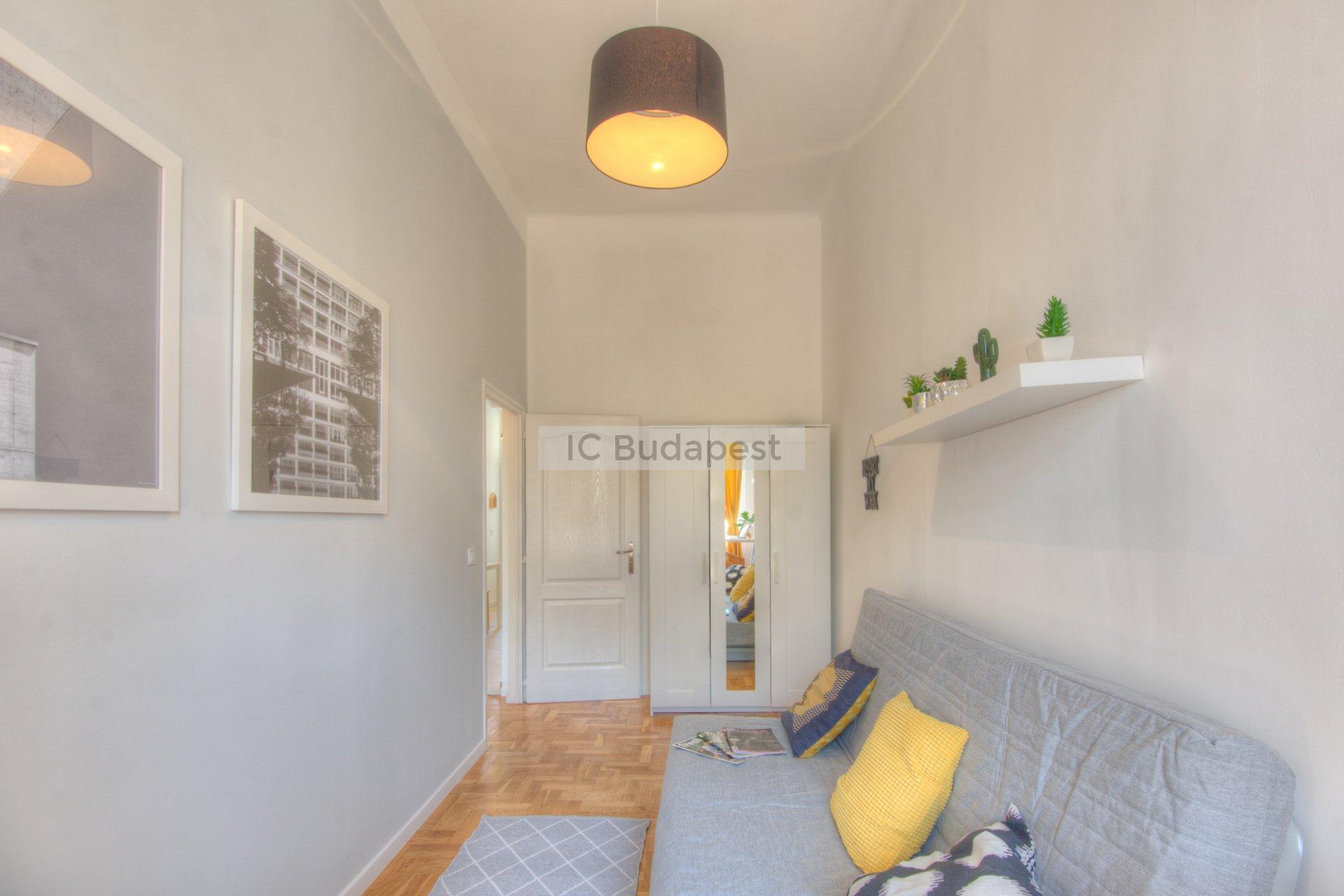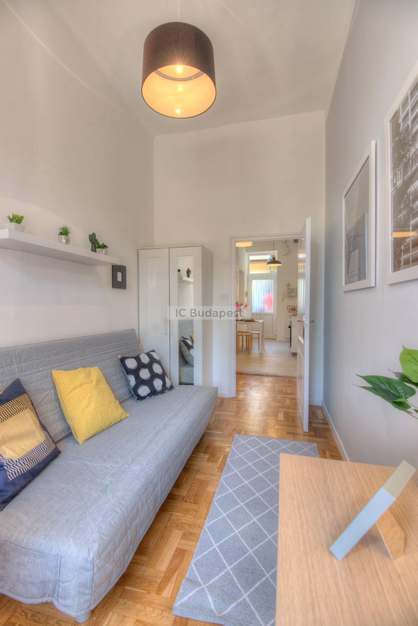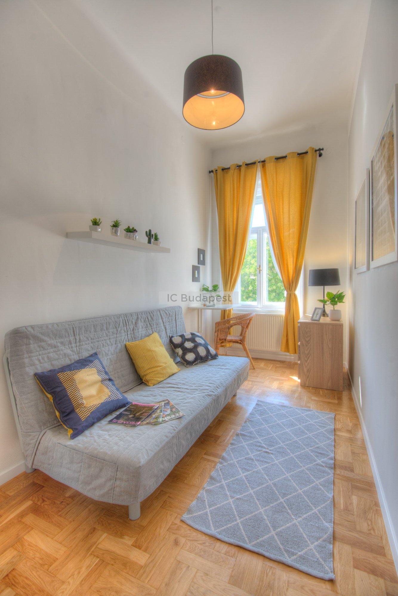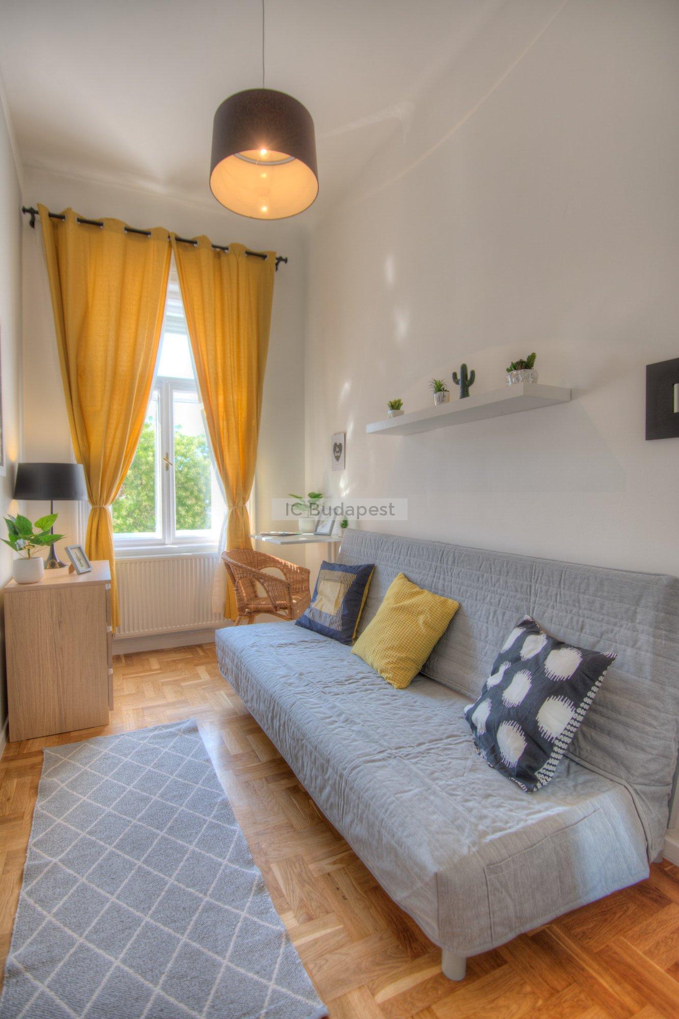 Budapest VII. kerületében, a Rottenbiller utcában, 3. emeleti, nappali + 3 különbejáratú szobás, teljesen felújított, cirkó radiátoros fűtésű lakás kiadó. Az új, műanyag bejárati ajtón belépve a teljesen gépesített konyhába lépünk. A fürdőszoba tusolós kialakítású, a WC külön helyiségben van. A szobák igazán világosak, kanapéággyal berendezettek. A tárolást gardróbszekrények, fiókos szekrények segítik. A fiatalos lakás ideális egyetemistáknak vagy akár pároknak.