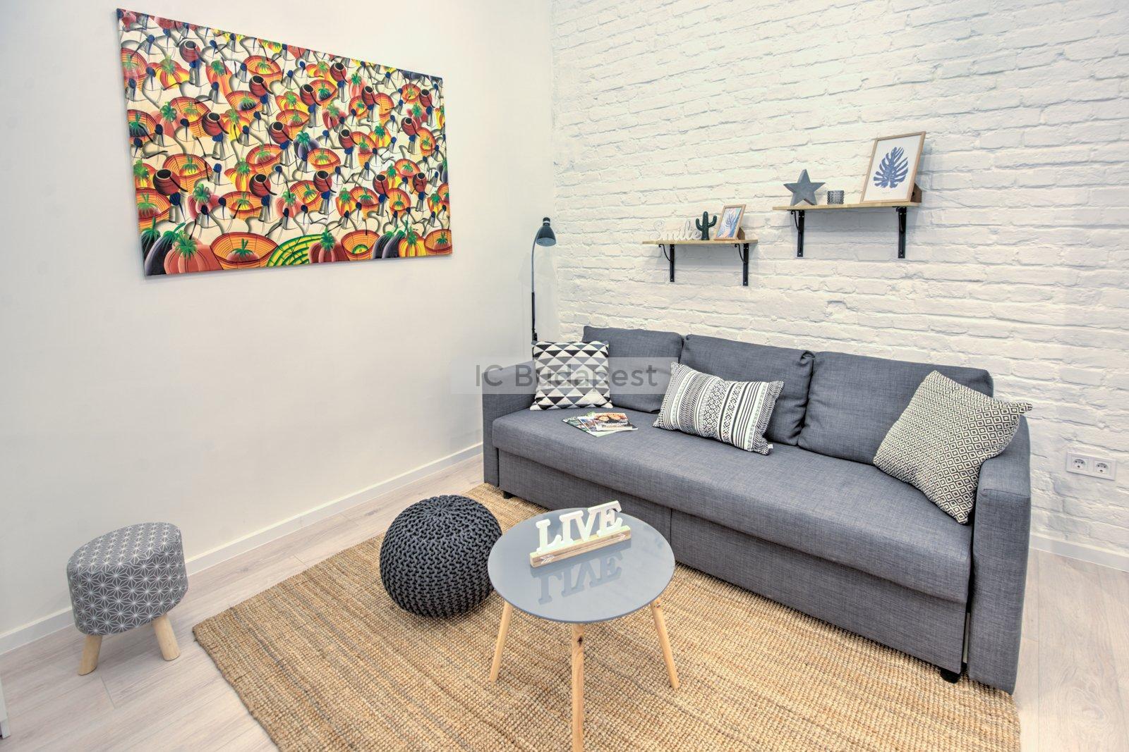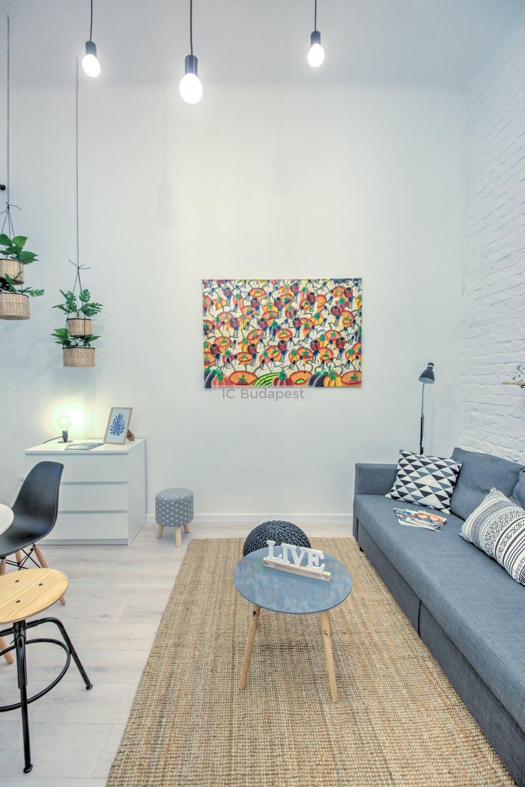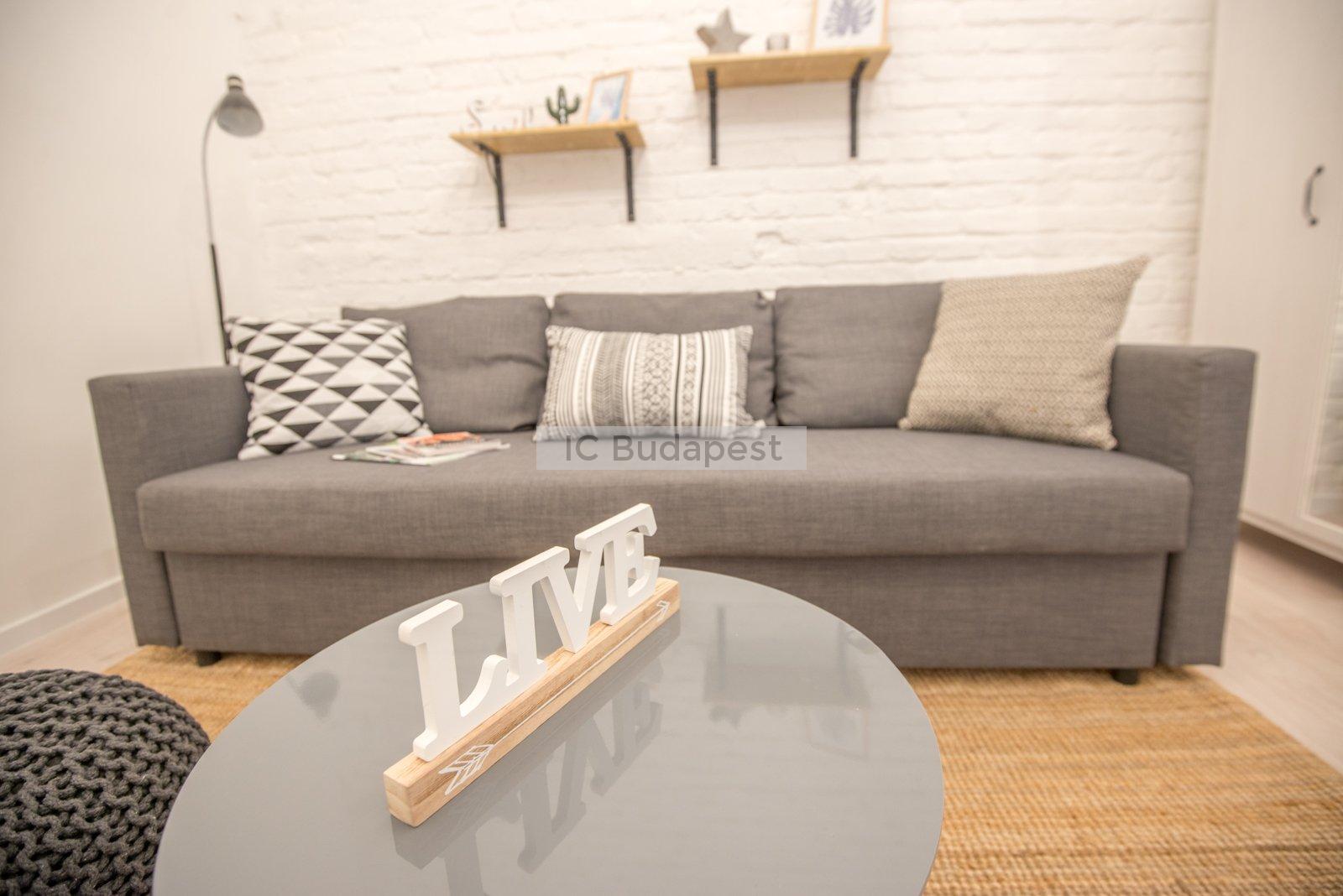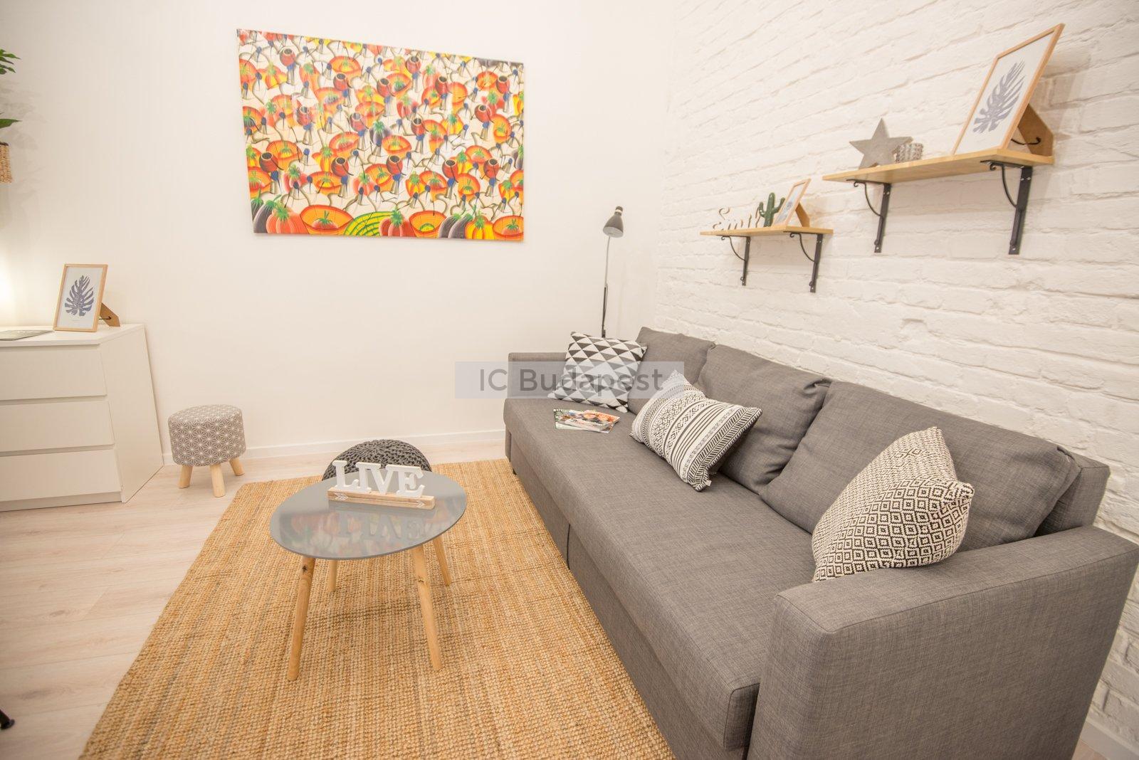 Budapest VI. kerületében, az Andrássy útra merőleges Szinyei Merse Pál utcában, kiváló helyen, közel a Kodály köröndhöz helyezkedik el ez a fiatalosan kialakított lakás. A rendezett társasház 1. emeleti, egy szobás, külön konyhás, teljesen felújított, világos lakása kiválóan alkalmas egyedülállók vagy egy pár kényelmes lakhatására. A lakószoba kinyitható kanapéval berendezett, igényes, fiatalos. A konyha gépesített, a fürdőszoba tusolós, itt található a mosógép is.