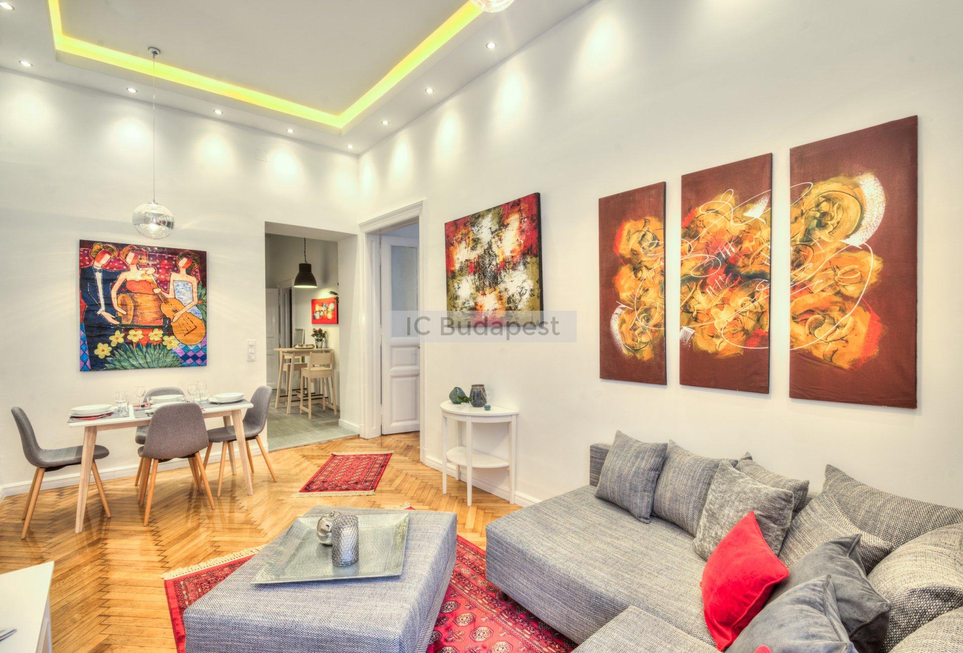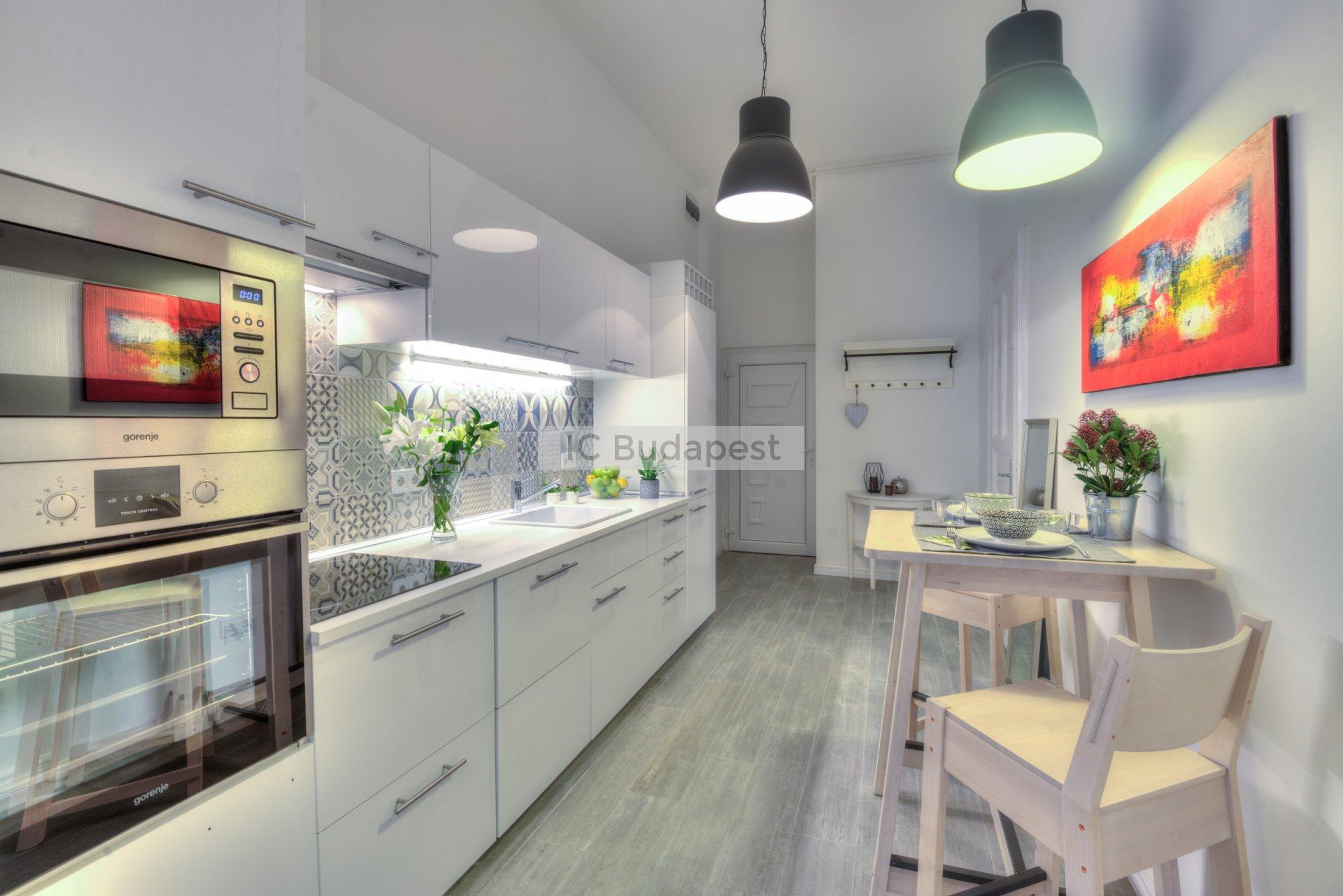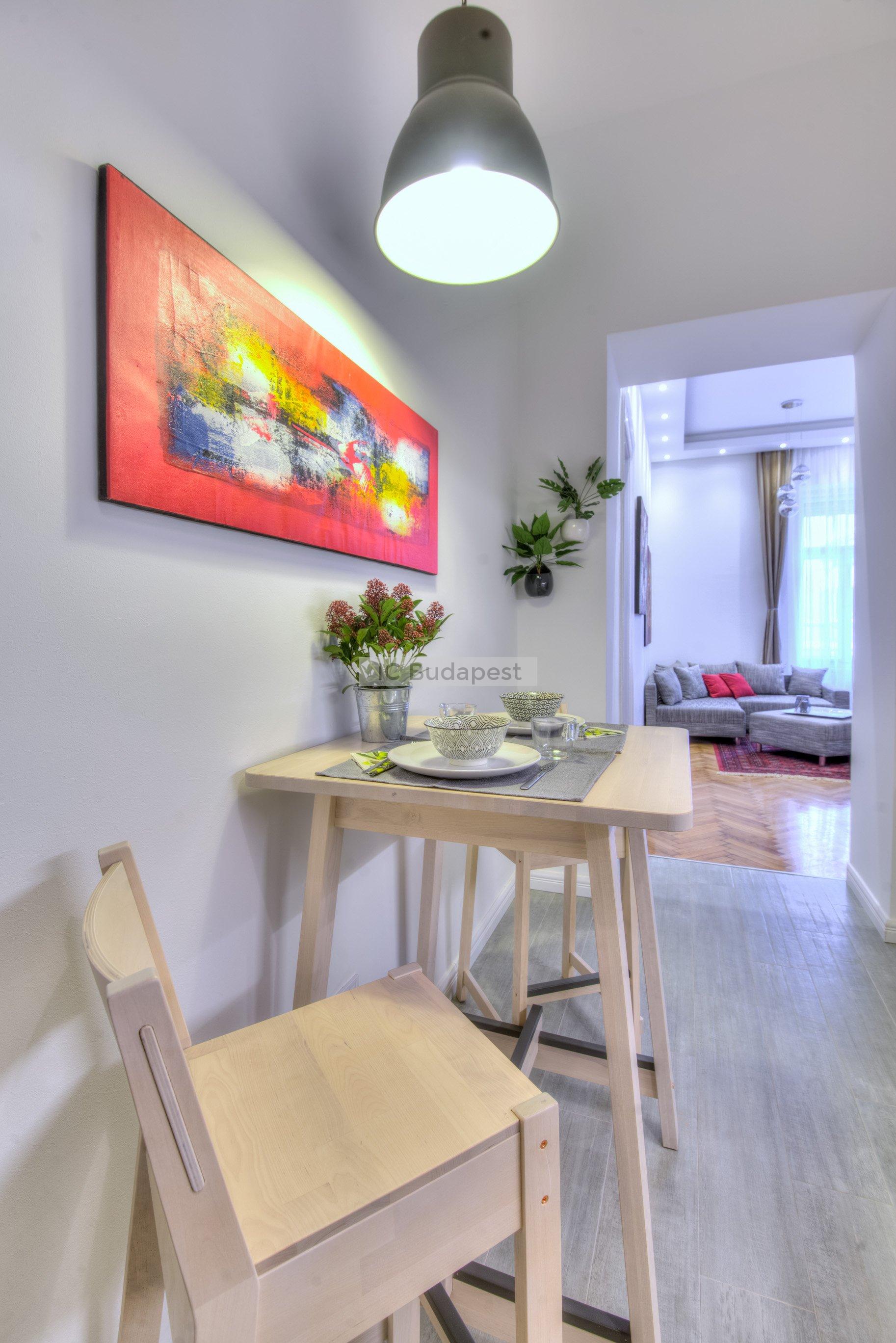 Budapest VII. kerületében, a Wesselényi utcában kiadó egy 1. emeleti, 78 m2-es, teljes körűen, igényesen felújított, nappali + 2, igazán tágas hálószobával rendelkező, 2 gardróbos, 2 fürdőszobás lakás. A lakás burkolatai igényesek, teljesen felszerelt konyhája gépesített. A környéken közlekedik a 73, 74, 76-os troli,illetve a 4-6-os villamos is 5 perc séta.
