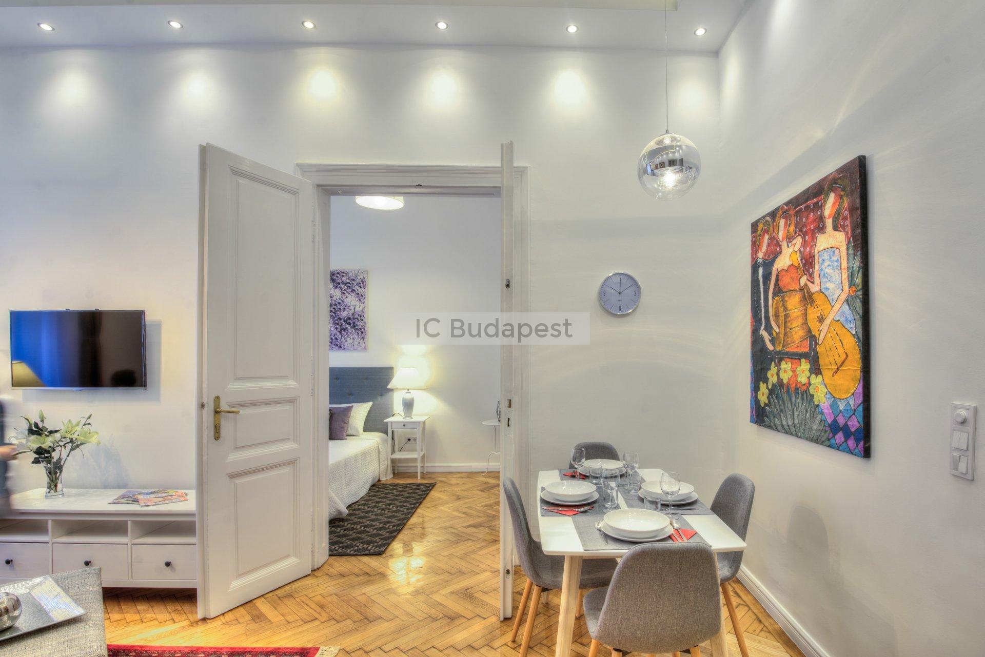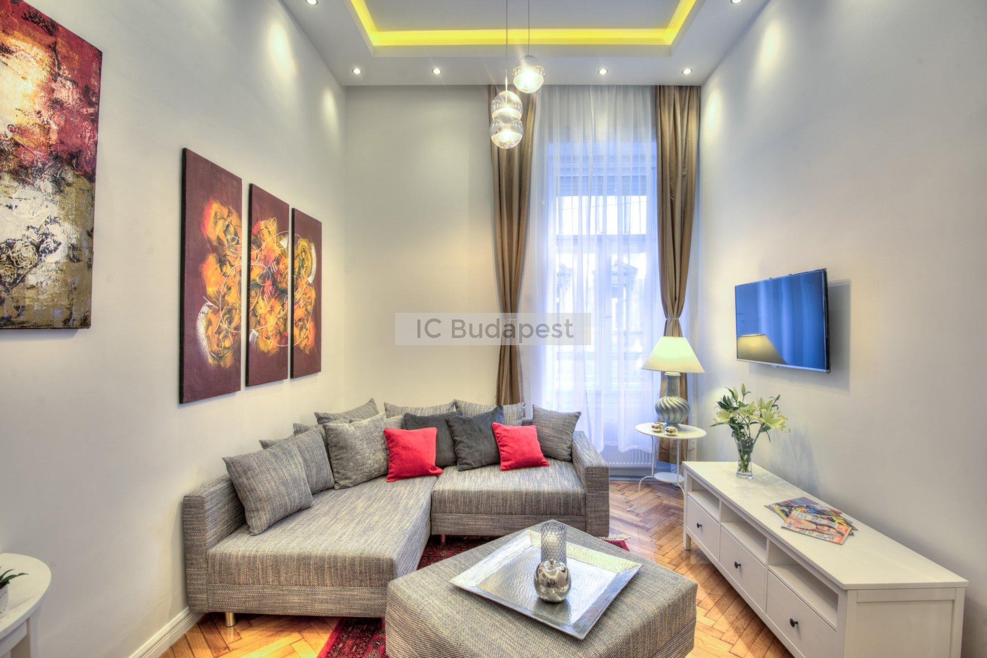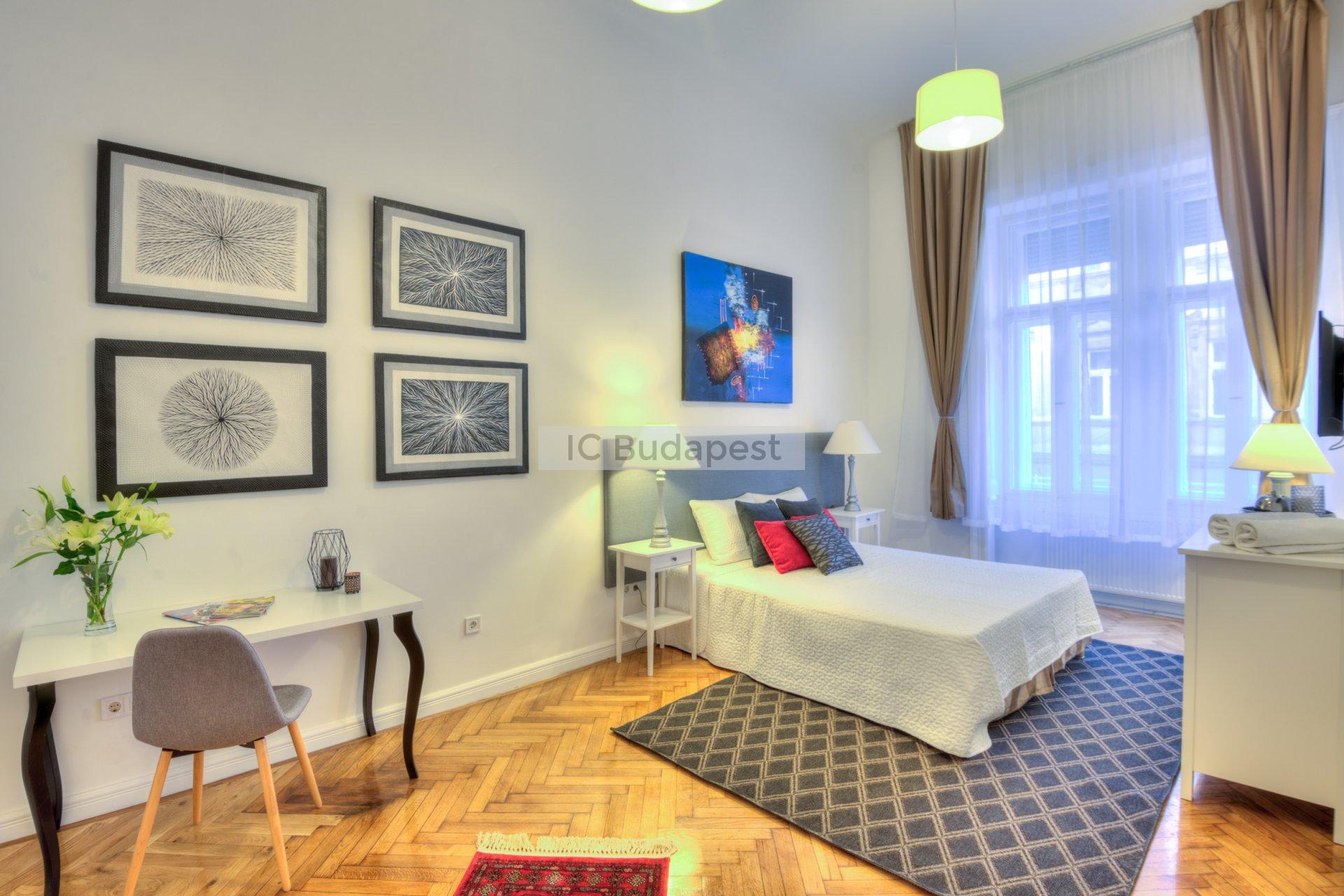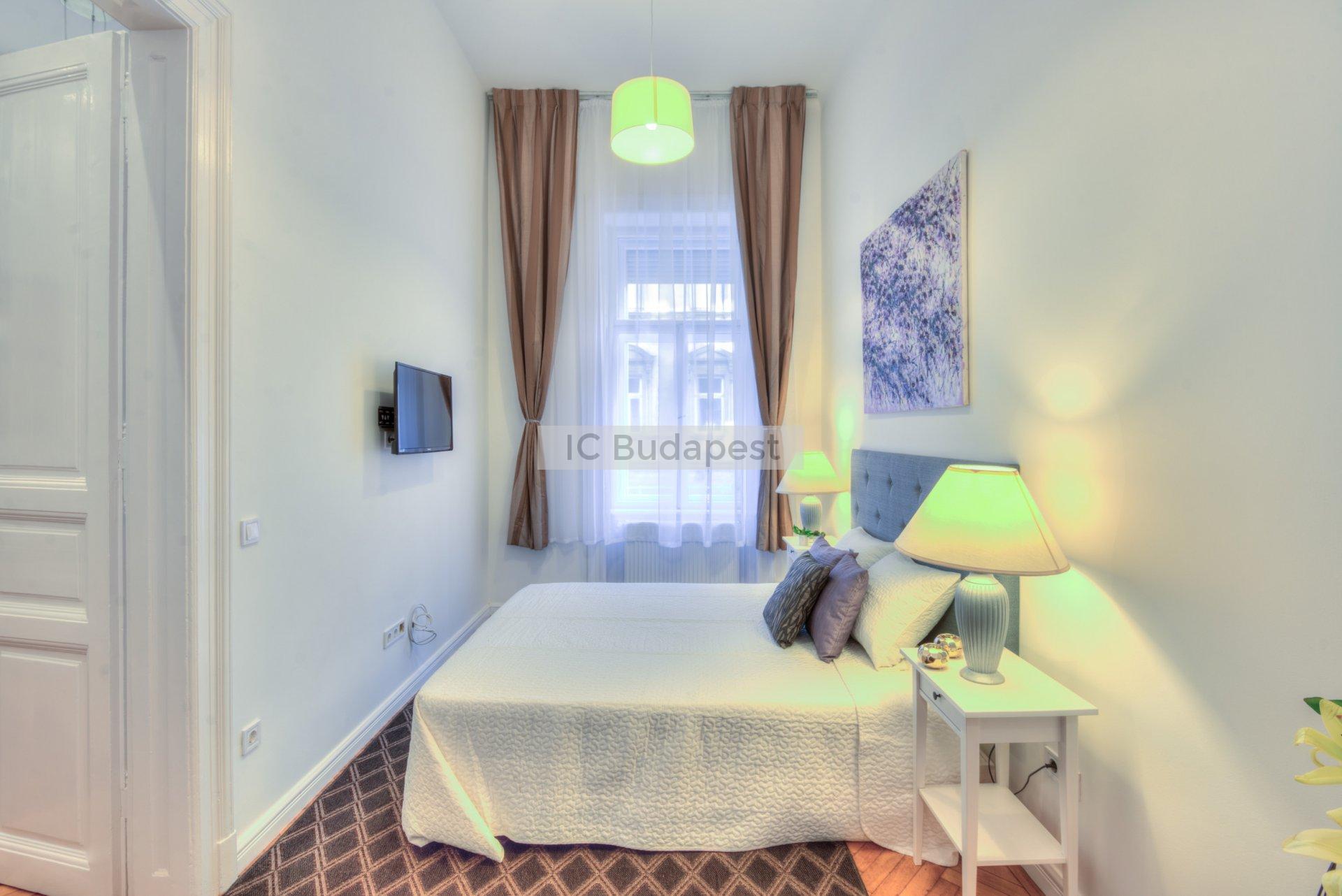 Budapest VII. kerületében, a Wesselényi utcában kiadó egy 1. emeleti, 78 m2-es, teljes körűen, igényesen felújított, nappali + 2, igazán tágas hálószobával rendelkező, 2 gardróbos, 2 fürdőszobás lakás. A lakás burkolatai igényesek, teljesen felszerelt konyhája gépesített. A környéken közlekedik a 73, 74, 76-os troli,illetve a 4-6-os villamos is 5 perc séta.