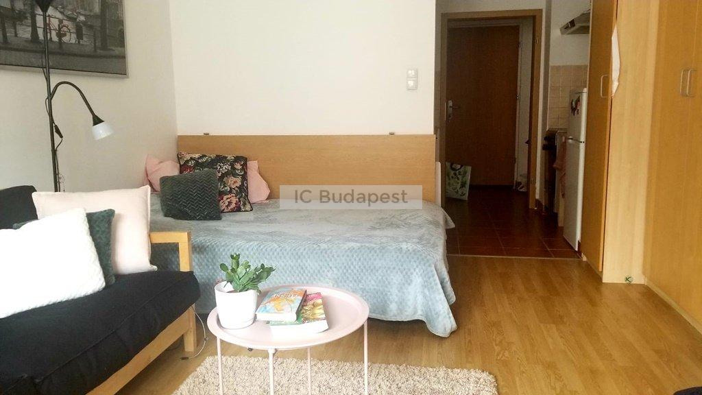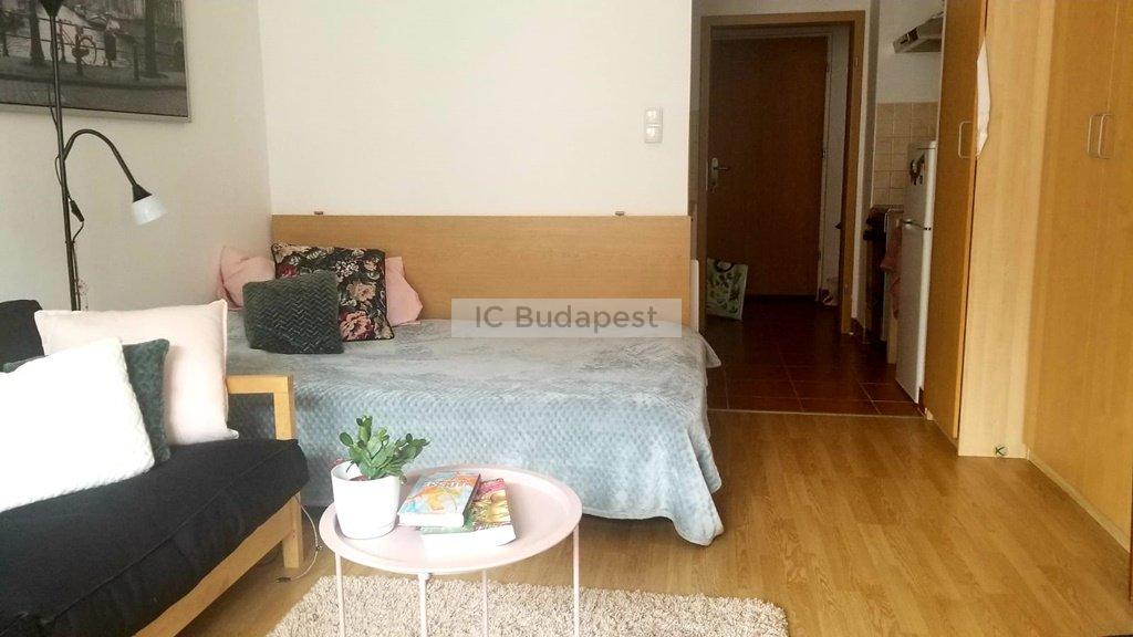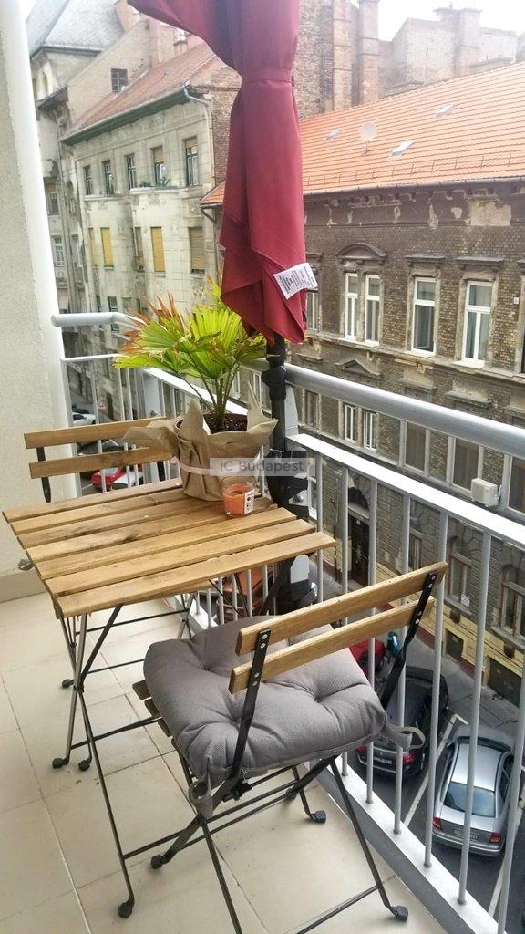 Budapest VII. kerületében, a Marek József utcában kiadó egy új építésű ház 4. emelti erkélyes, 30 m2-es, IKEA bútorokkal bútorozott, és gépesített egy szobás lakás. A társasház rendezett lakóközösségű, új építésű, liftes. A lakásba belépvén a kis előszobába érkezünk, amelyből jobbra nyílik a kádas, mosógéppel felszerelt fürdőszoba, az előszobából szemben pedig a konyhába, majd onnan a szobába jutunk. A szoba teljes szélességében egy nagyon hangulatos erkély tartozik a lakáshoz, amely szintén be van rendezve kültéri asztallal és székekkel. A szoba meglehetősen nagy méretű, így jól elkülönülnek benne a különböző funkciók: dolgozó sarok, nappali rész és háló rész. Az egész lakás gyönyörű világos, napfényes. A fűtést és a meleg vizet házközponti kazán szolgáltatja (a lakás fogyasztását egyedi mérés alapján számolják el) amely nagyon kedvező rezsit eredményez. Az áram szintén egyedi mérős. Ideális kis lakás egy pár vagy egyedülálló személy részére egy remek helyen, szuper közlekedéssel, közel a belváros szívéhez, de a parkos Városligethez is.