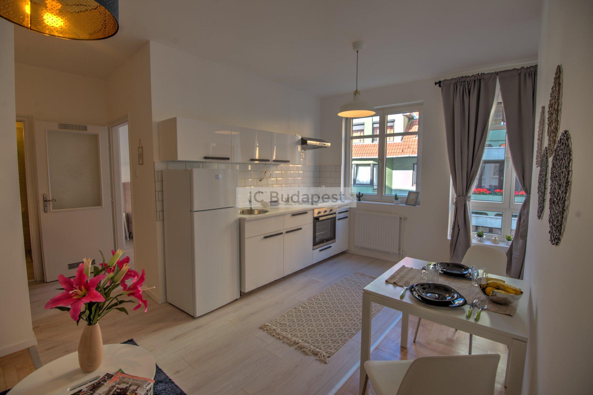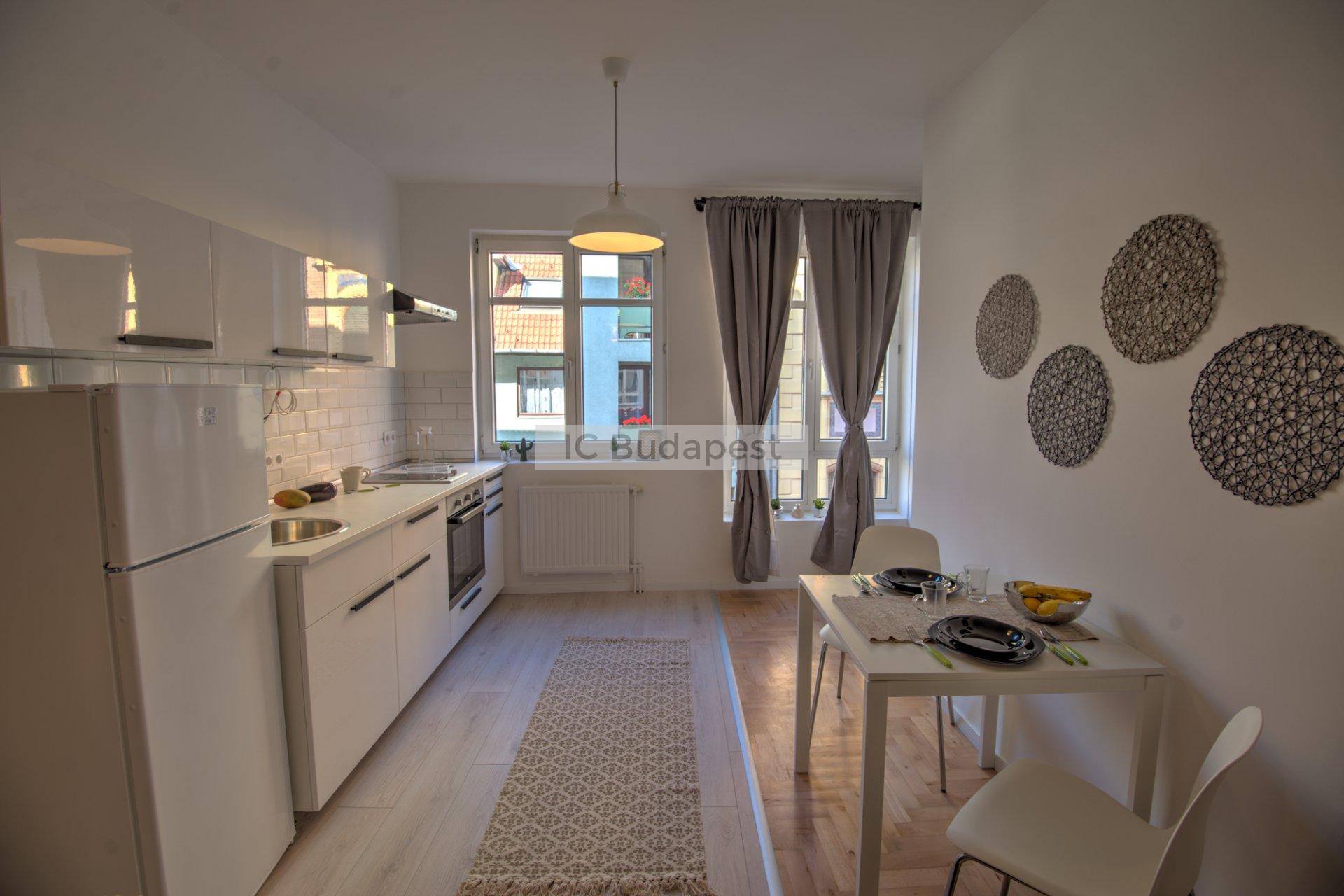 Budapest IX. kerületében, a népszerű Bokréta utcában kiadó egy nemrégiben felújított, nappali plusz két külön nyíló hálószobás, 55 m2-es lakás. A társasház lifttel rendelkezik, a lakás pedig a 3. emeleten található. A felújítás néhány éve történt, melynek során új amerikai konyhás nappali és két hálószoba került kialakításra. A lakás teljes körűen gépesített és berendezett, új konyhagépek és mosógép kerültek beépítésre, valamint IKEA bútorokkal történt a lakás berendezése. A fürdőszoba kádas kialakítású, tágasnak mondható.