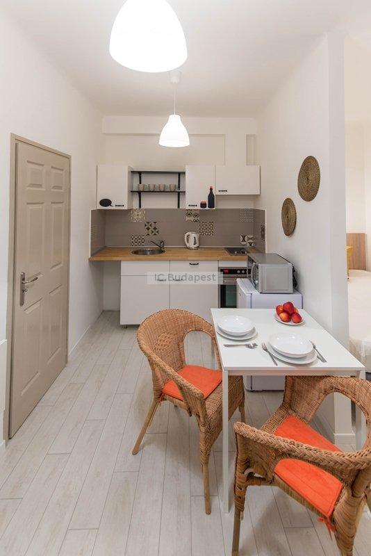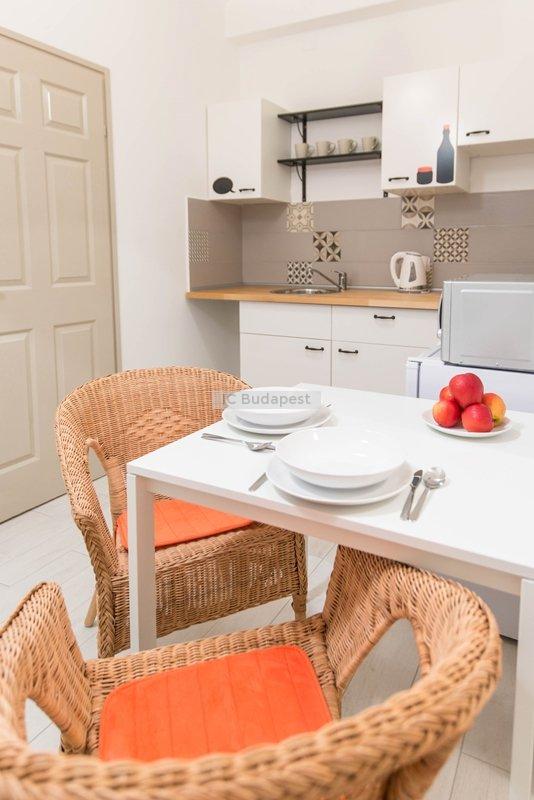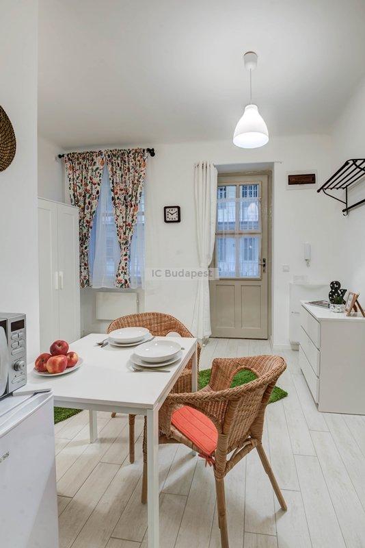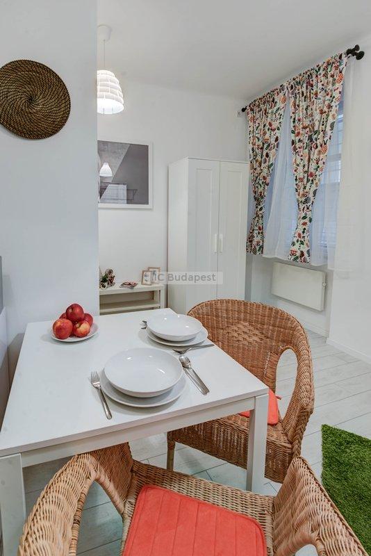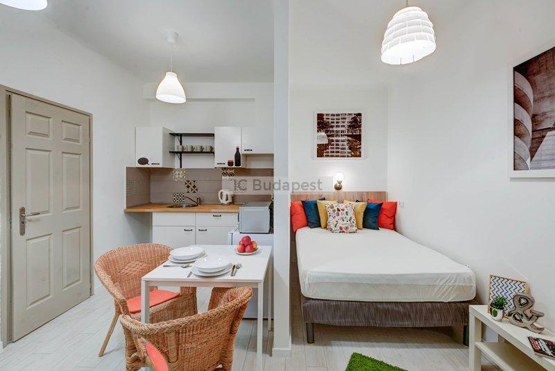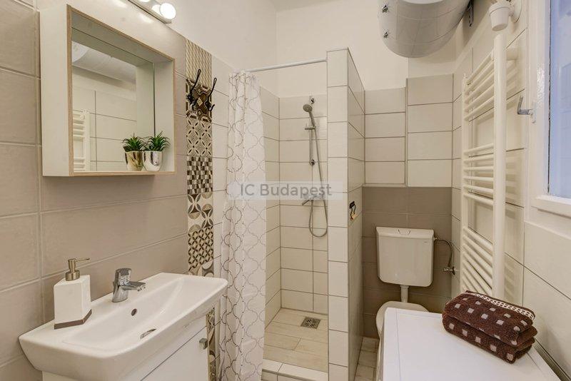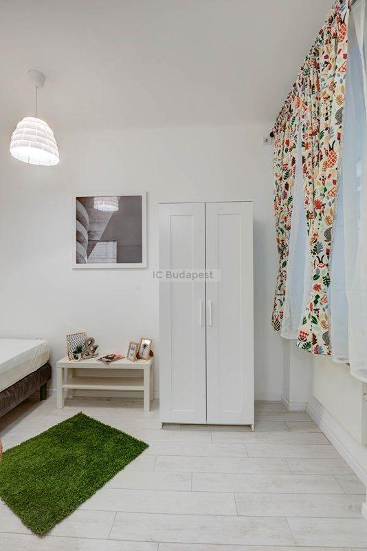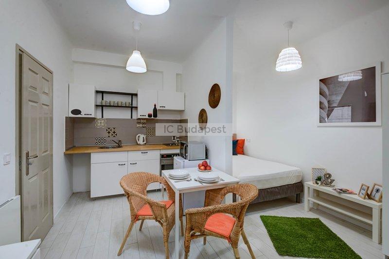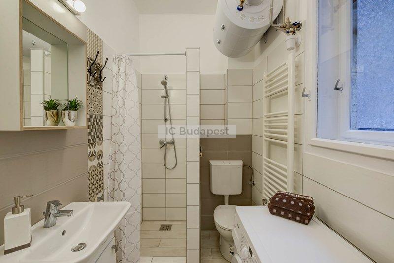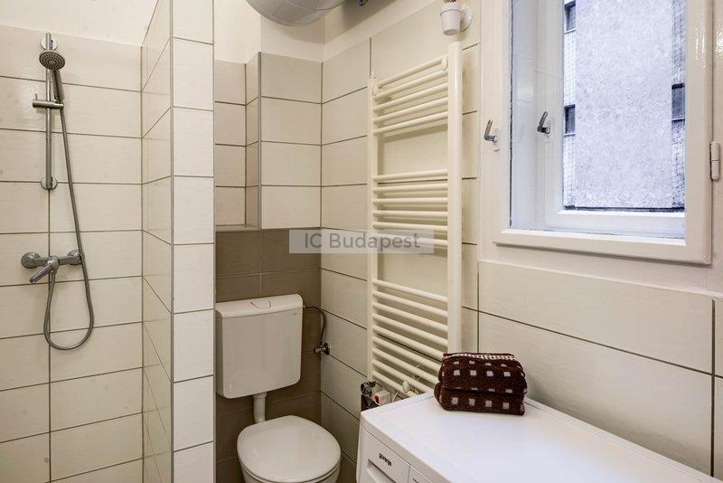 Budapest VII. kerületében, a kedvelt Damjanich utcában, rendezett társasház 1. emeleti, nemrégiben felújított garzonlakása kiadó. A hálószoba és a konyharész optikailag szeparált. A hálófülkében franciaágy található. A fürdőszoba tágas, ablakkal rendelkezik, tusolós kialakítású. A konyha gépesített, felszerelt. Egy étkezőasztal is a bútorzat része.